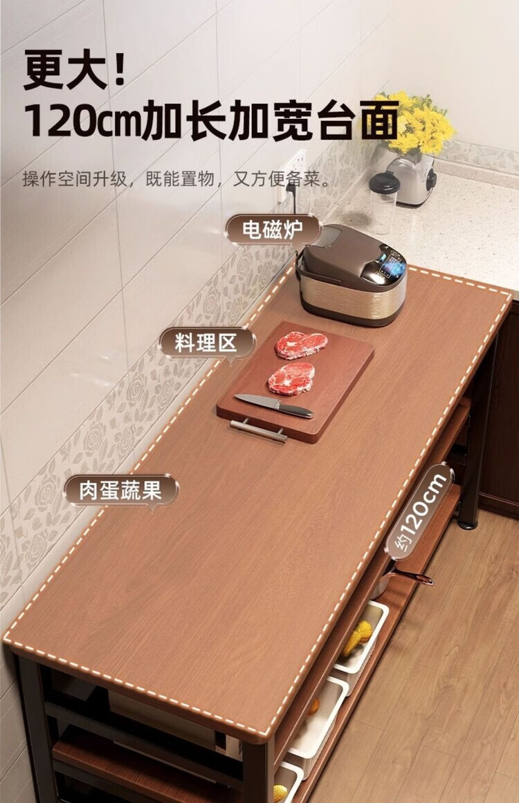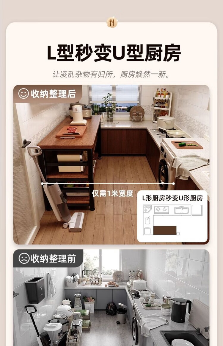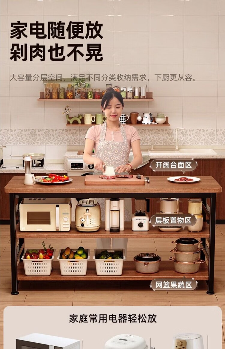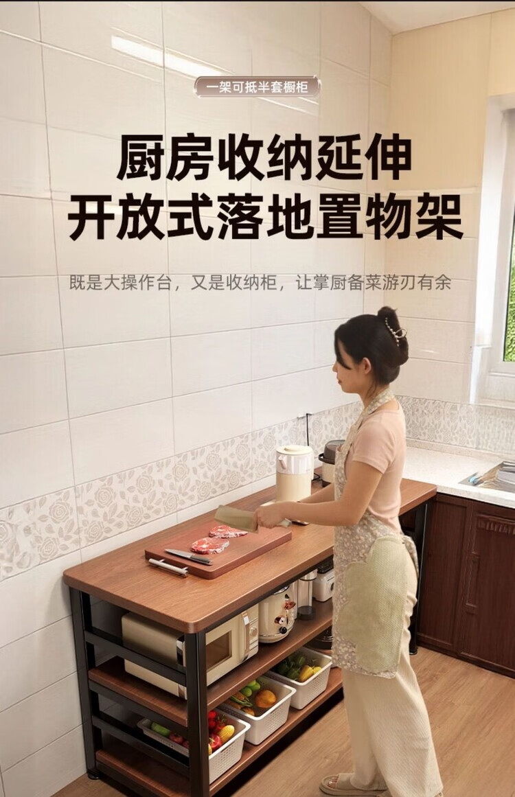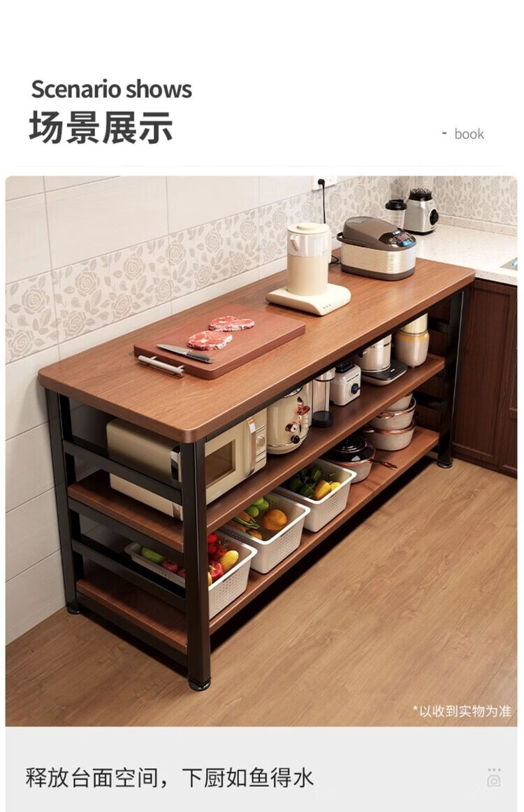 兰琦欧厨房置物架多功能家用落地多层靠墙切菜工作台窄边柜子收纳架桌子 30mm台面 两层丨长60宽35高80