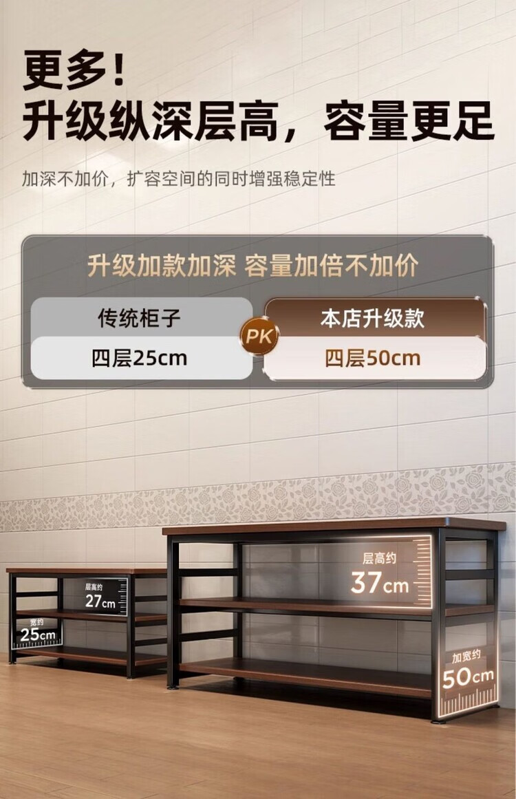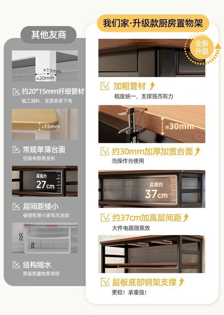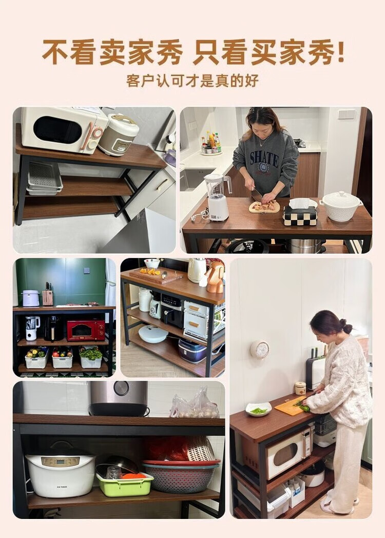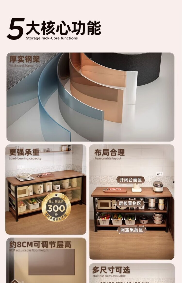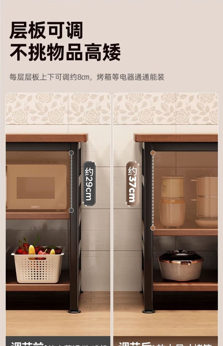 兰琦欧厨房置物架多功能家用落地多层靠墙切菜工作台窄边柜子收纳架桌子 30mm台面 两层丨长60宽35高80