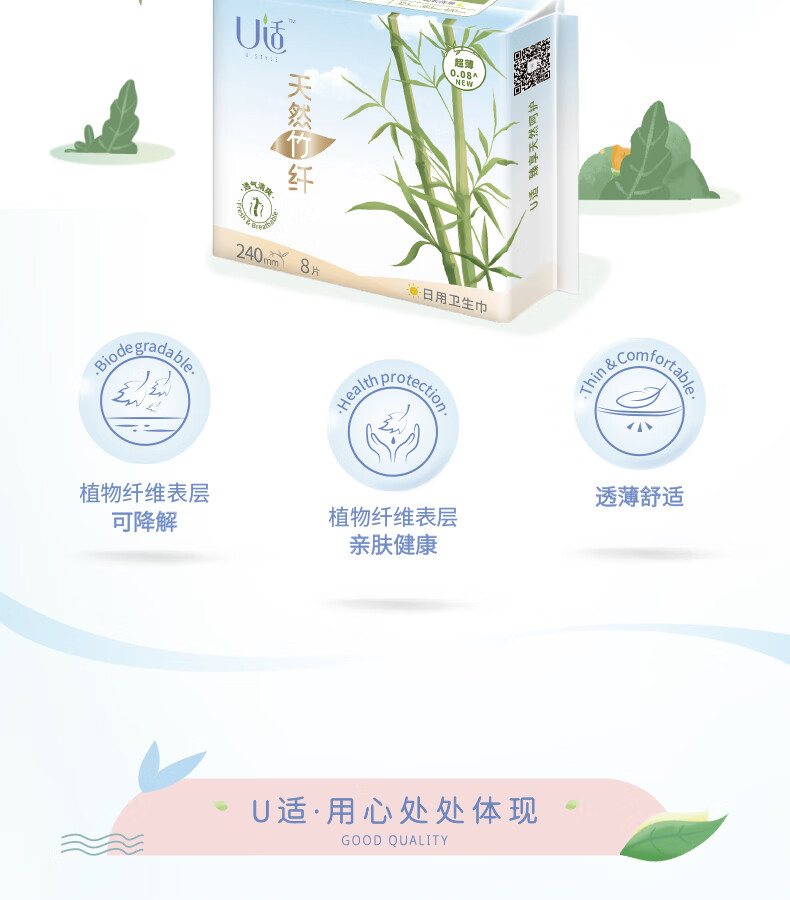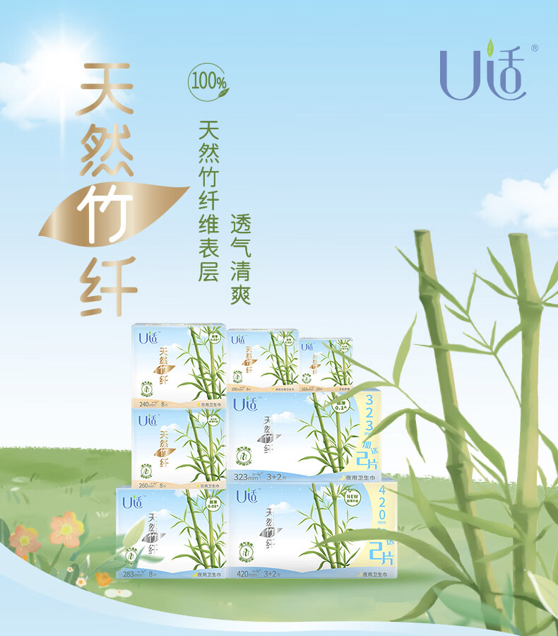 U适竹纤夜用420mm5片*3包 夜用卫生巾超值组合套装 新升级丝薄透气 棉柔 420mm 15片