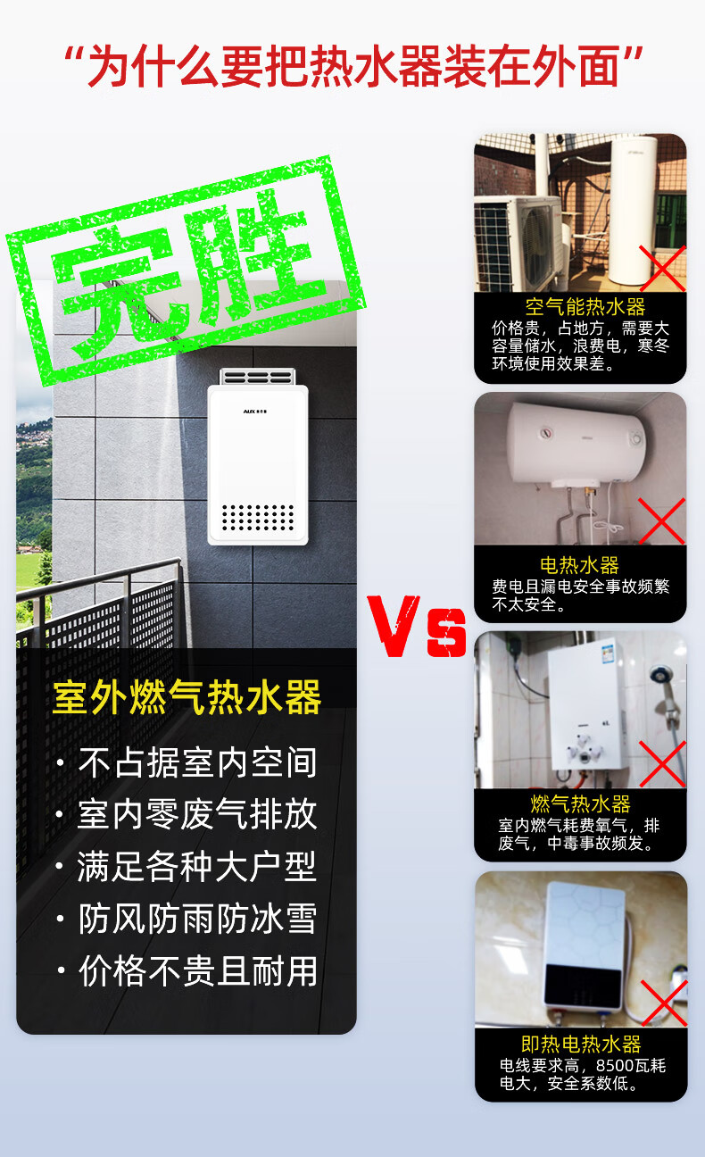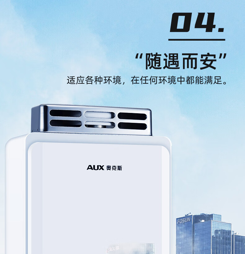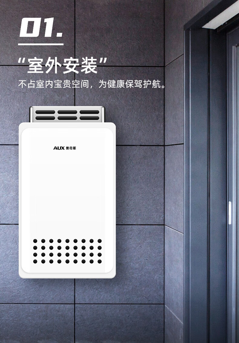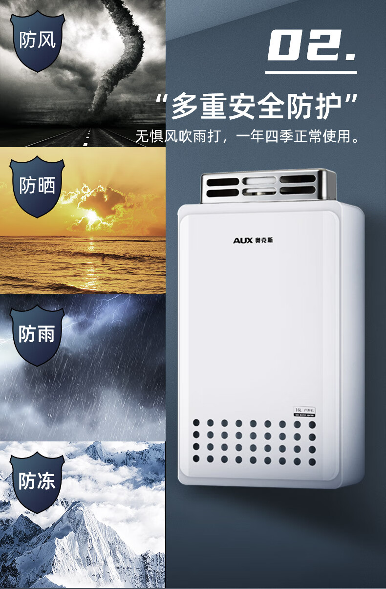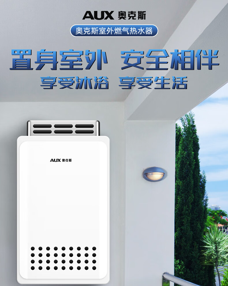 奥克斯(AUX)16升燃气热水器室外机户外防冻抗强风多重安全防护外挂式恒温线控天然气上门安装国家补贴15%