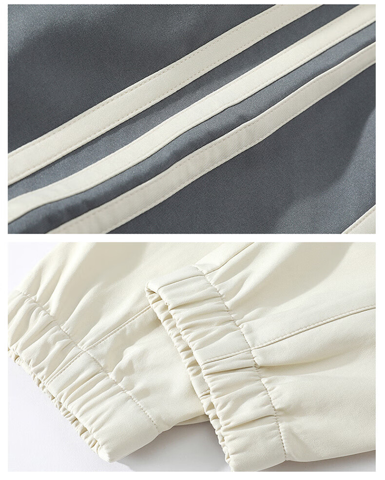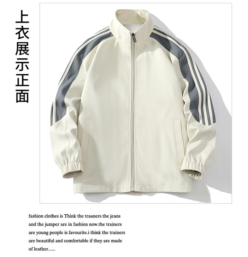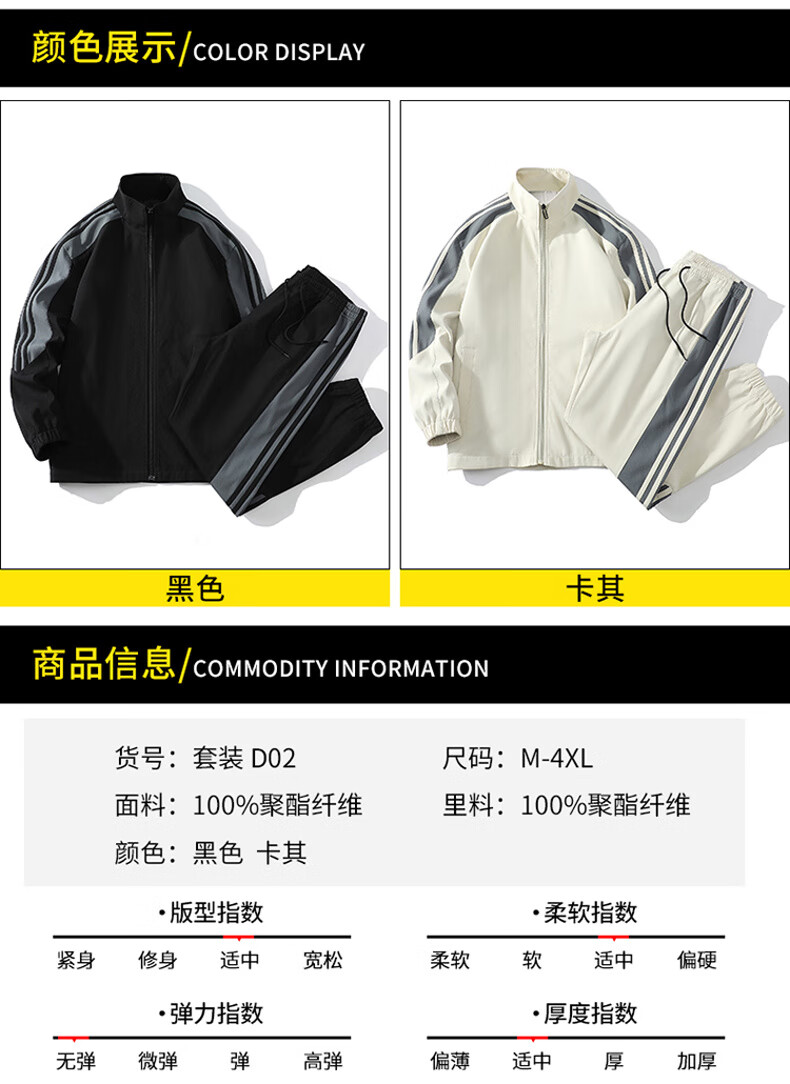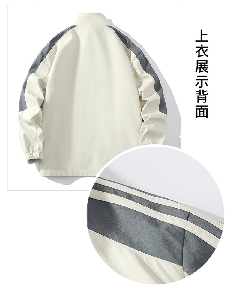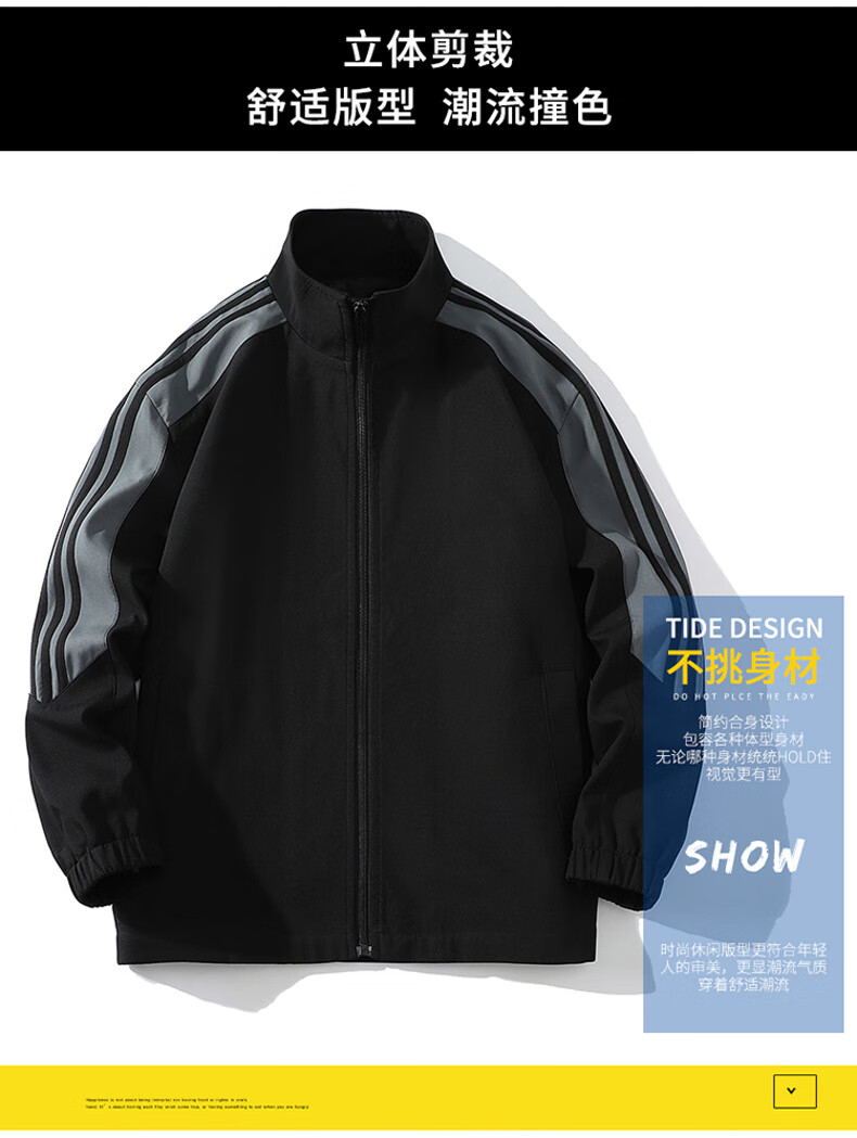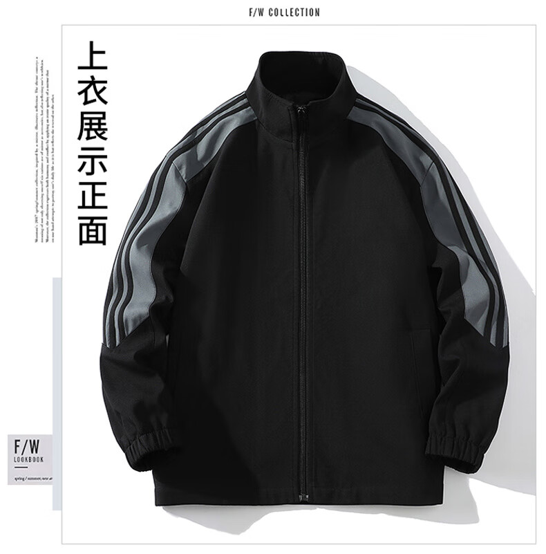 JEEP SPIRIT吉普新款情侣套装时尚休闲百搭宽松潮流帅气立领长袖跑步条纹撞色 黑色 XL