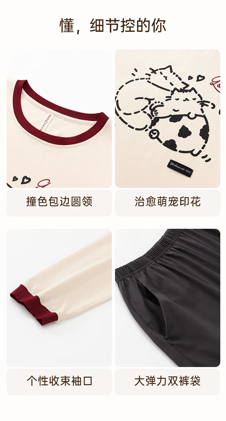 维多利亚的格调睡衣女春秋季长袖长裤2025新款云朵棉薄款可爱卡通夏天套装家居服 8835波点腊肠狗--云朵棉长袖长裤 M (80-95斤)