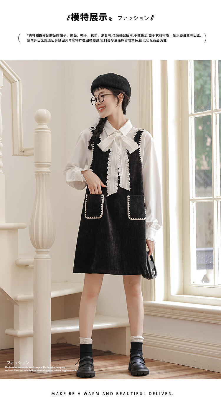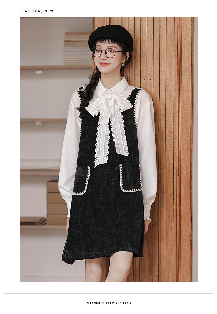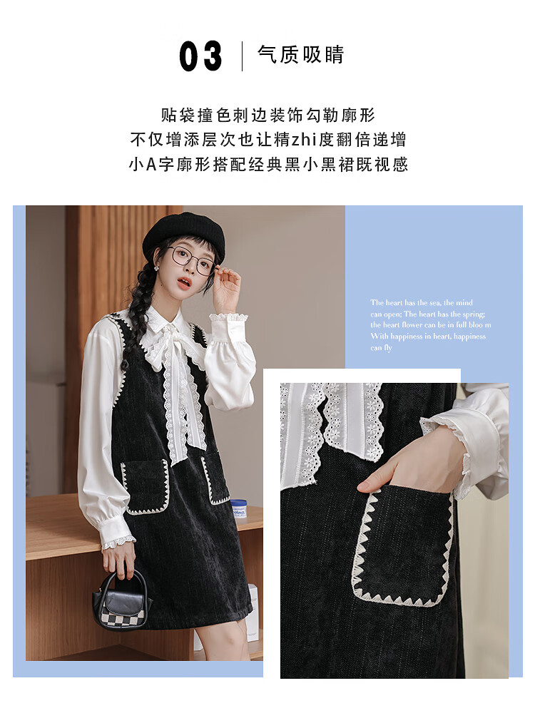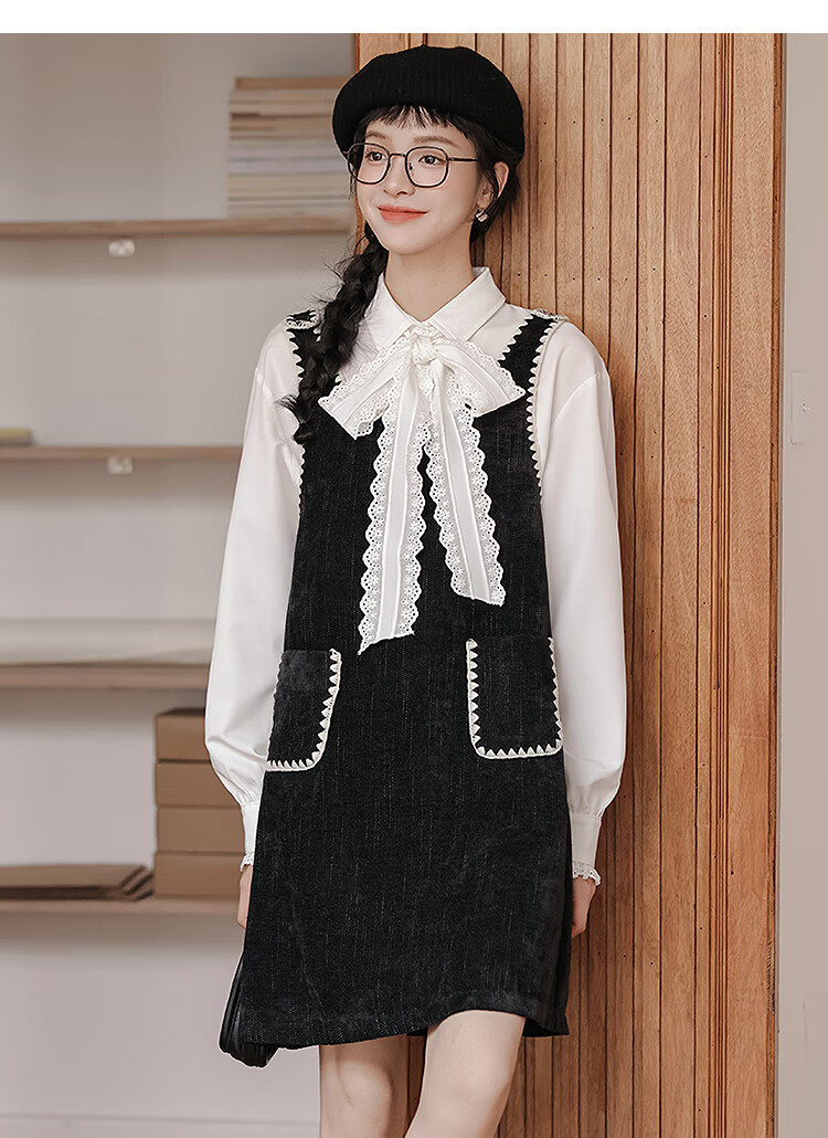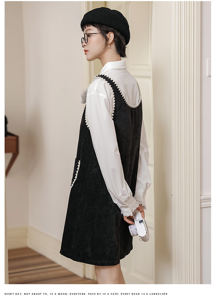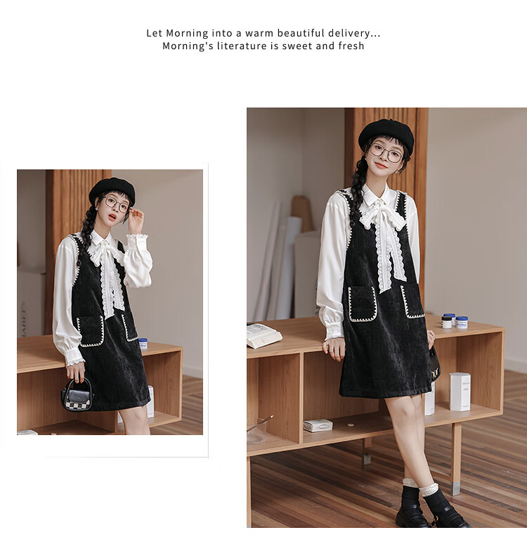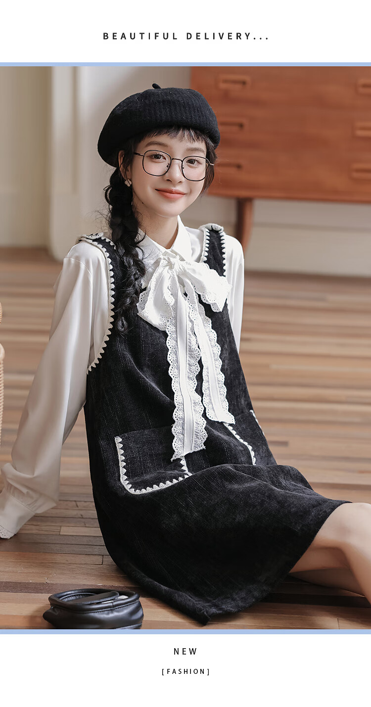 西遇(Westlink)西遇法式宽松长袖衬衫套装女2025年秋季新款通勤背心连衣裙两件套 黑色连衣裙(SS051446) (预售15天) M (160)