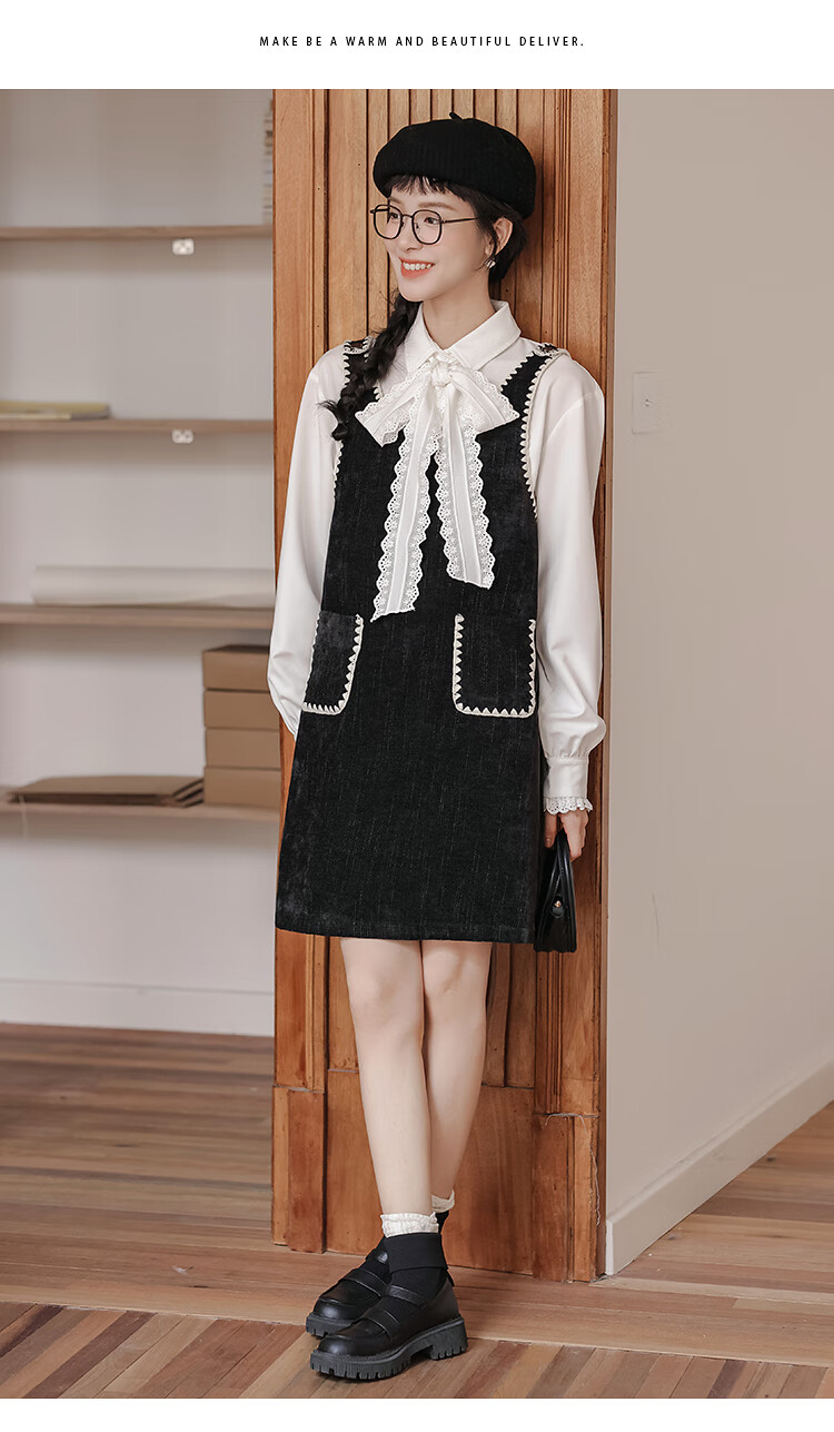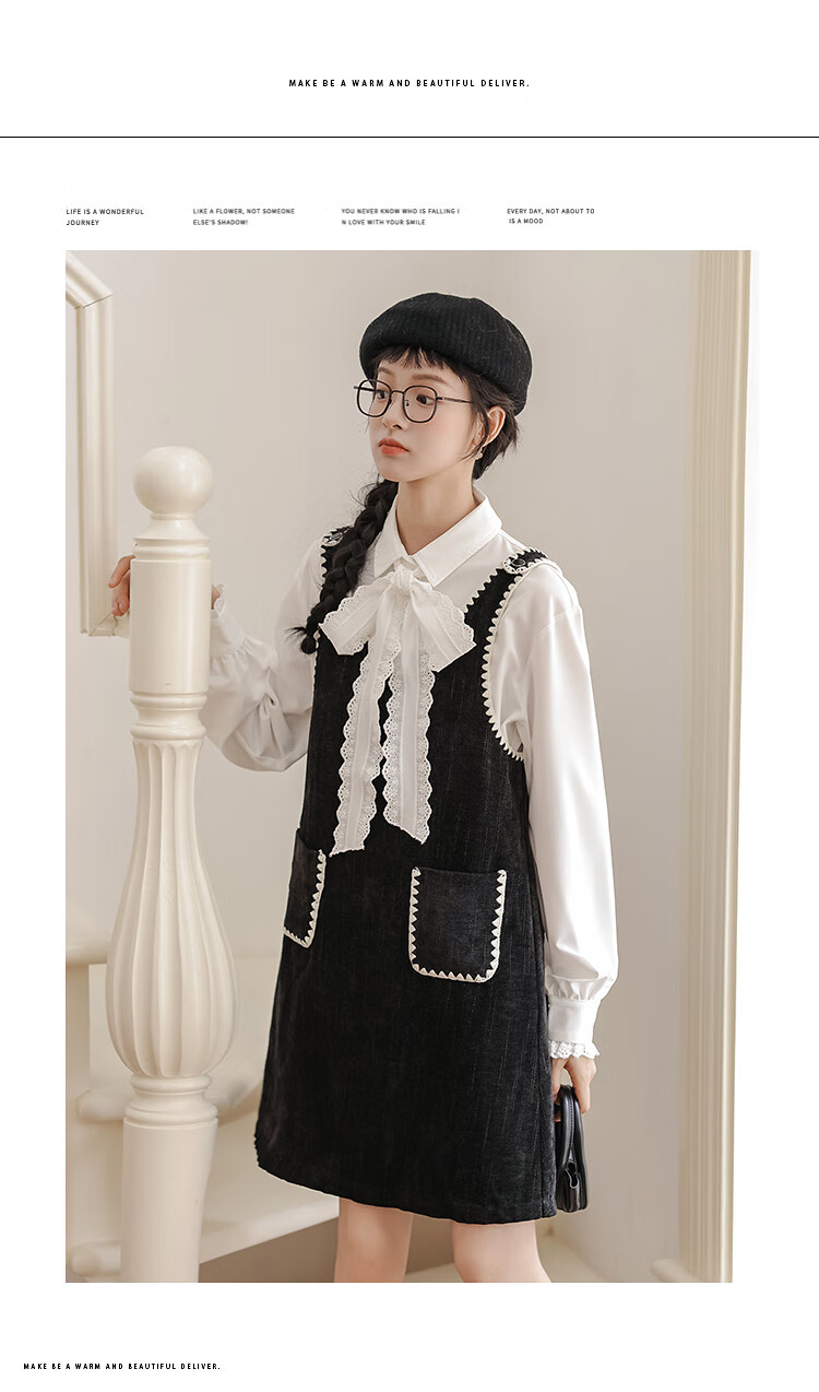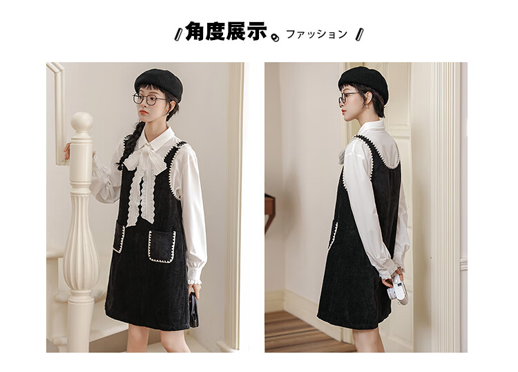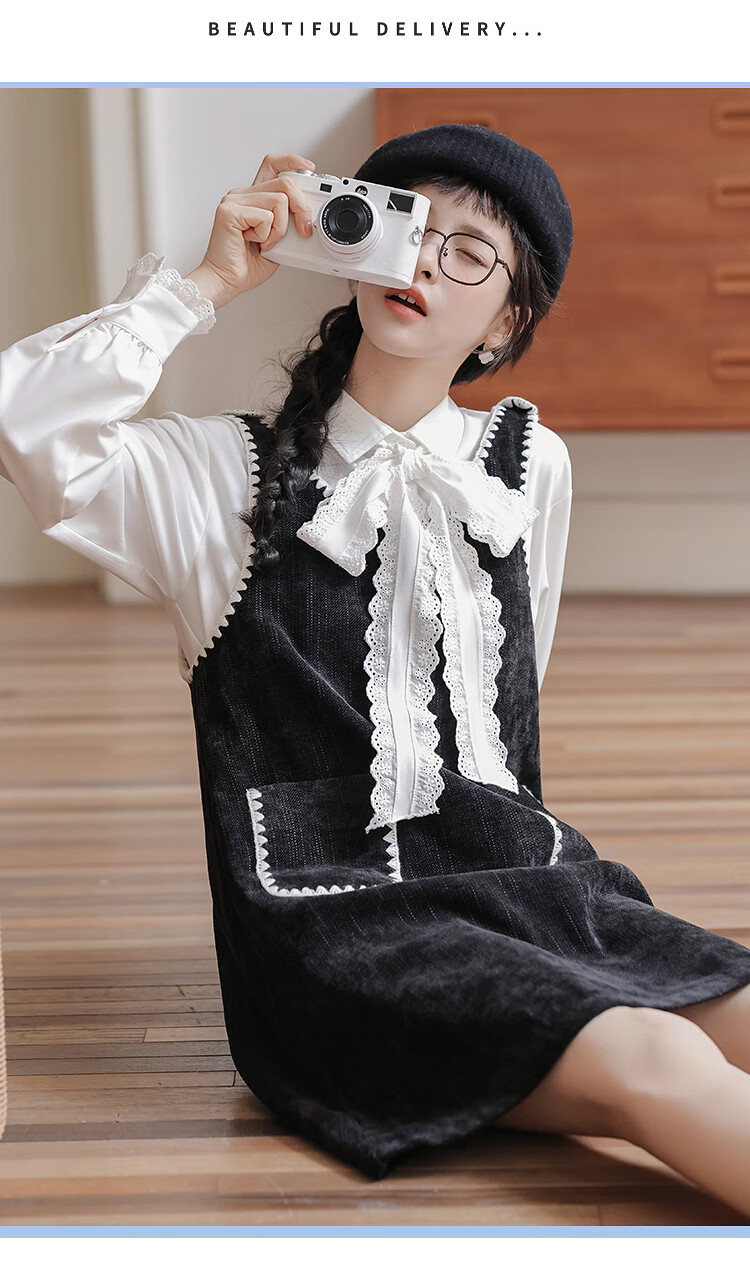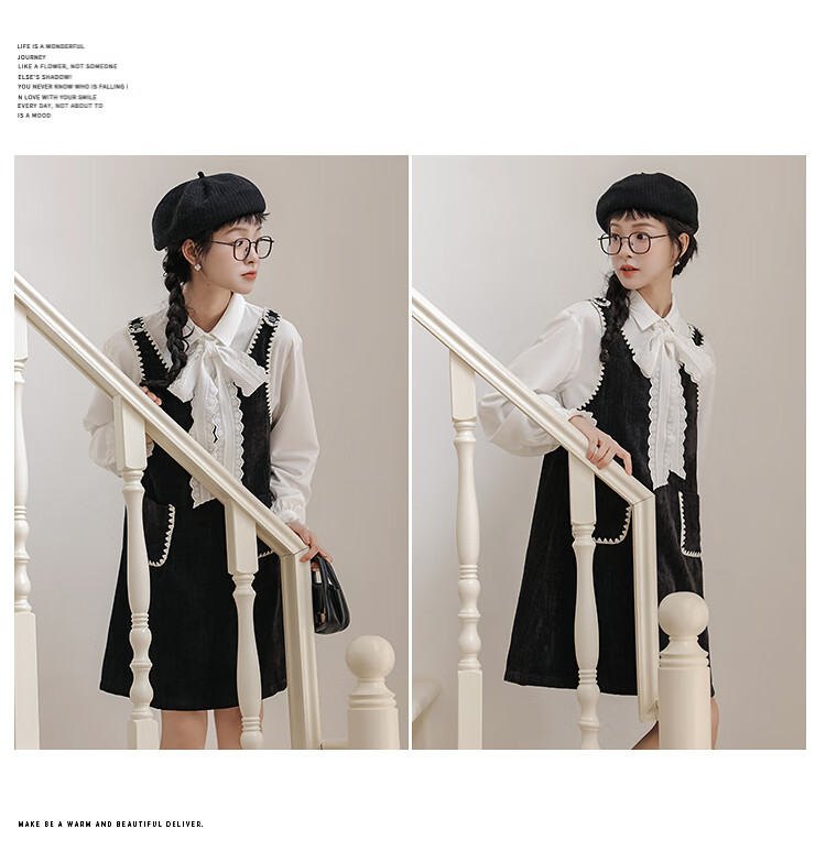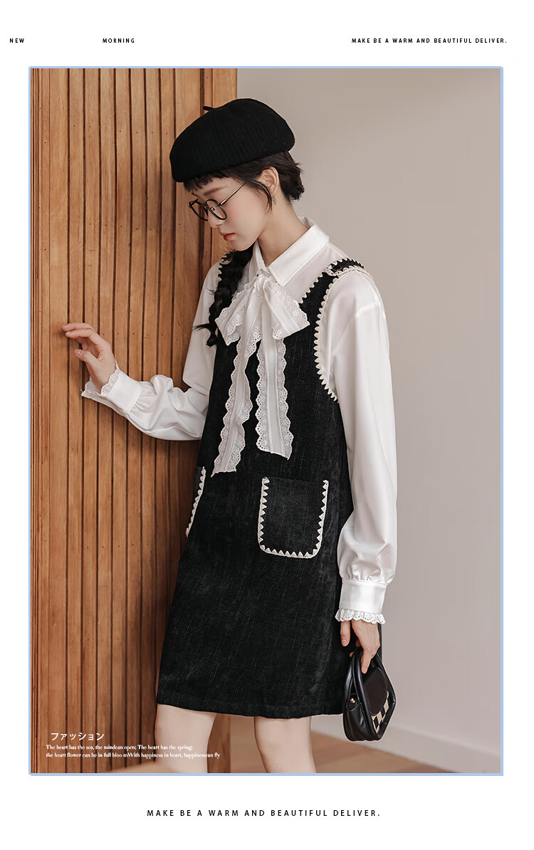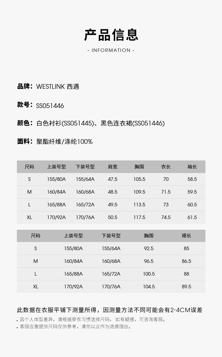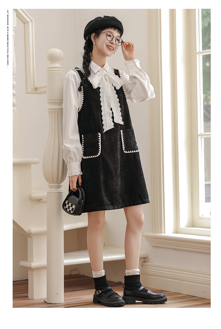 西遇(Westlink)西遇法式宽松长袖衬衫套装女2025年秋季新款通勤背心连衣裙两件套 黑色连衣裙(SS051446) (预售15天) M (160)