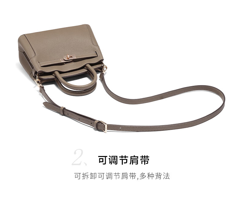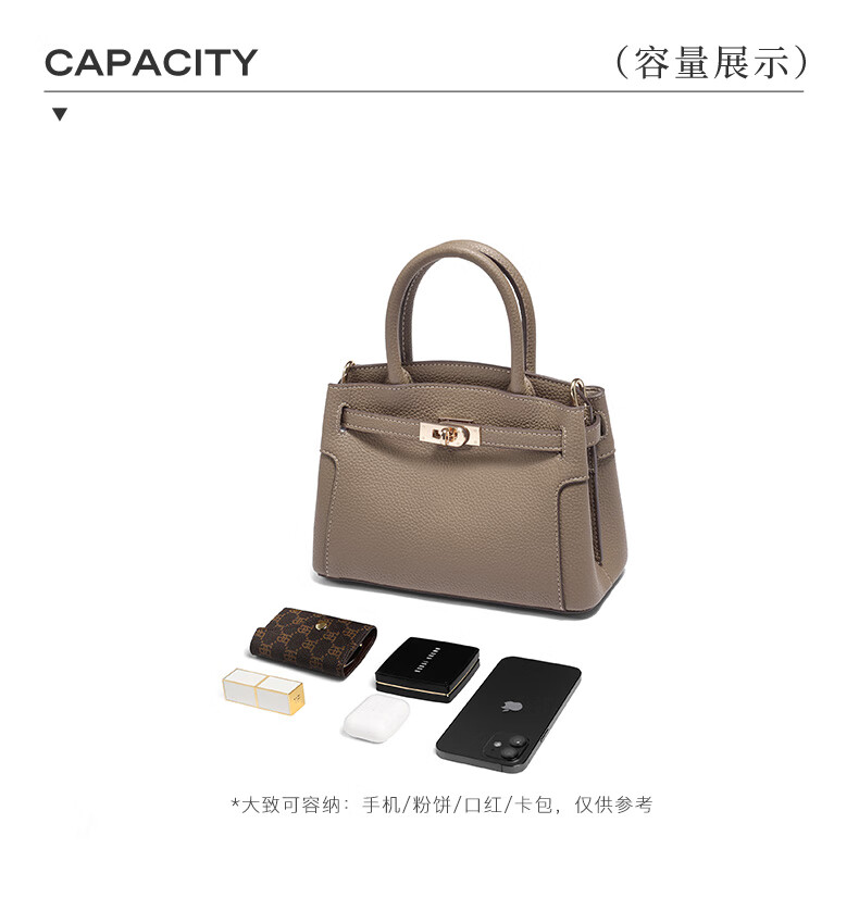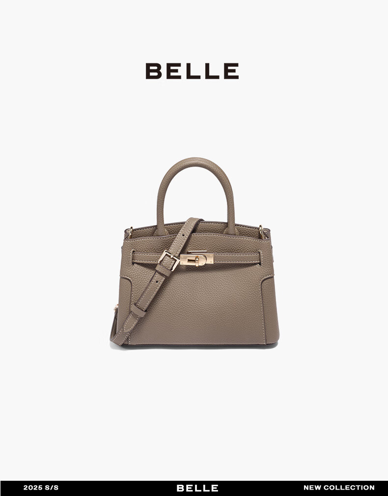 百丽包女25冬新款鎏金岁月小号质感铂金包单肩斜挎手提包X7427DX5 灰色 F