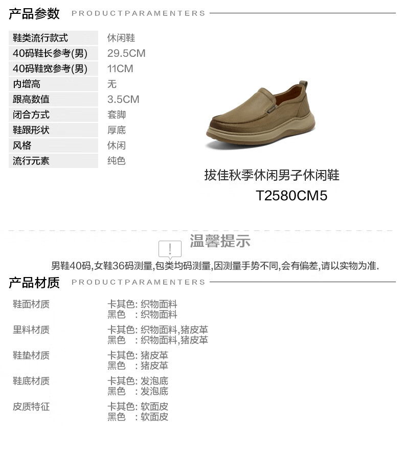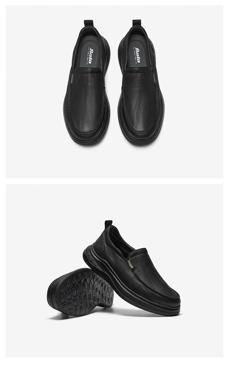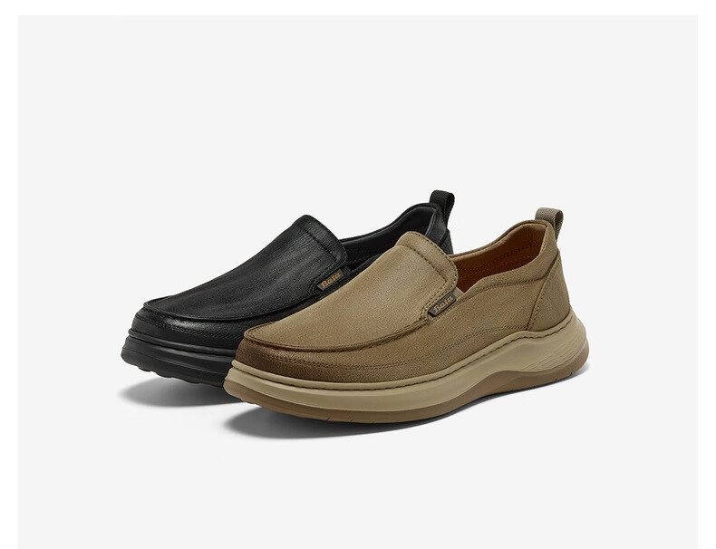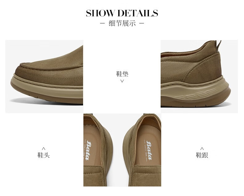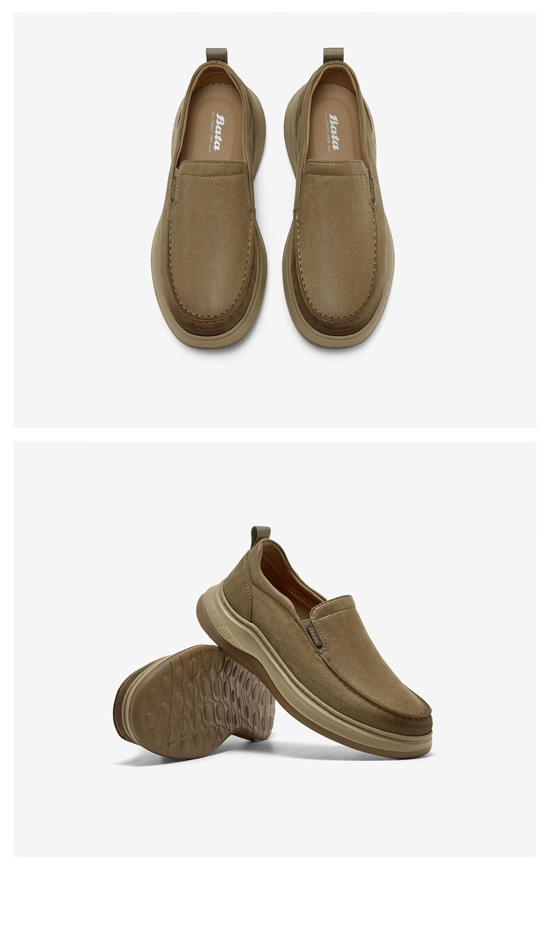 Bata乐福鞋男2025秋季商场新款舒适厚底百搭通勤一脚蹬T2580CM5 卡其色 38