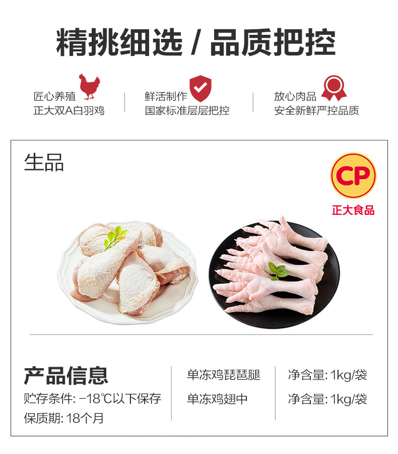 正大食品鸡肉组合净重4斤 琵琶腿+鸡爪各2斤 生鲜冷冻凤爪烧烤