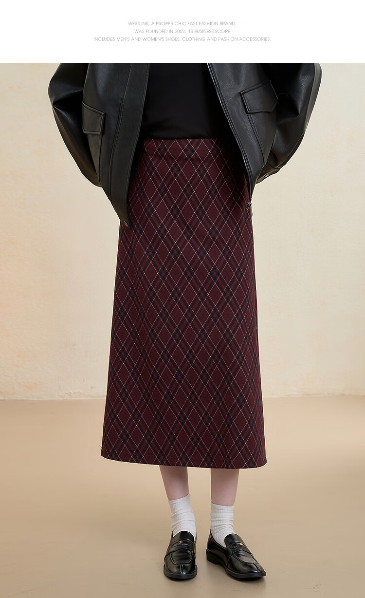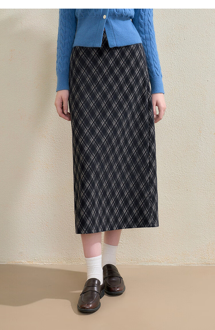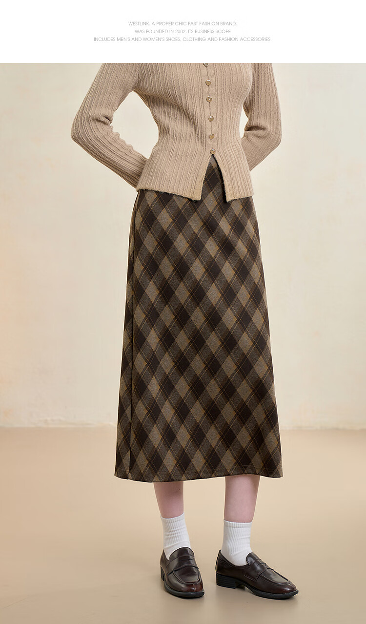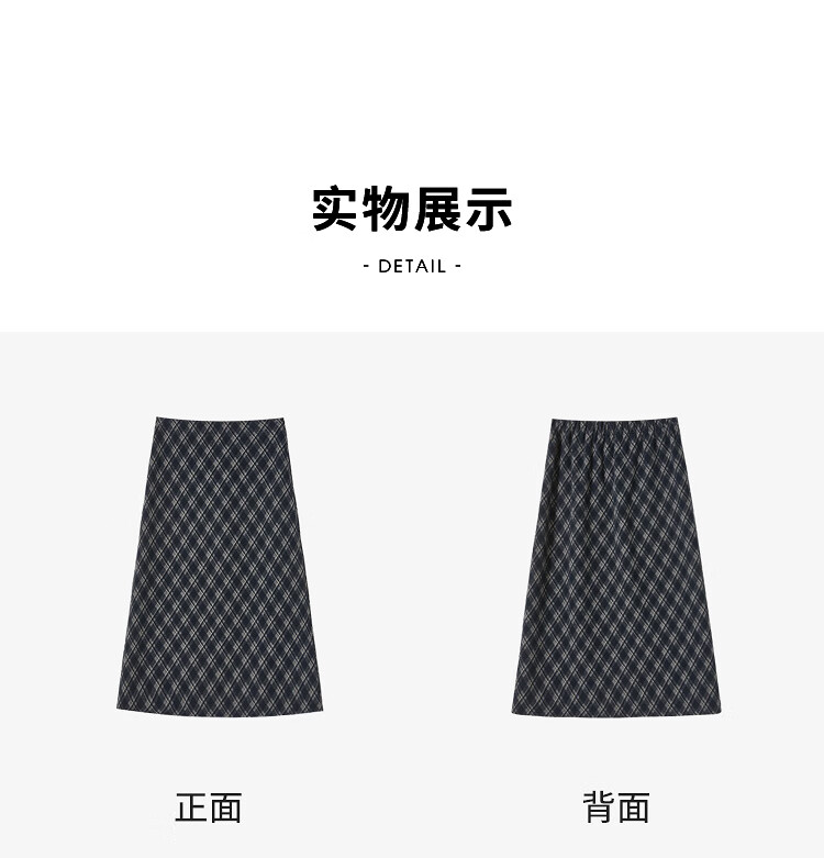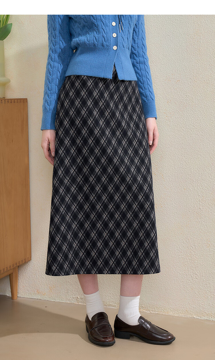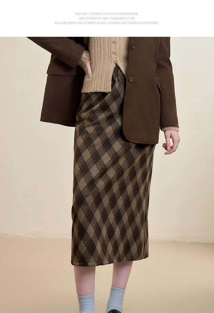 西遇(Westlink)复古棱格毛呢半身裙女2025秋季新款学院风高腰显瘦直筒中长裙 蓝色(V3355237) S (26)