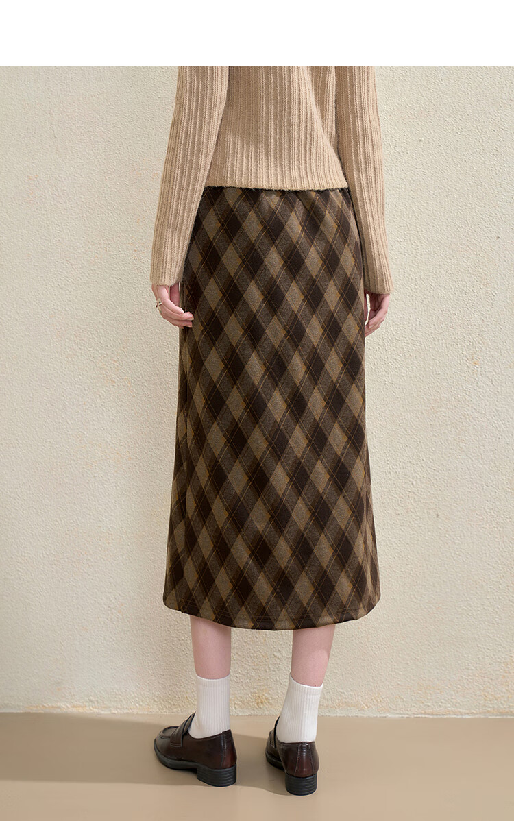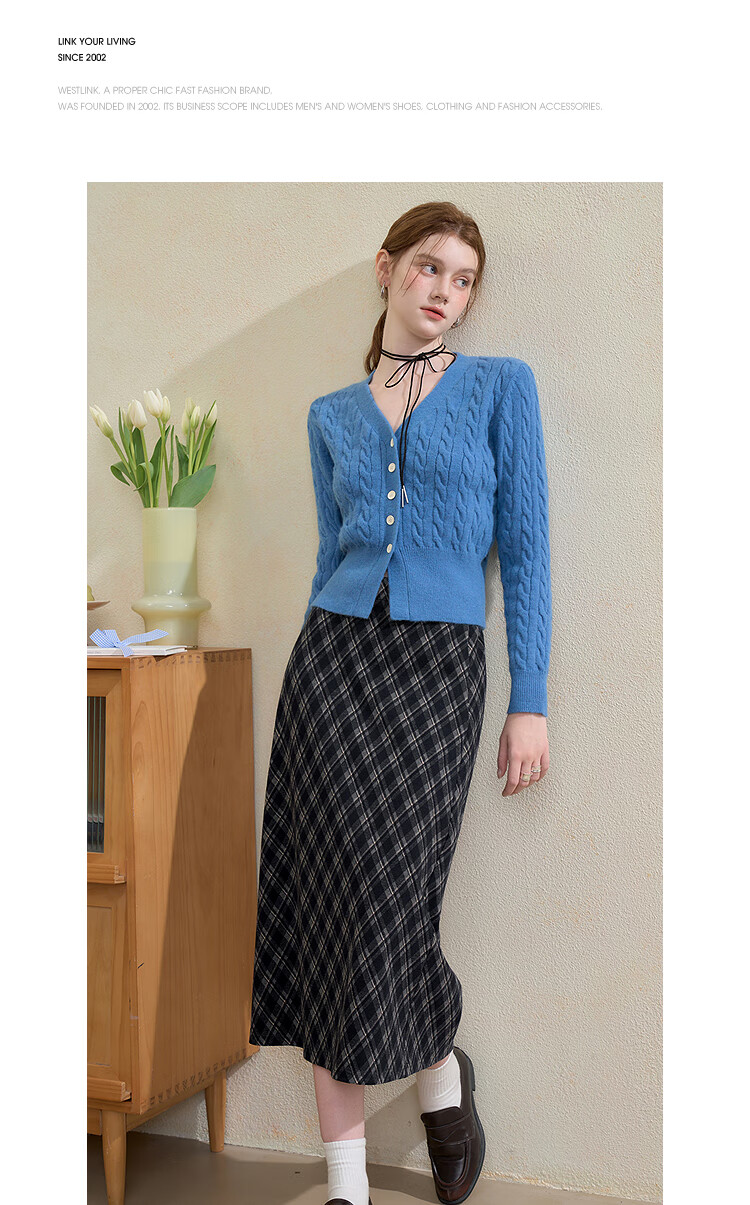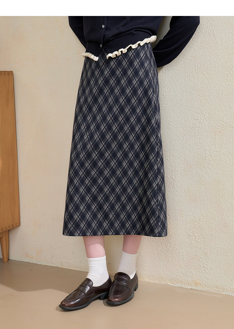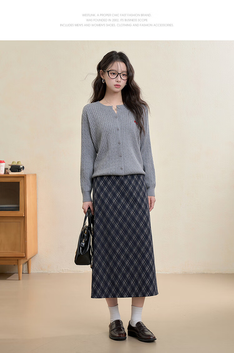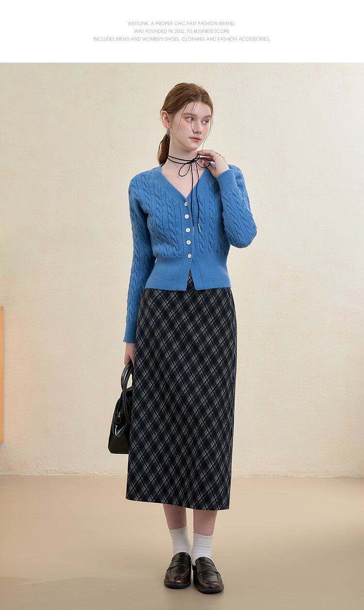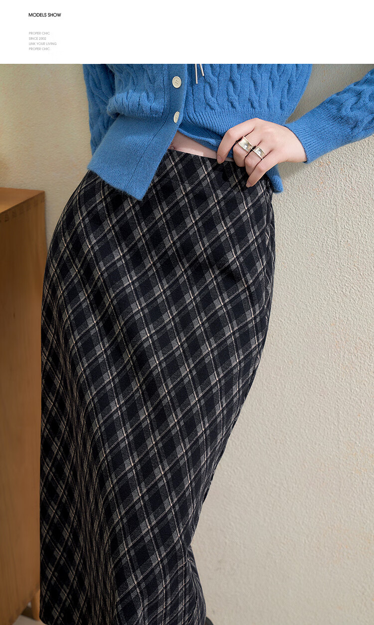 西遇(Westlink)复古棱格毛呢半身裙女2025秋季新款学院风高腰显瘦直筒中长裙 蓝色(V3355237) S (26)