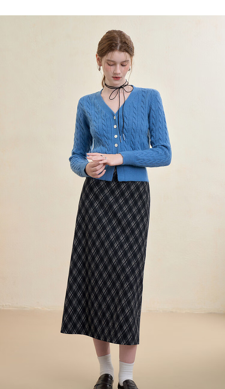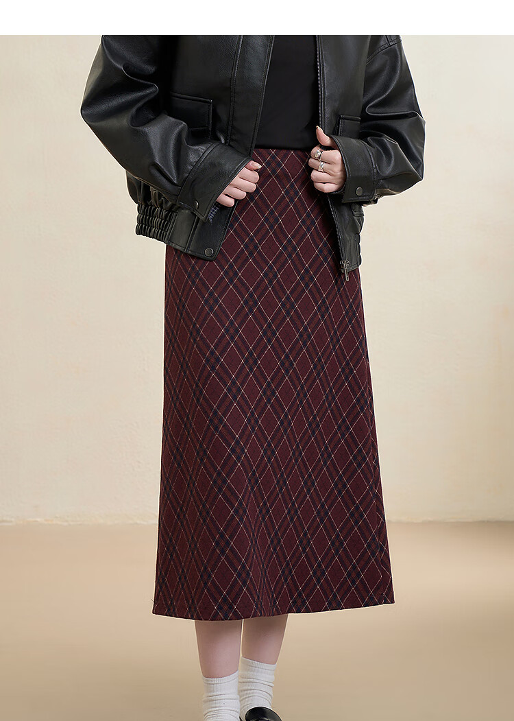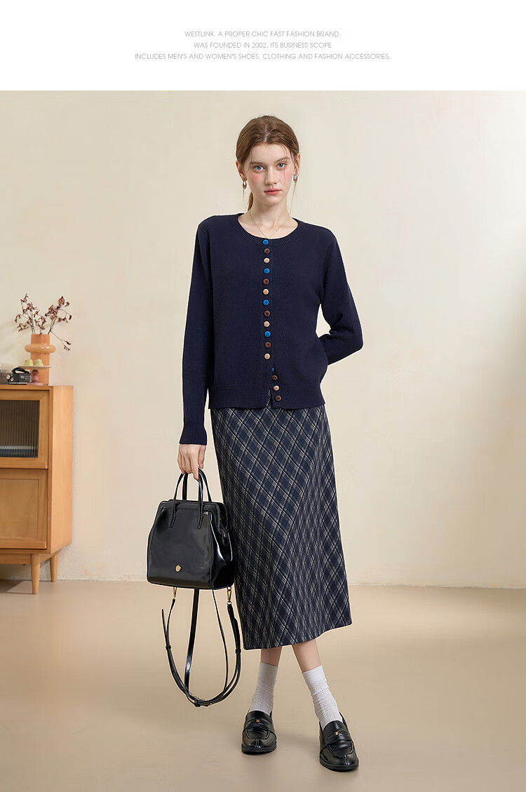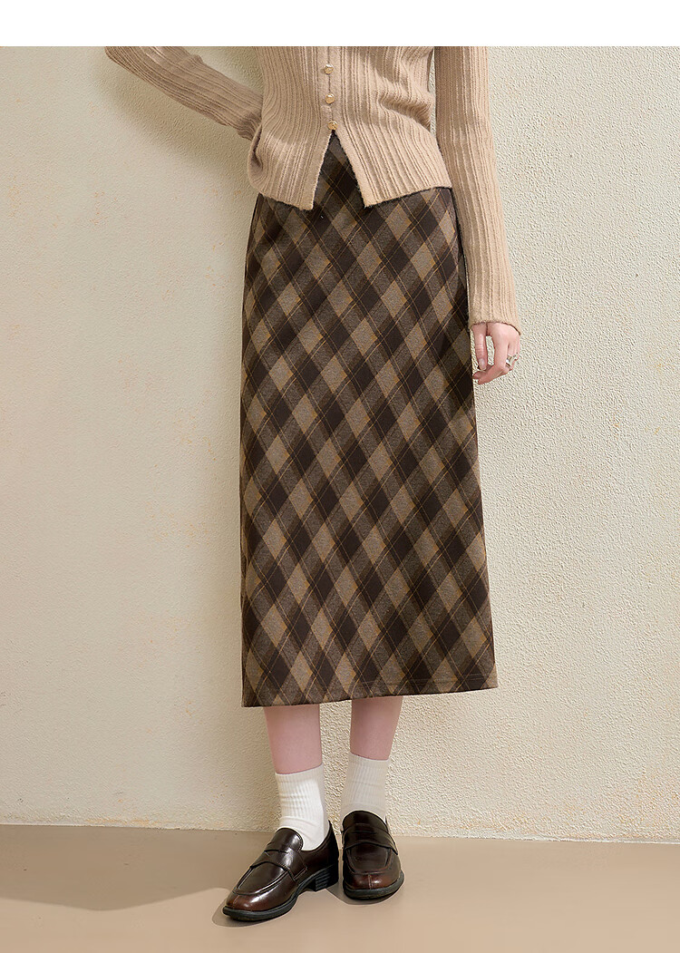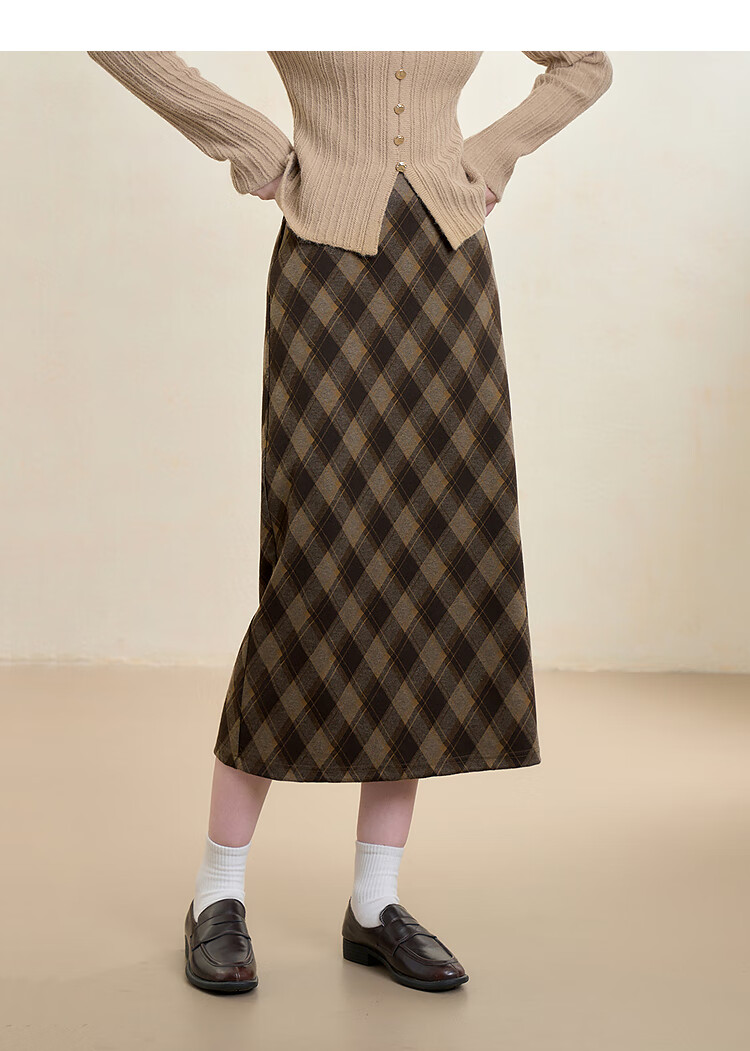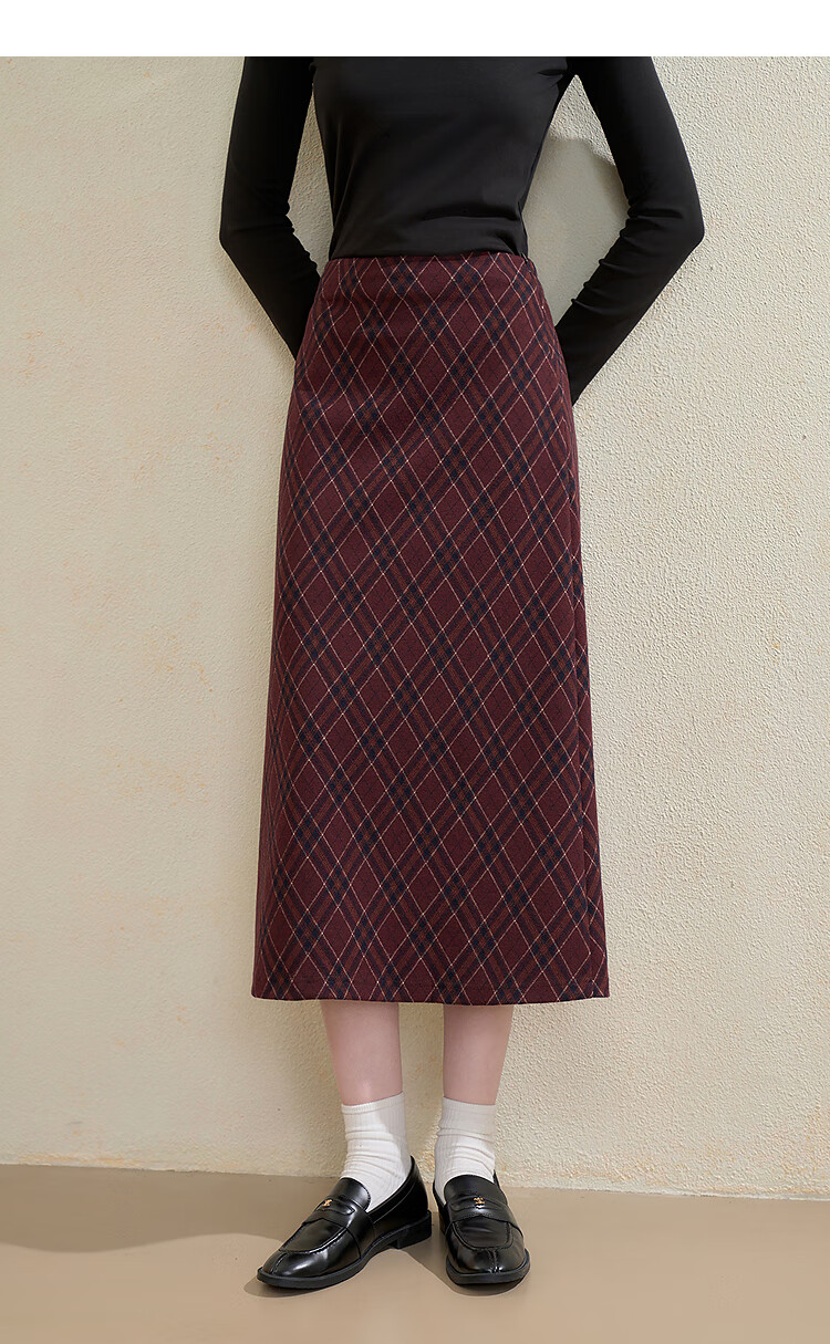 西遇(Westlink)复古棱格毛呢半身裙女2025秋季新款学院风高腰显瘦直筒中长裙 蓝色(V3355237) S (26)