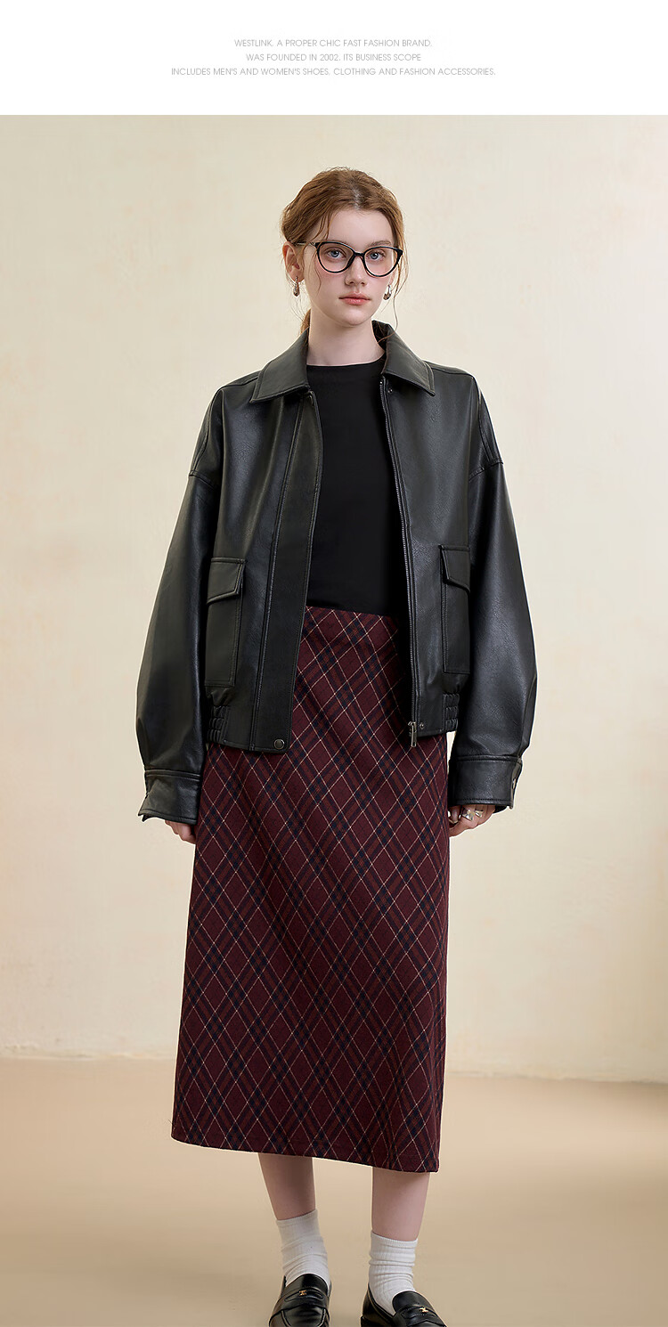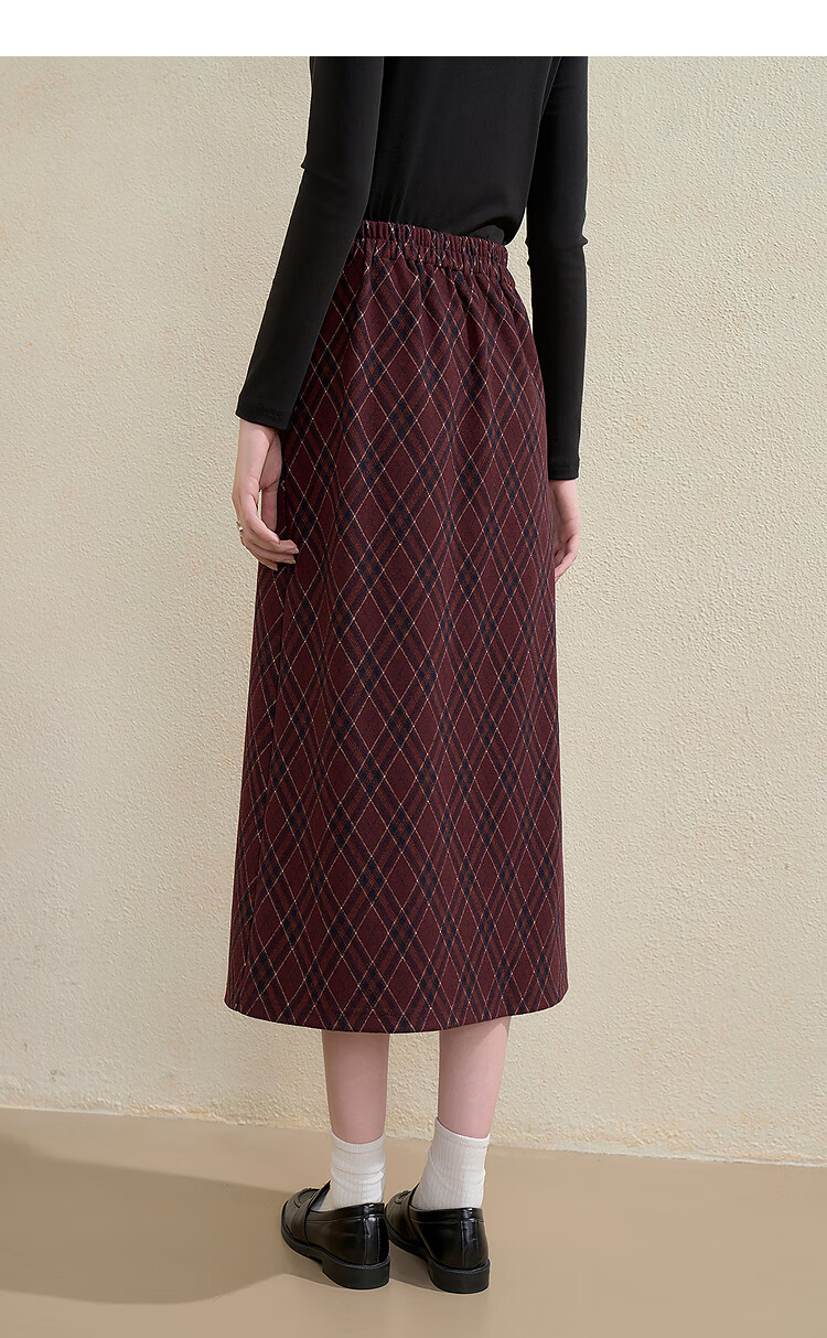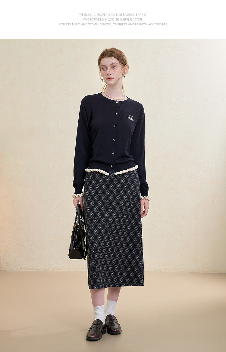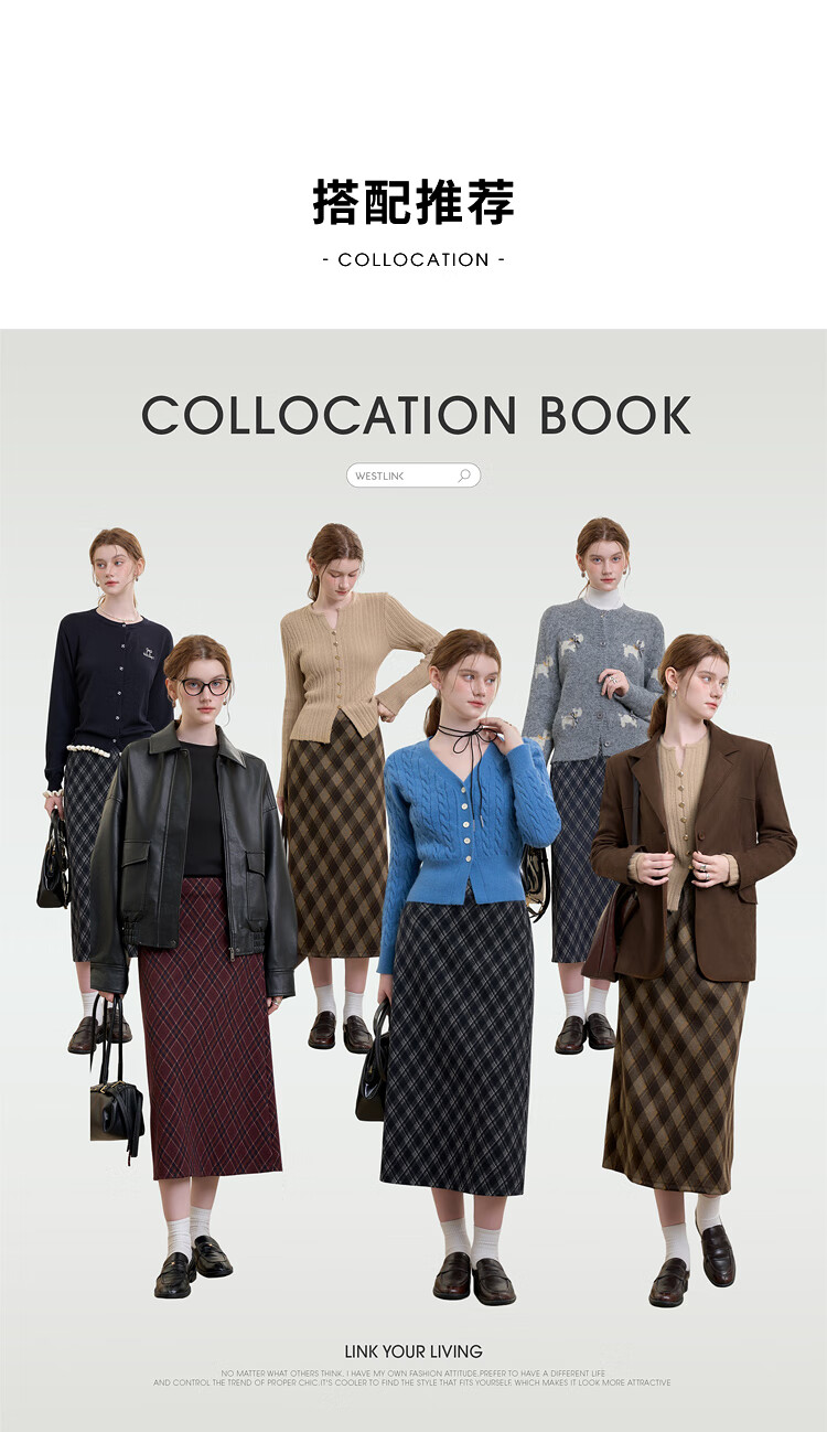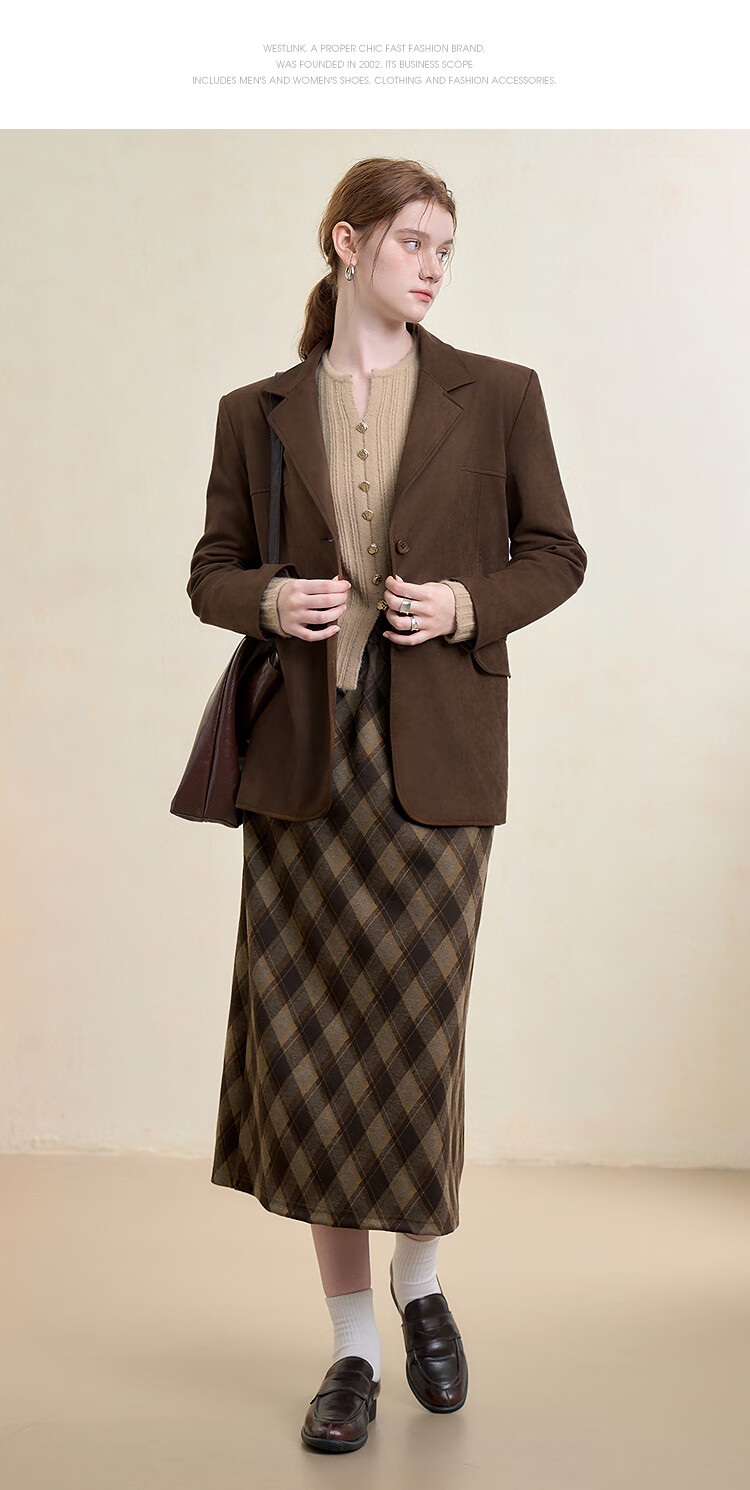 西遇(Westlink)复古棱格毛呢半身裙女2025秋季新款学院风高腰显瘦直筒中长裙 蓝色(V3355237) S (26)