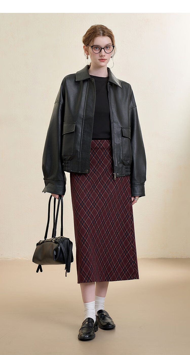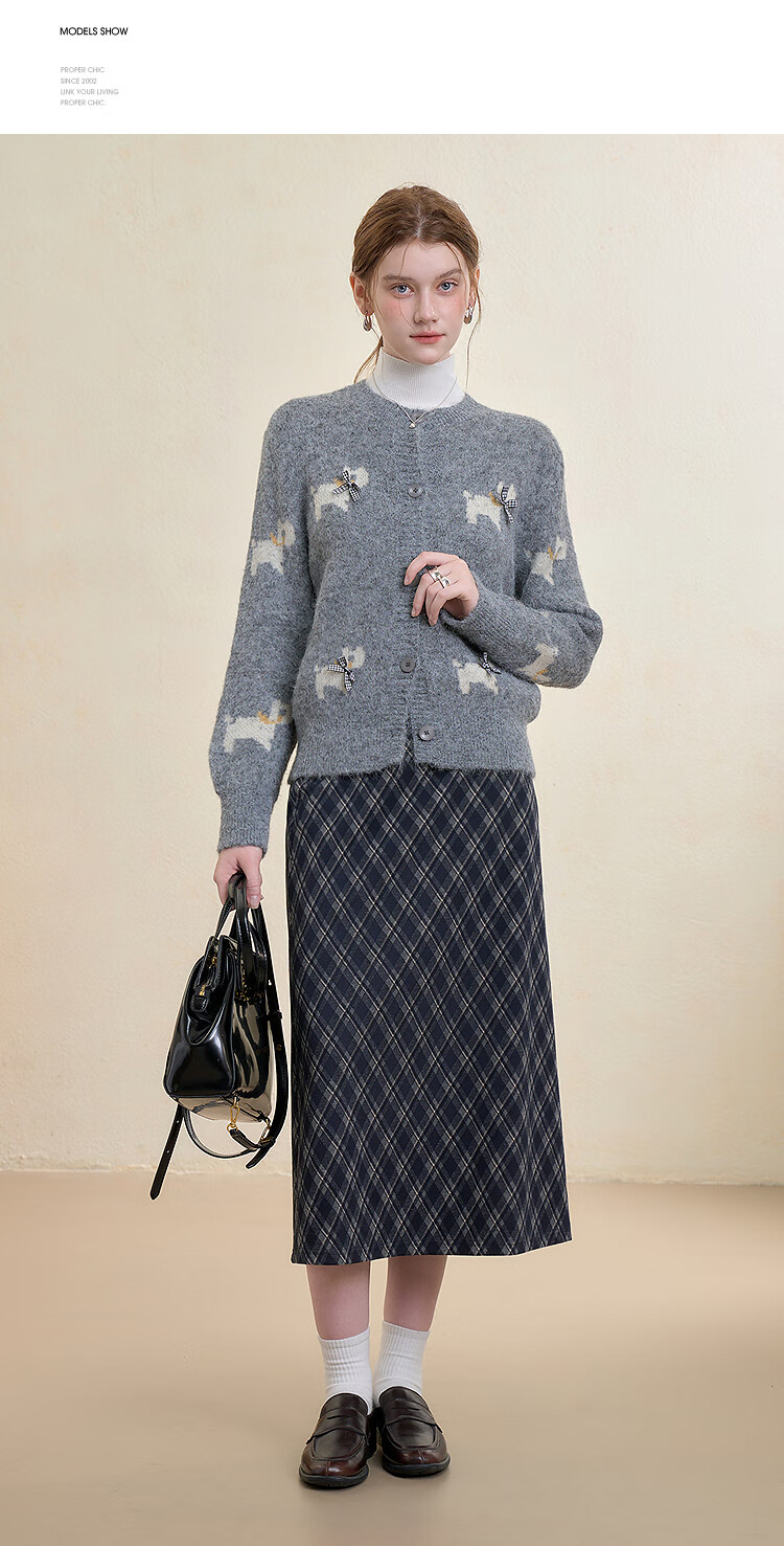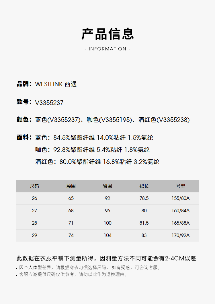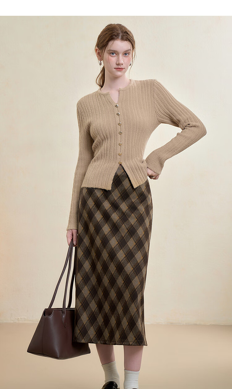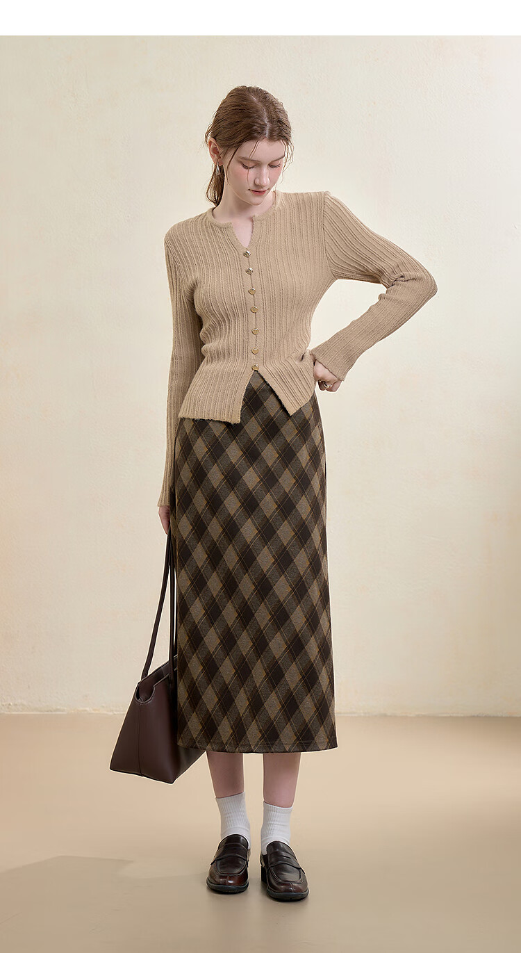 西遇(Westlink)复古棱格毛呢半身裙女2025秋季新款学院风高腰显瘦直筒中长裙 蓝色(V3355237) S (26)
