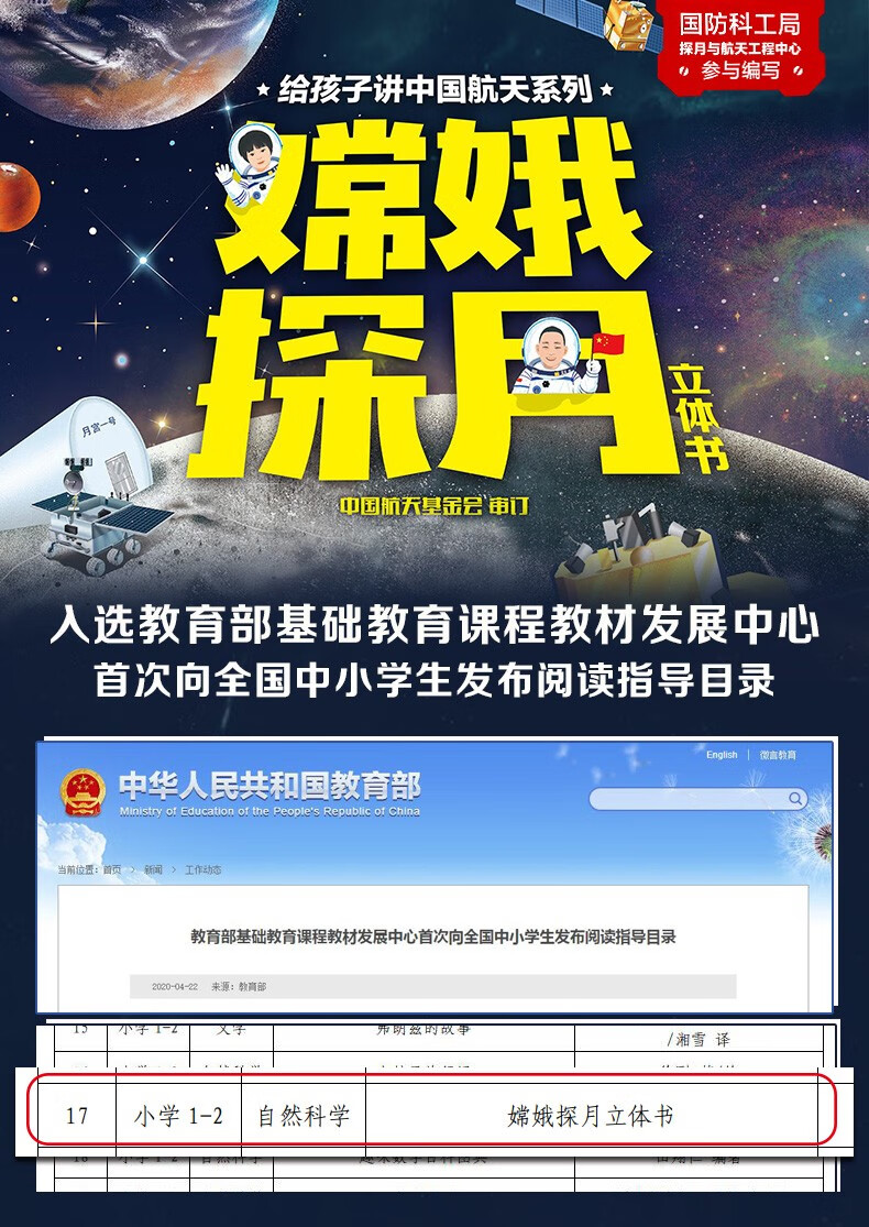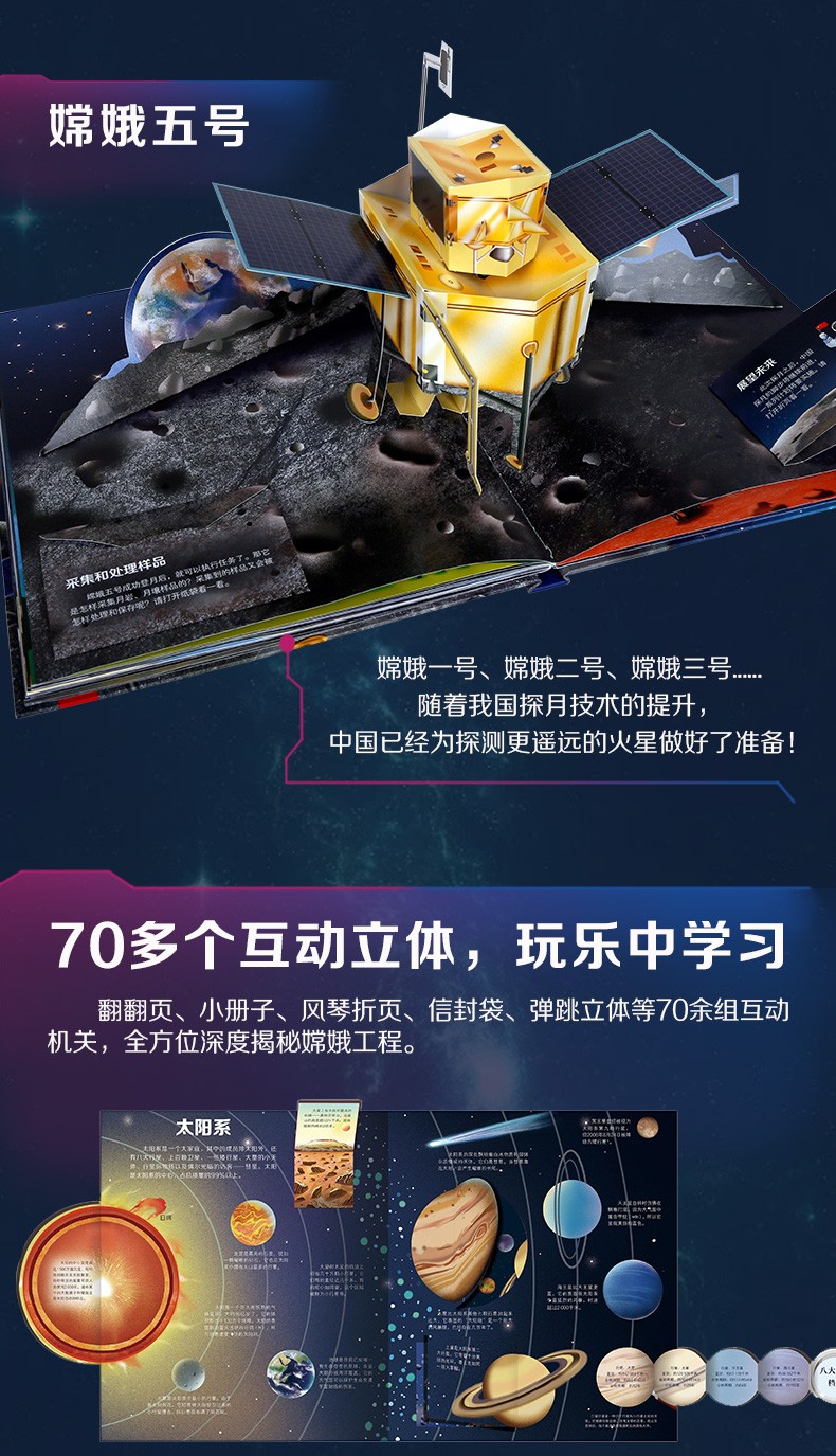 乐乐趣科普 给孩子讲中国航天系列-嫦娥探月立体书点读版马莉等/文 王晓旭/图 3-6-12岁 3d立体科普书 早教科普翻翻书一二年级版课外书 嫦娥探月立体书-点读版