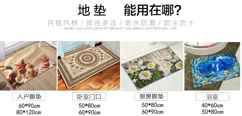 KAYE可定制入户门地垫加厚家用厨房脚垫卫生间浴室门口防滑垫子进门垫 SJR-风生水起 40x60 cm