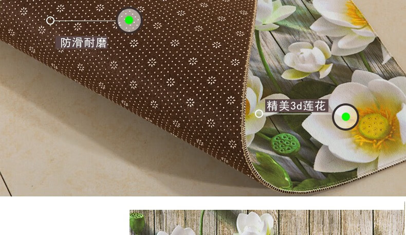 KAYE异形花卉仿羊绒卧室床边毯家用长条垫子客厅房间加厚沙发短绒地毯 FYR-清新绿色花花 50x140cm