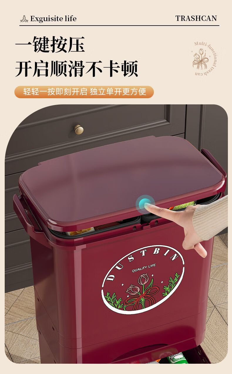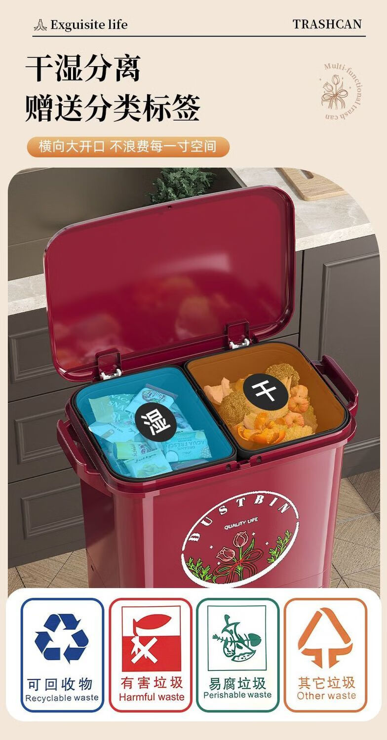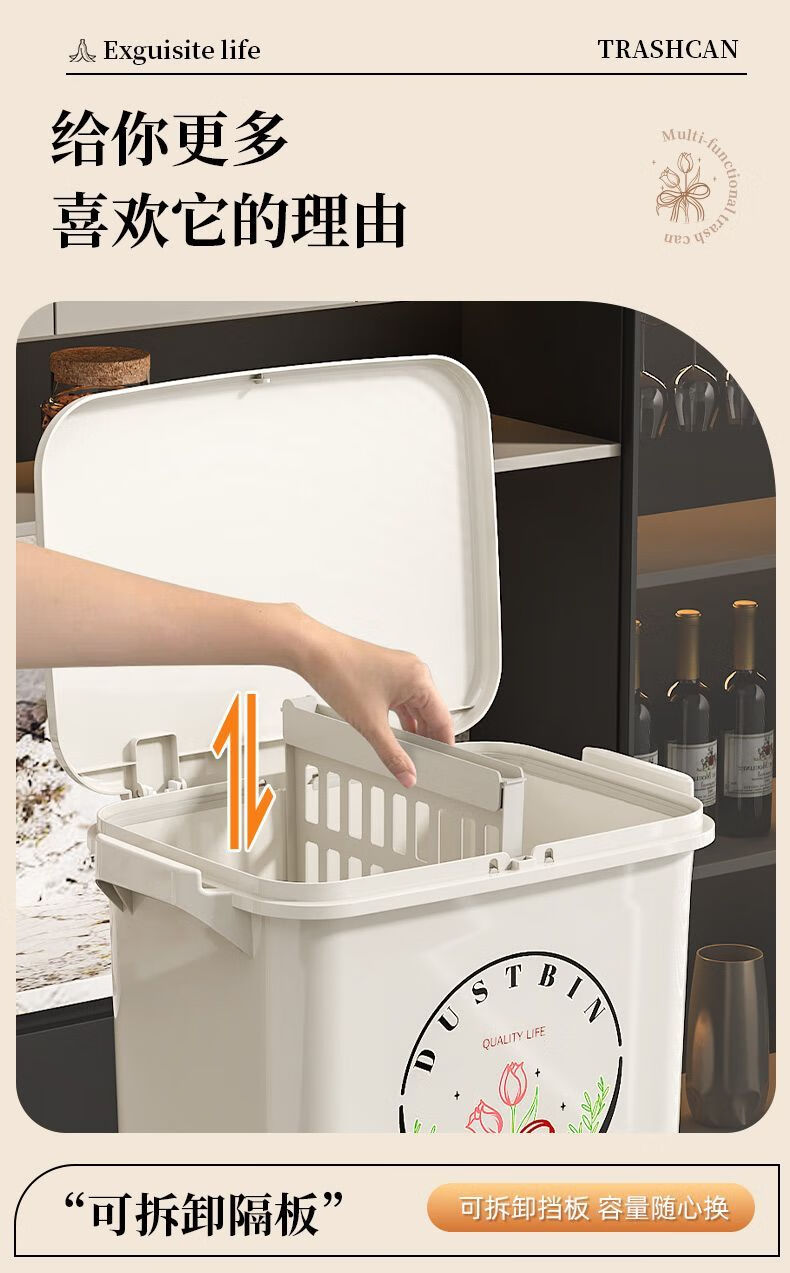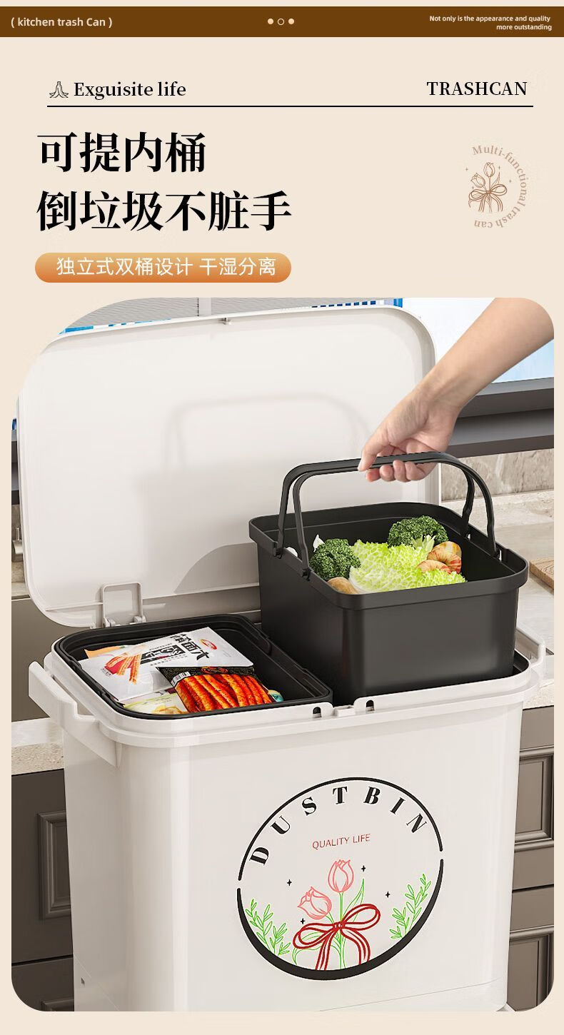 纳份爱厨余干湿分离垃圾桶高款免弯腰家用带盖防臭双层日式大容量垃圾箱 优雅白-32L【单桶/隔板分离/窄款3层】