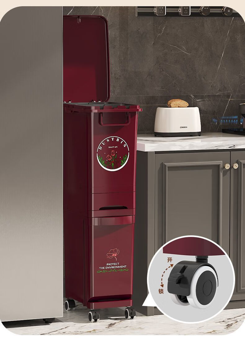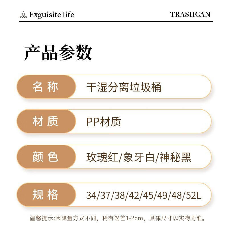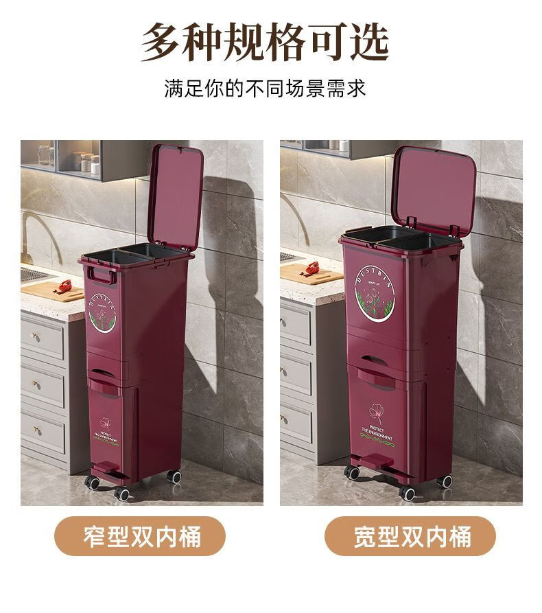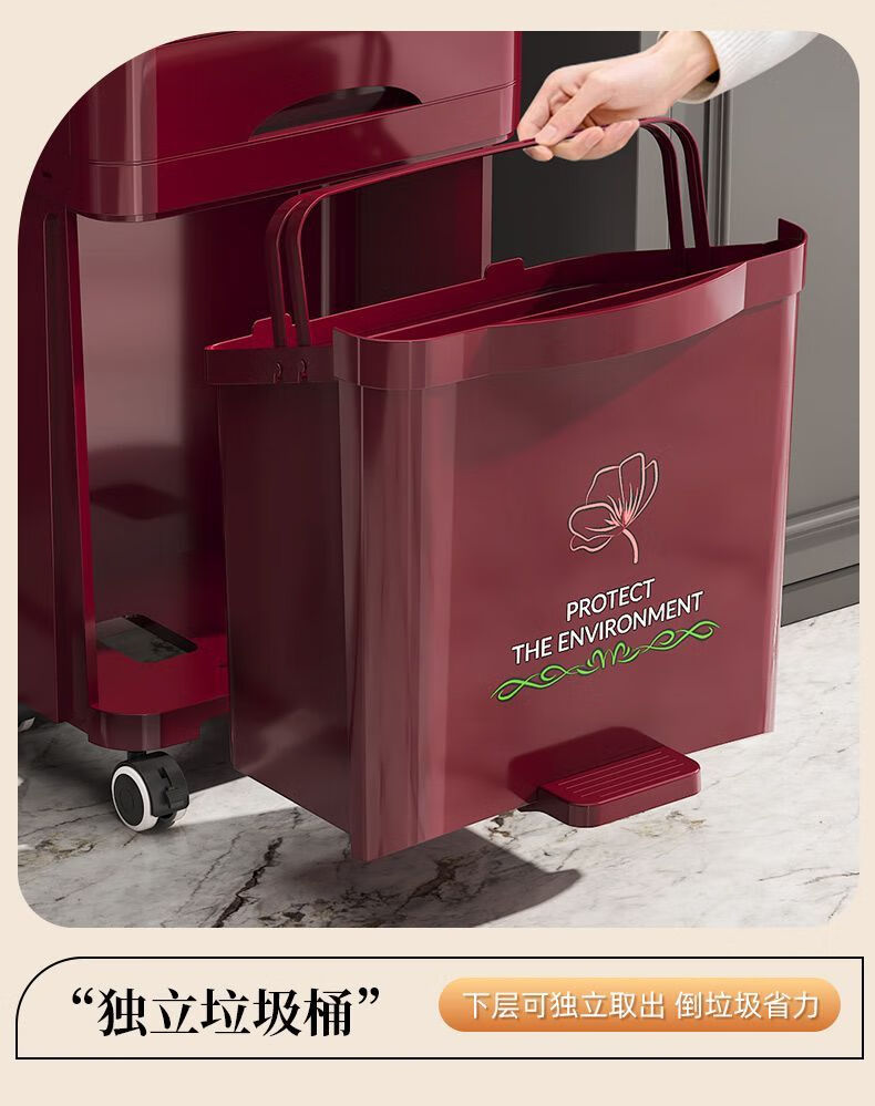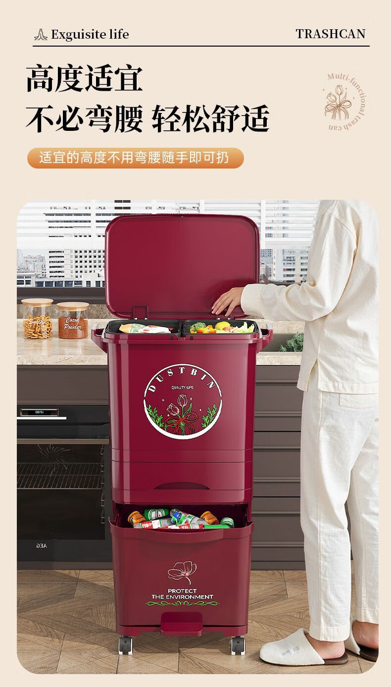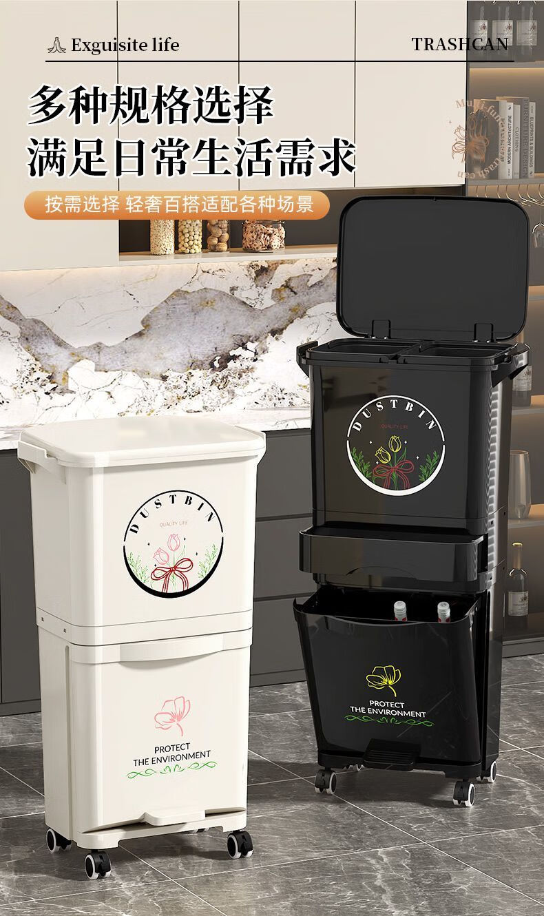 纳份爱厨余干湿分离垃圾桶高款免弯腰家用带盖防臭双层日式大容量垃圾箱 优雅白-32L【单桶/隔板分离/窄款3层】