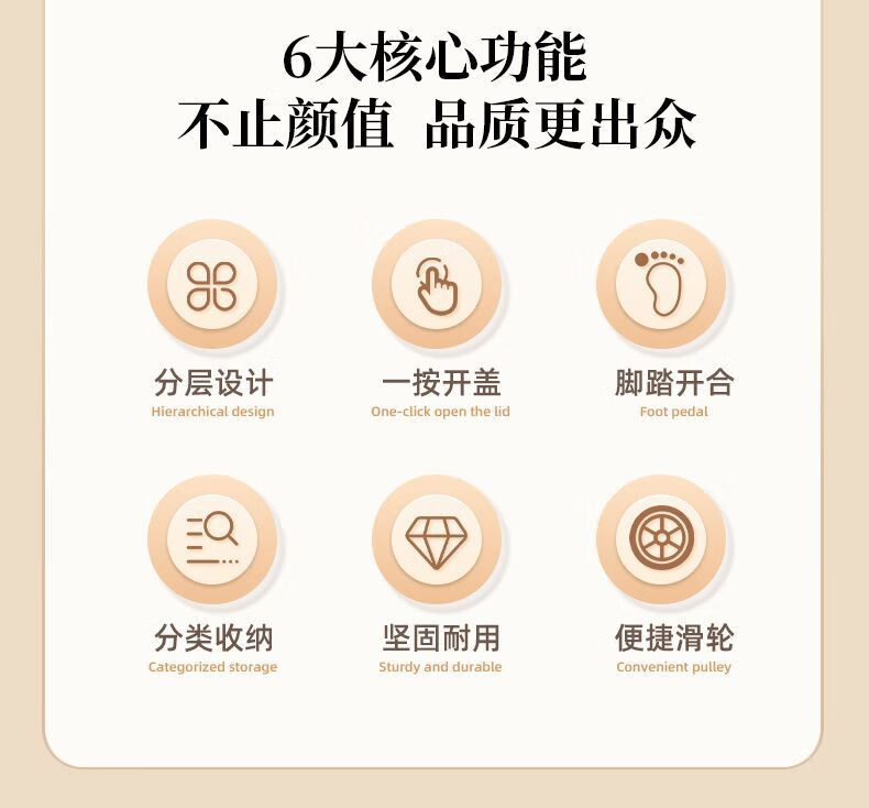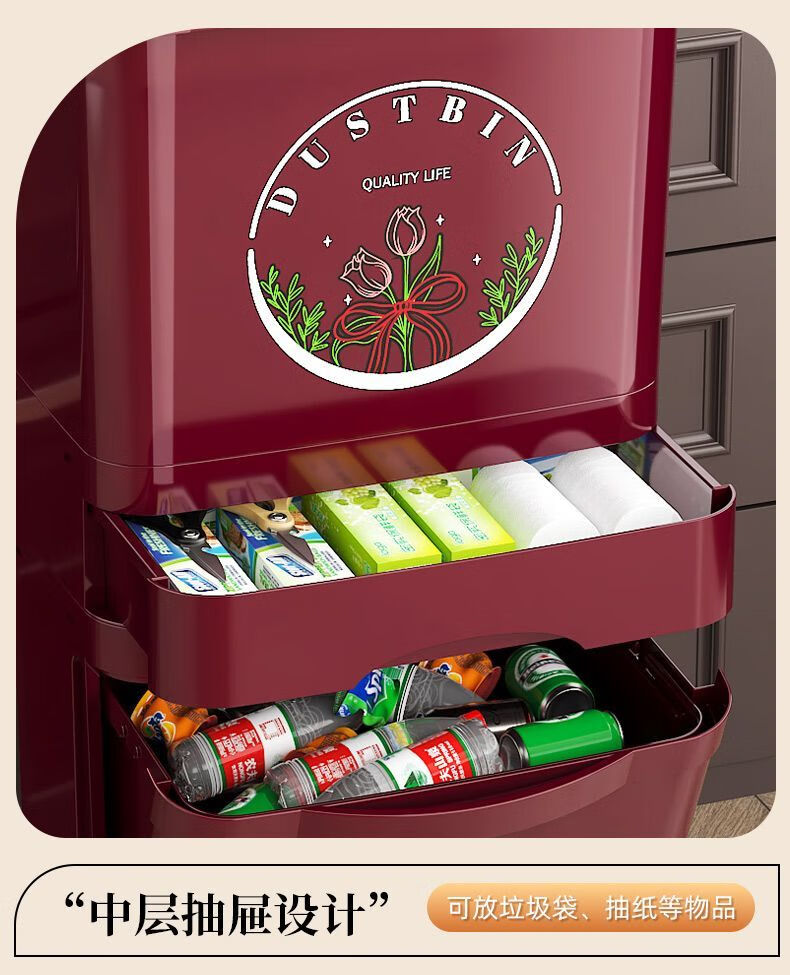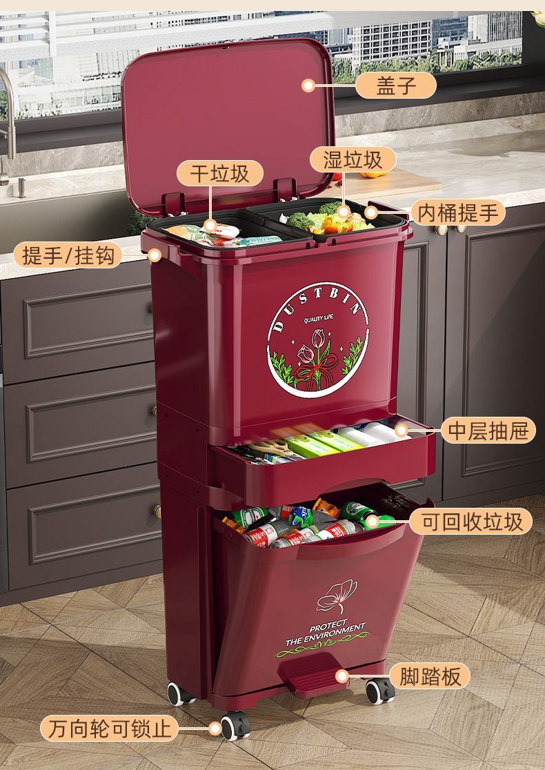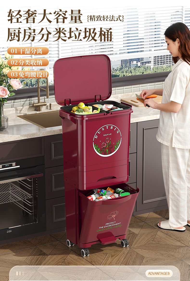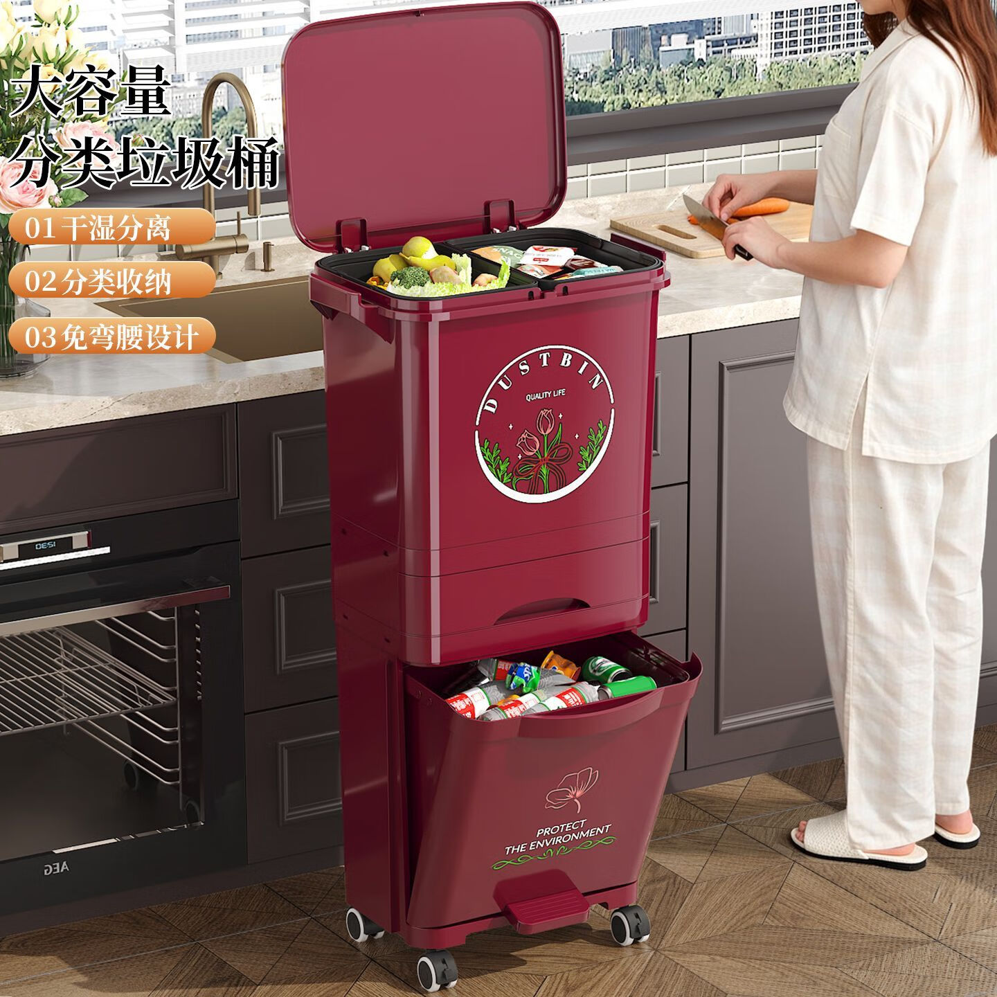 纳份爱厨余干湿分离垃圾桶高款免弯腰家用带盖防臭双层日式大容量垃圾箱 优雅白-32L【单桶/隔板分离/窄款3层】