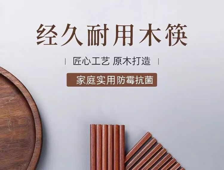 DEATKN筷子家用抗菌防霉防滑食品级鸡翅木高档木质快子家庭专用耐高温 进口红檀木10双+精美卡纸包装+质保