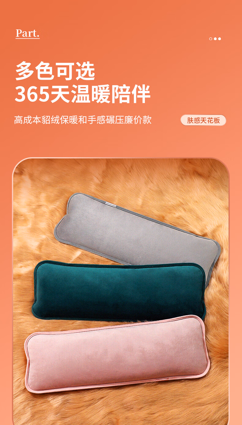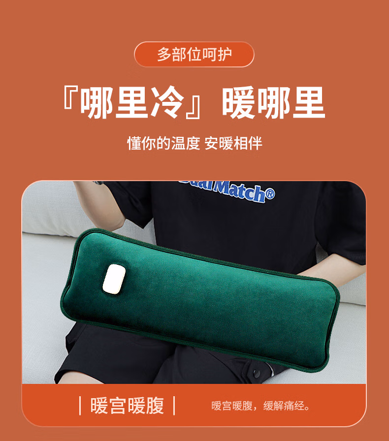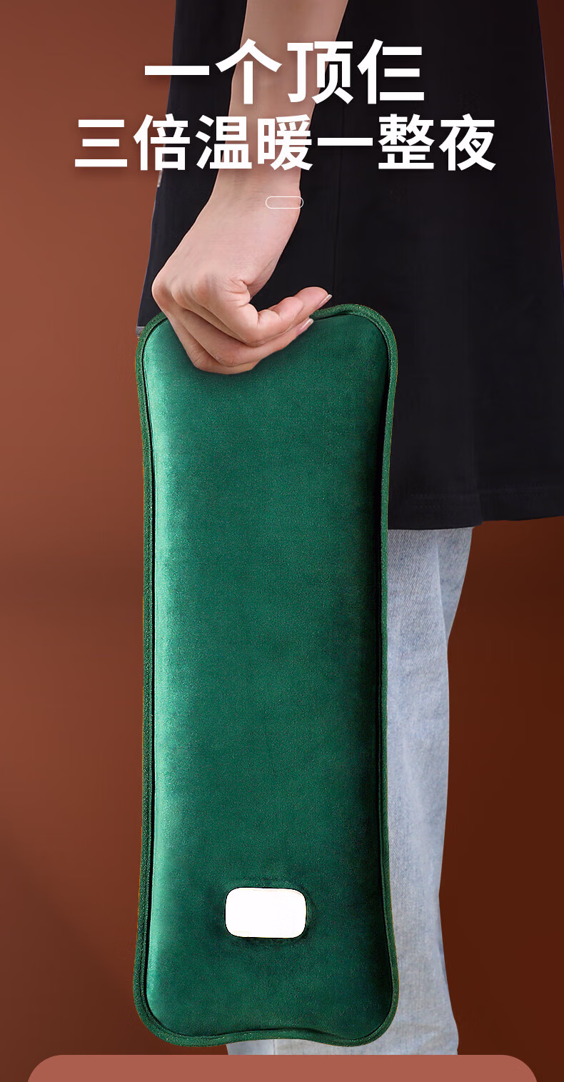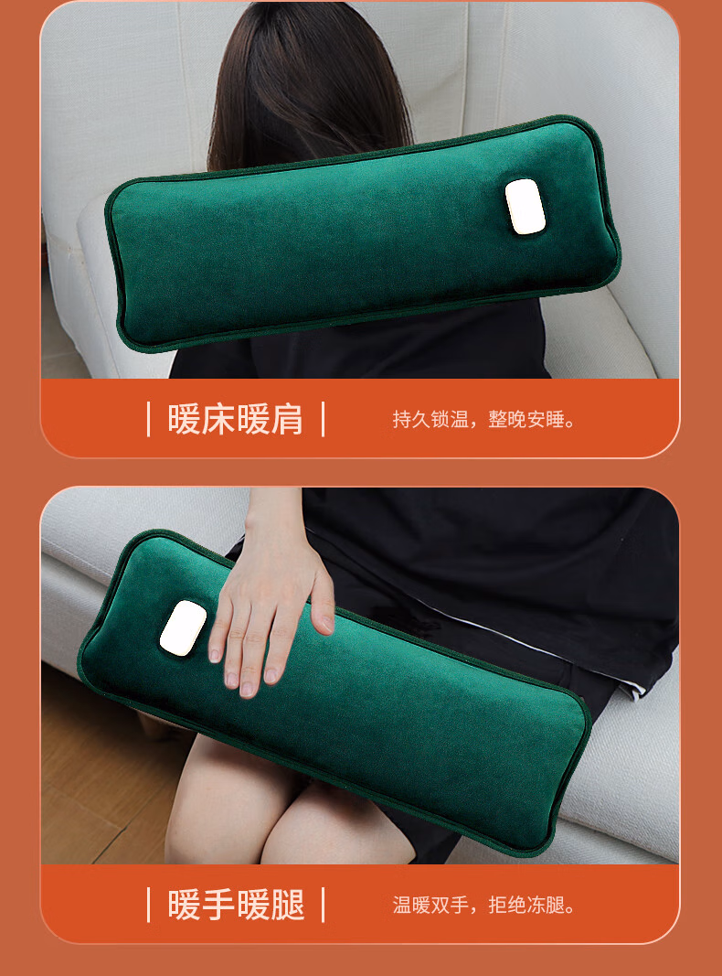 WCZ德国颈椎热水袋充电暖宝宝敷腰肚脖子专用热敷袋长条肩颈袋暖被窝 加长加大颈椎款【珊瑚绿】-发热丝-超长保暖