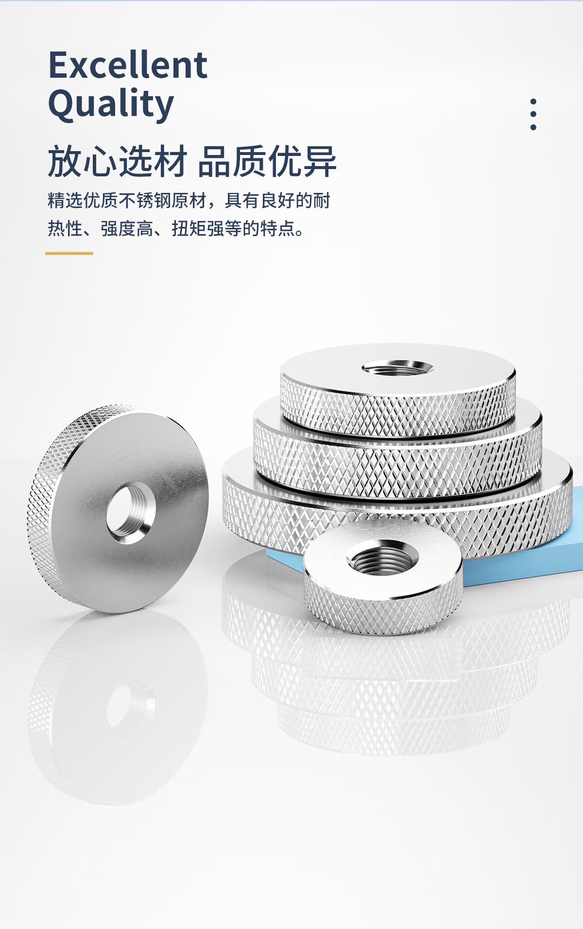 固万基(GUWANJI)304不锈钢手拧螺母加大平头网纹滚花调节螺母螺帽M3M4M5M6M8-M10 M3x10x5[5只]