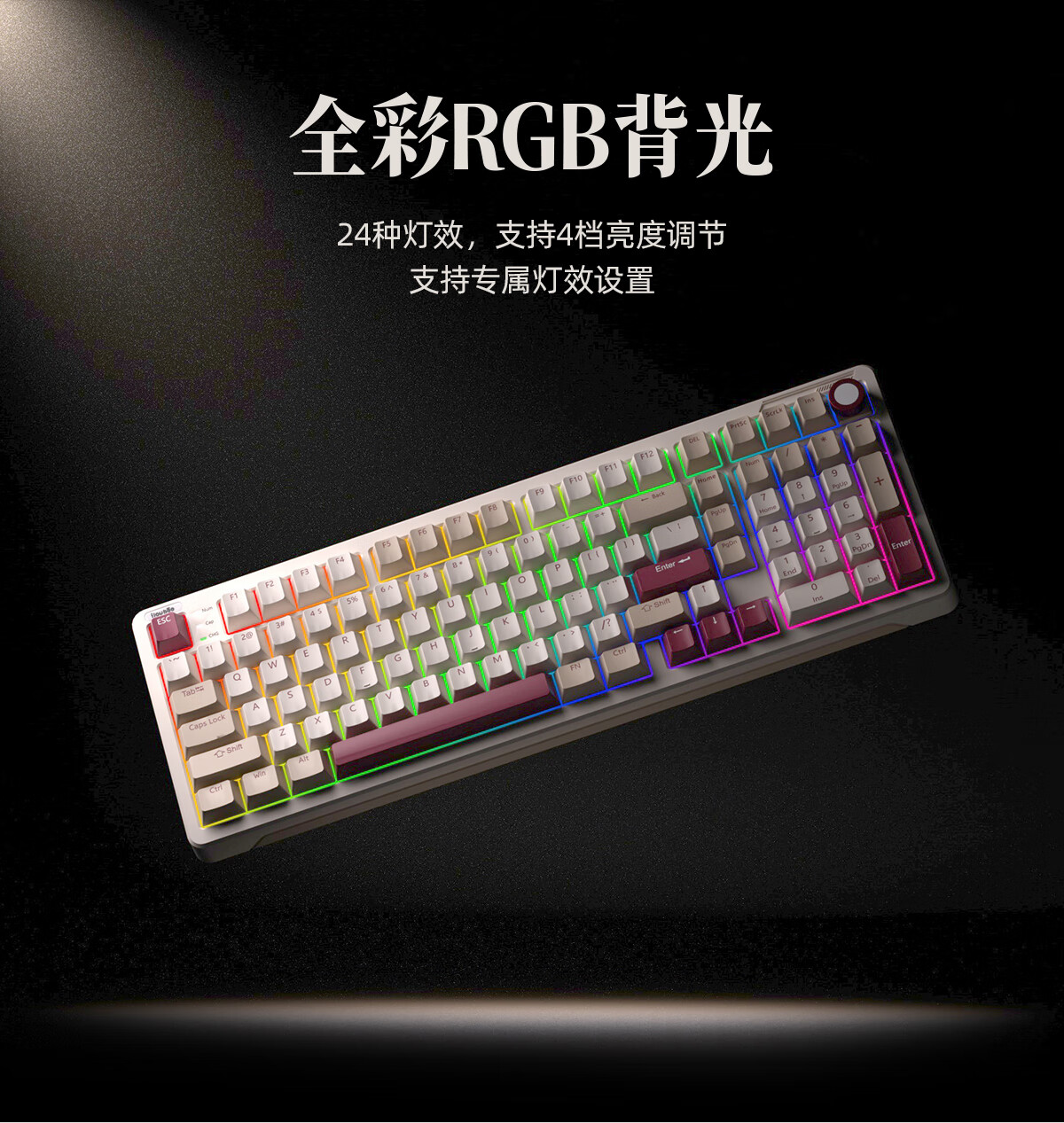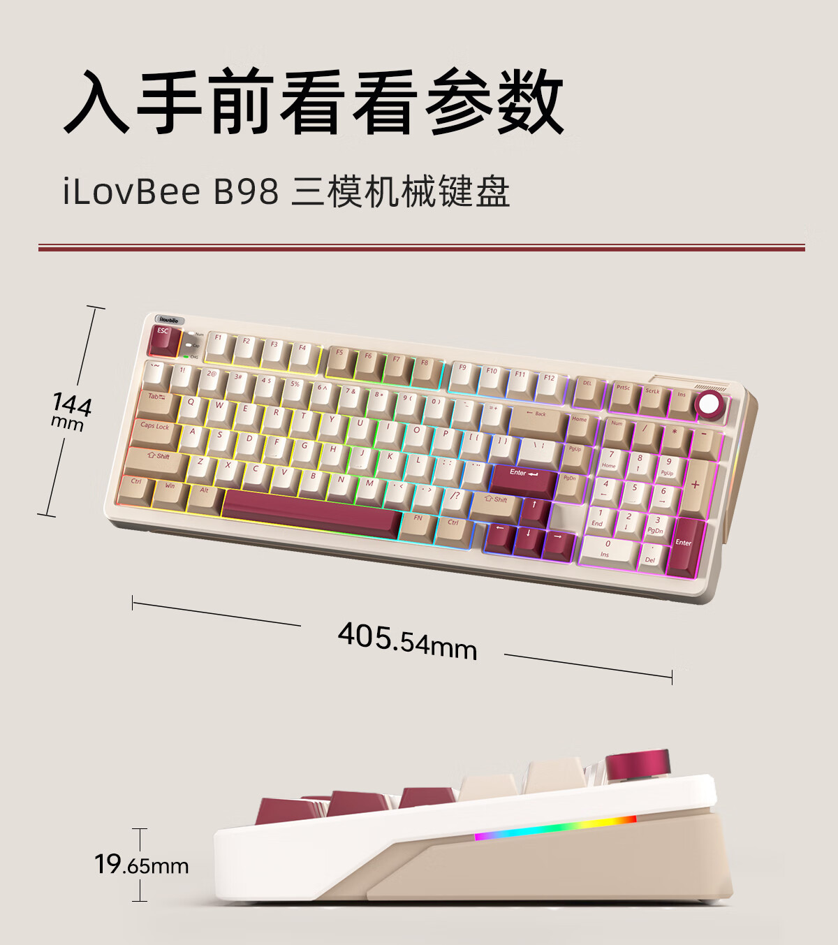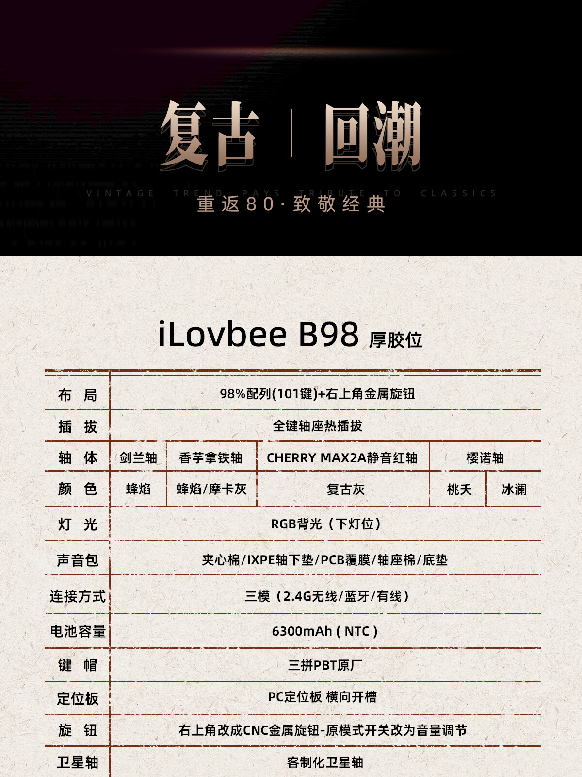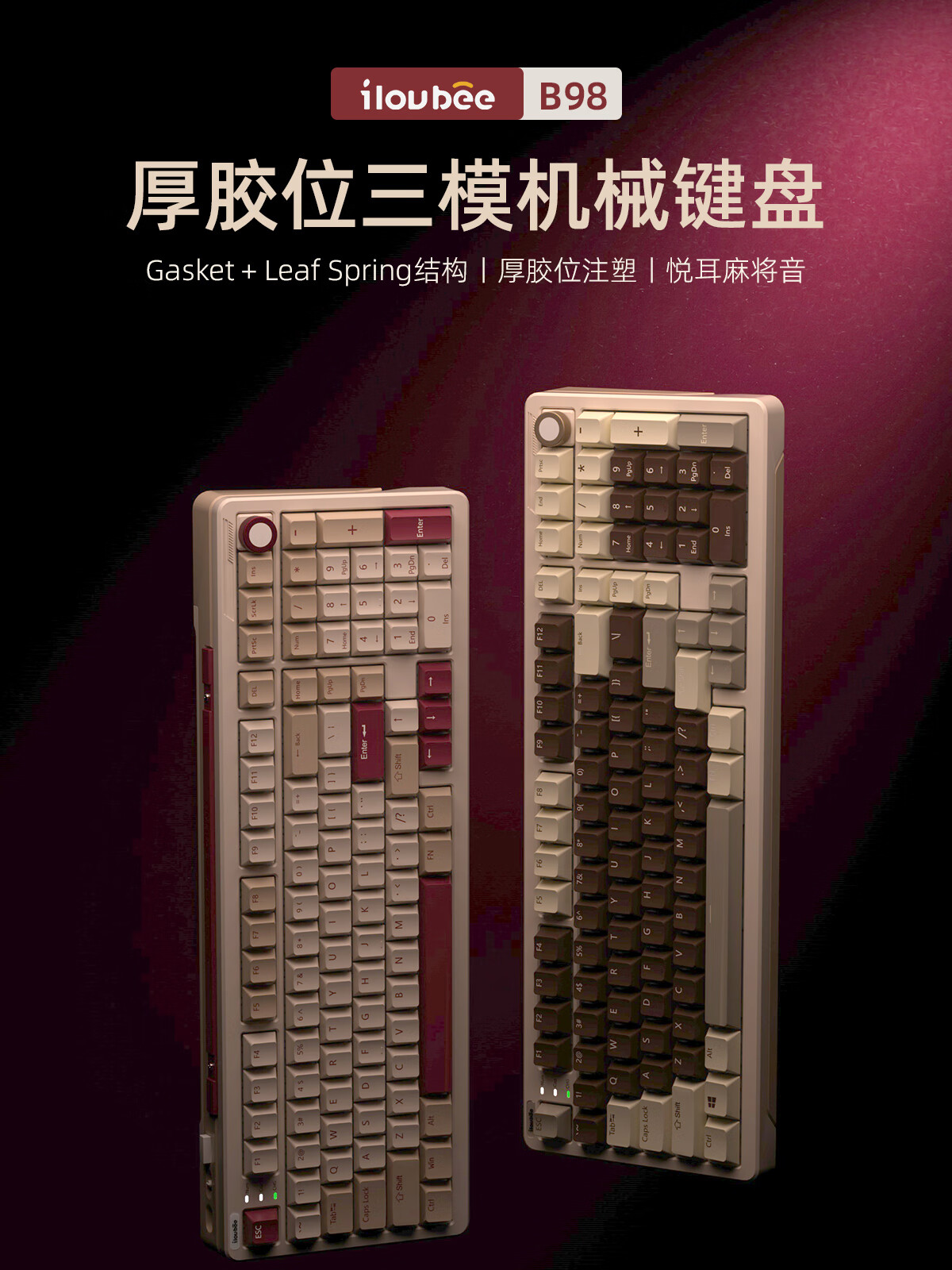ILOVBEE B98客制化机械键盘胶坨坨麻将音金属旋钮2.4G无线蓝牙有线三模游戏办公98键RGB热插拔gasket 蜂焰(剑兰轴) 三模