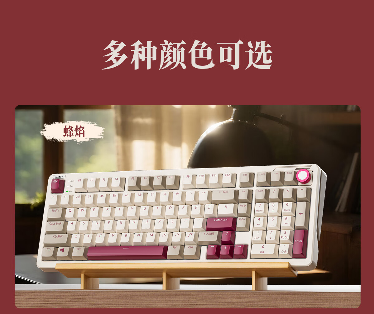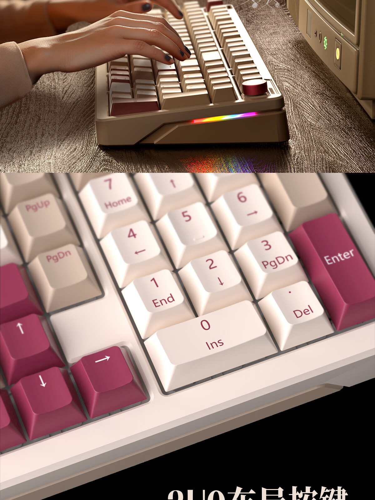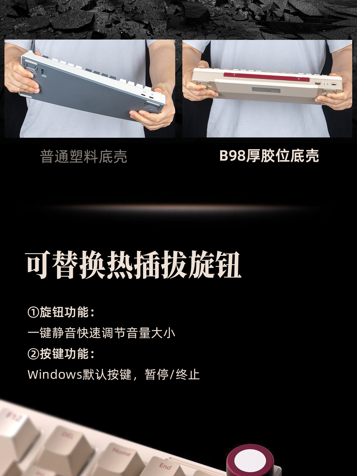 ILOVBEE B98客制化机械键盘胶坨坨麻将音金属旋钮2.4G无线蓝牙有线三模游戏办公98键RGB热插拔gasket 蜂焰(剑兰轴) 三模