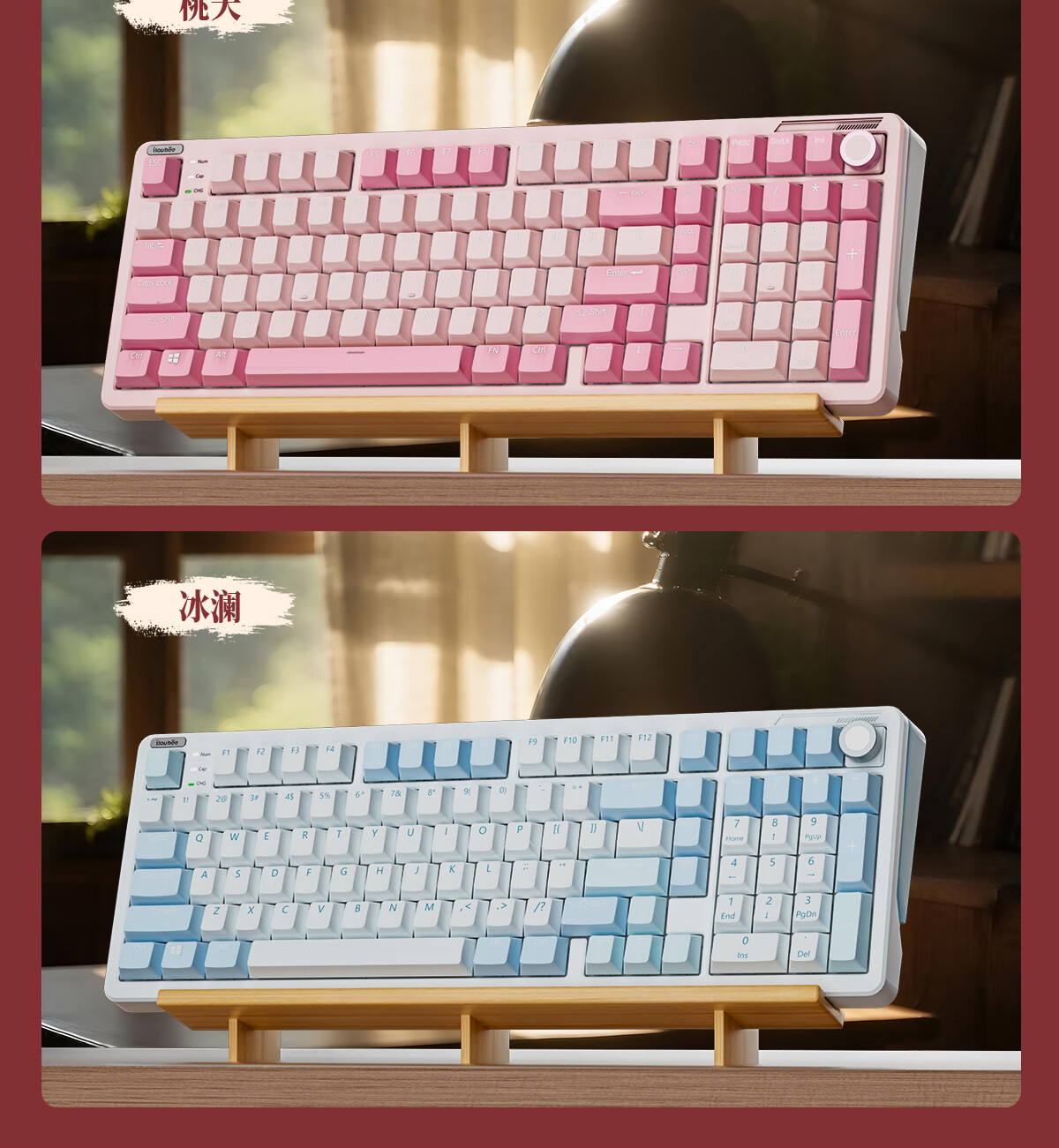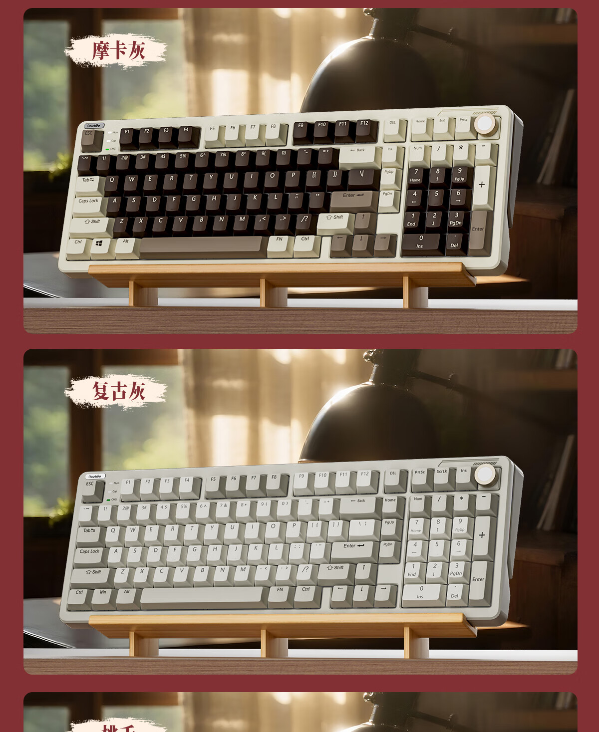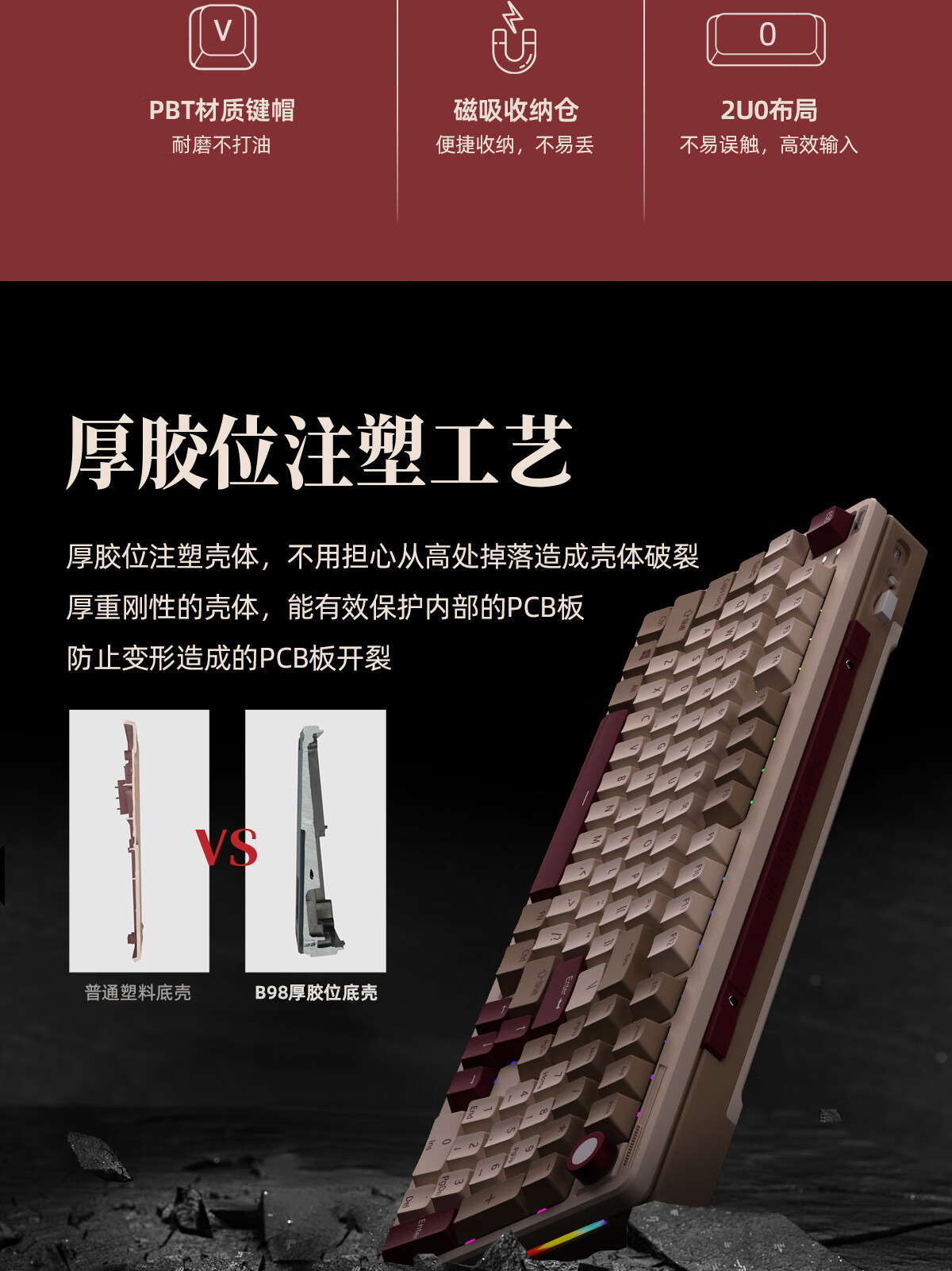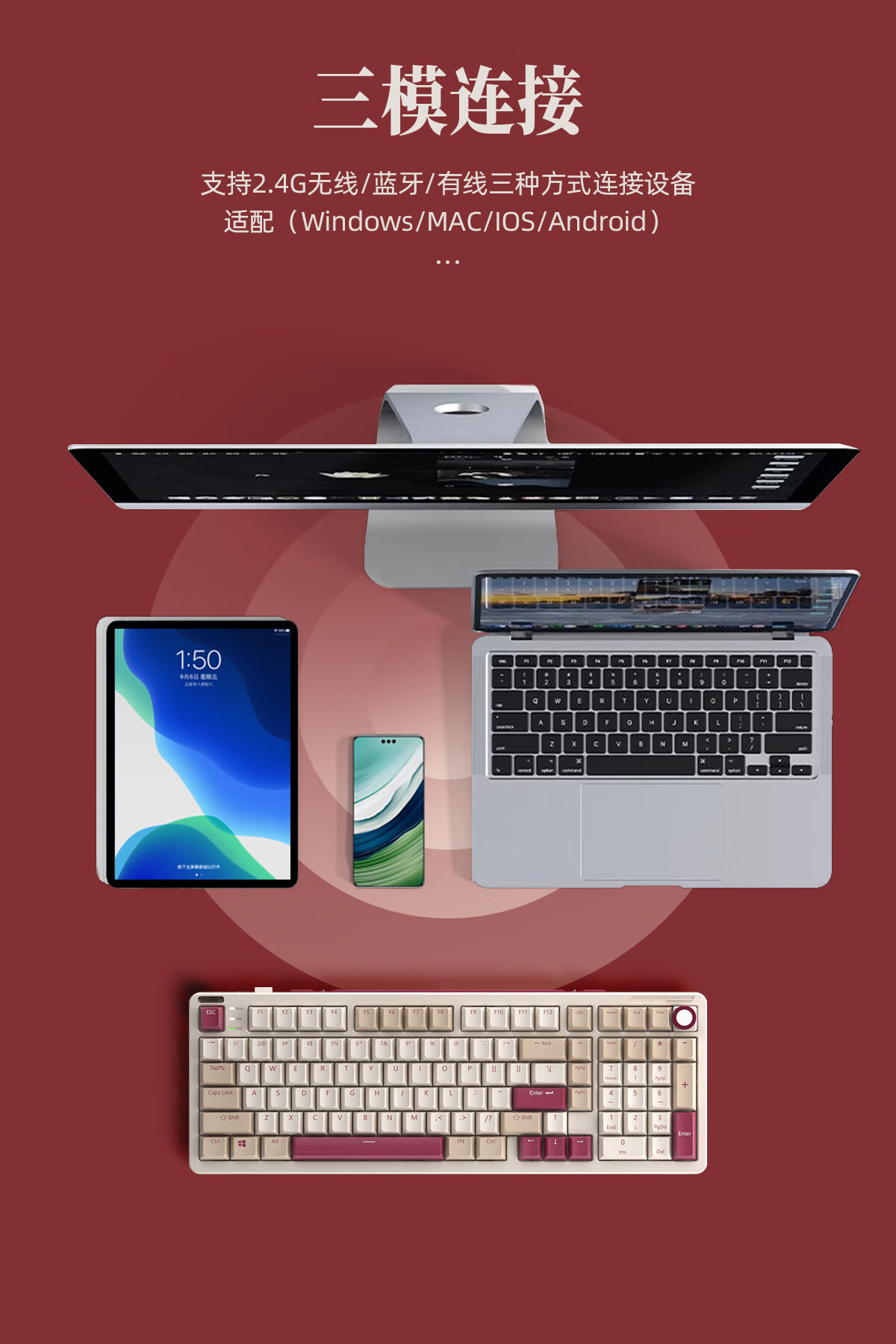 ILOVBEE B98客制化机械键盘胶坨坨麻将音金属旋钮2.4G无线蓝牙有线三模游戏办公98键RGB热插拔gasket 蜂焰(剑兰轴) 三模