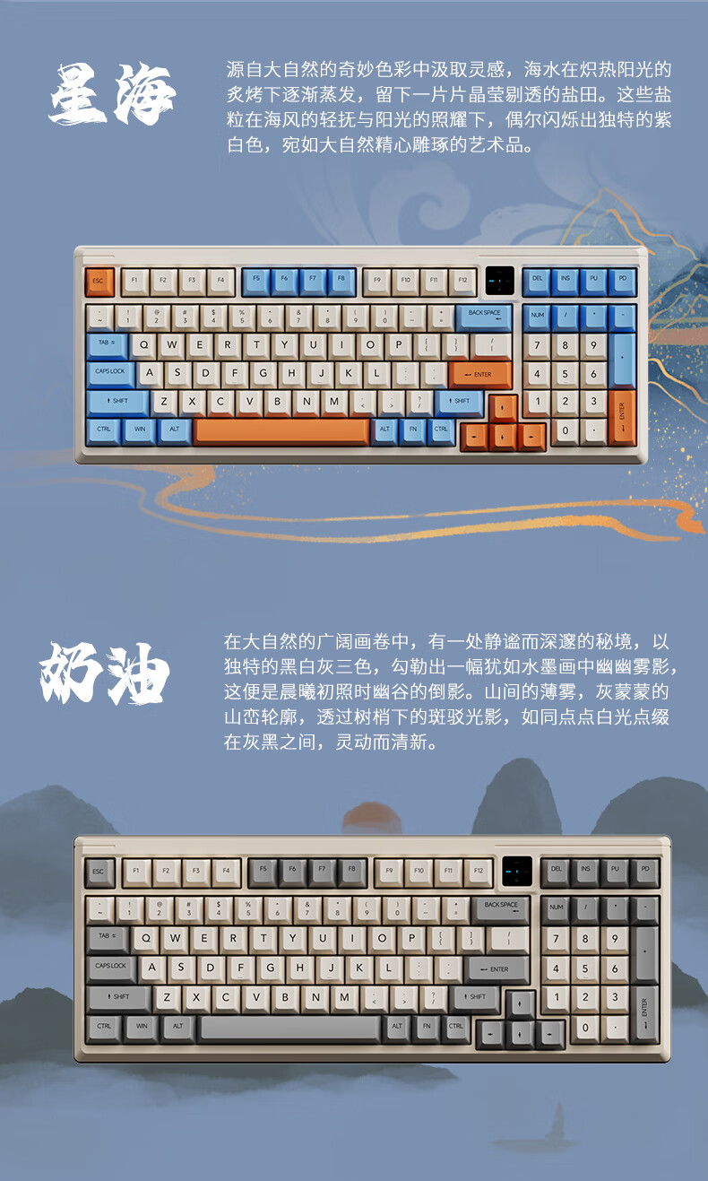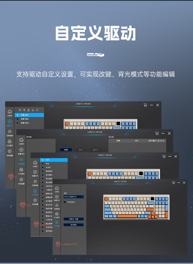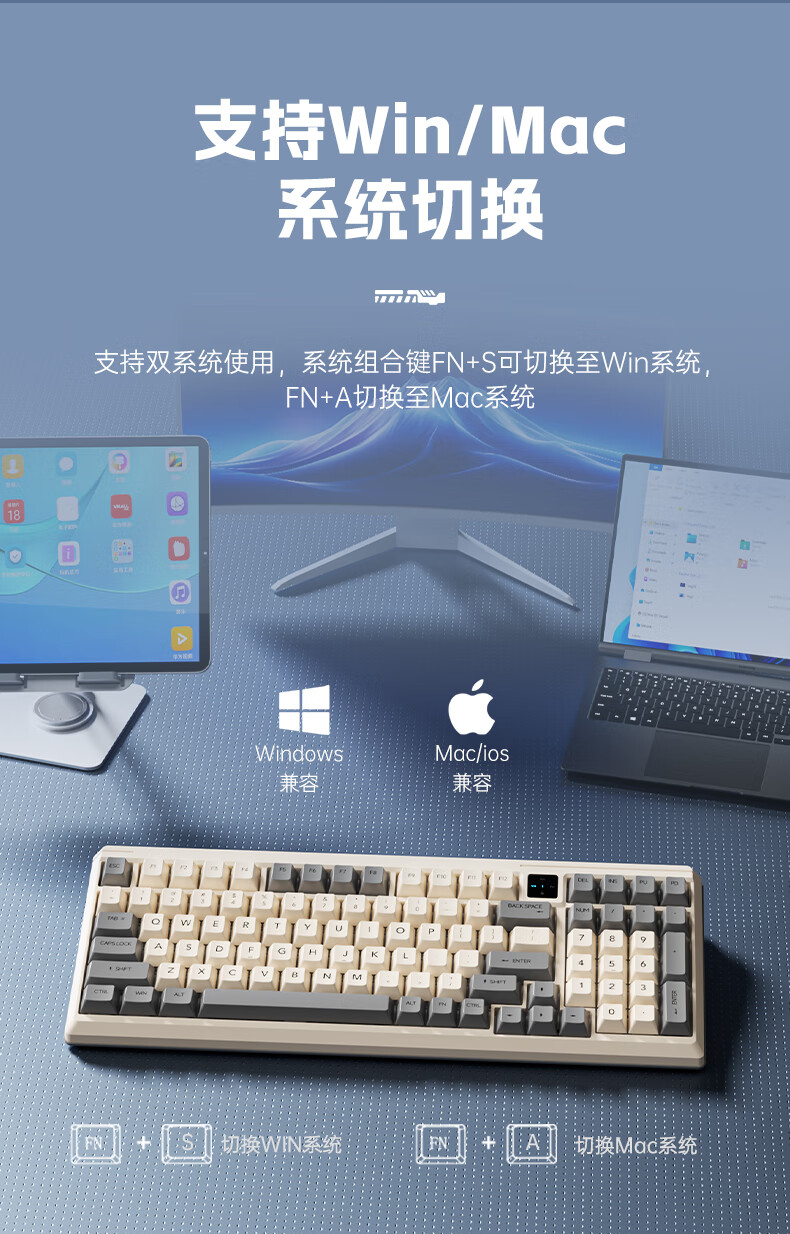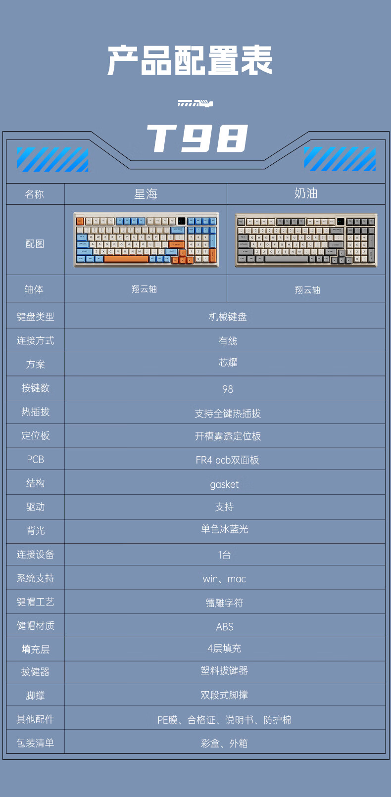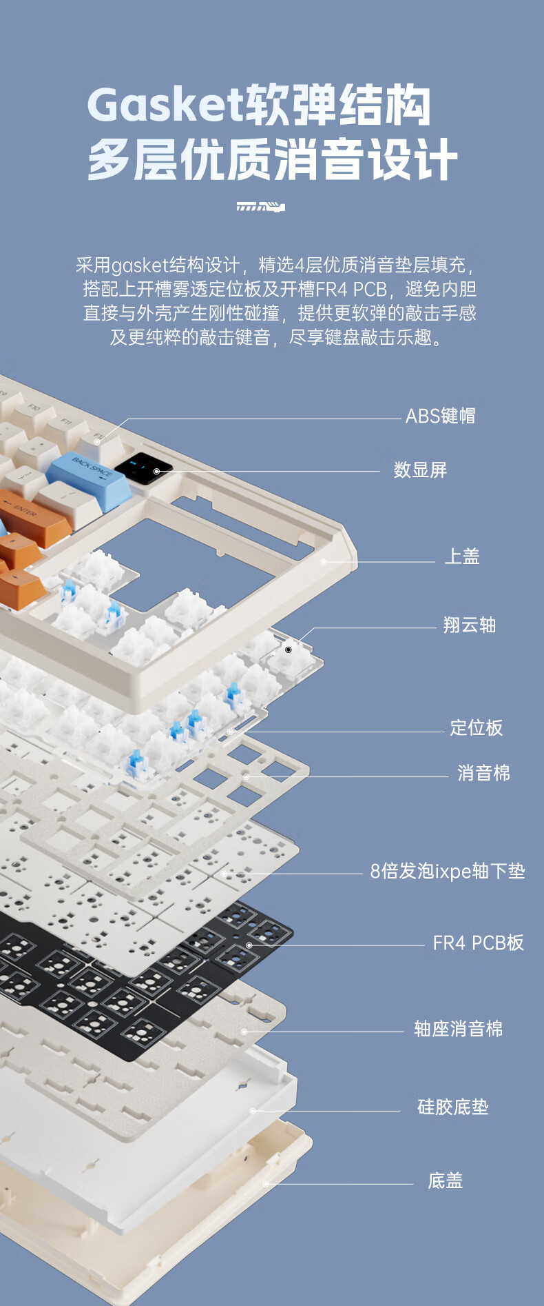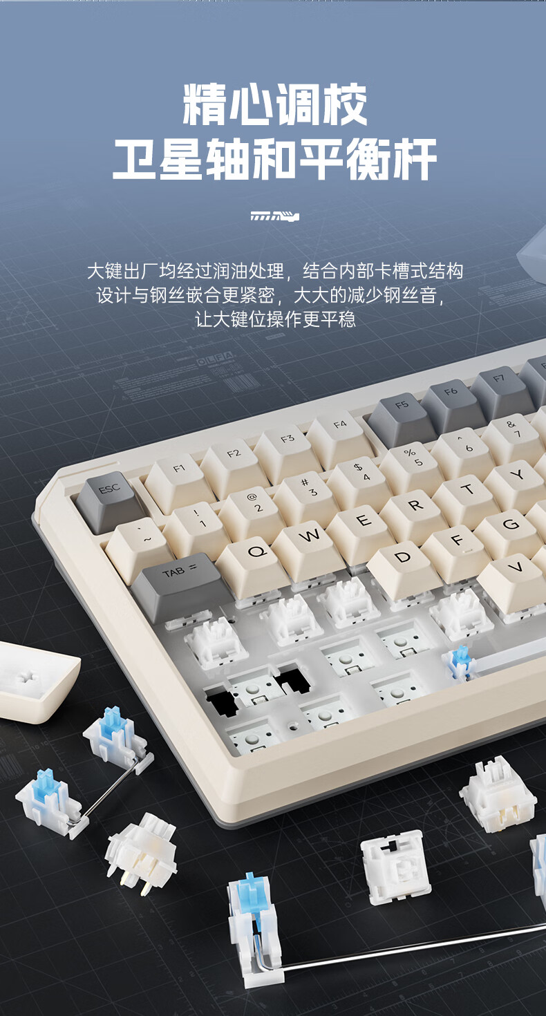 狼途T98有线机械键盘客制化全键热插拔Gasket结构三模无线蓝牙2.4G电竞游戏办公码字键盘98键配列 【有线】墨影+金轴