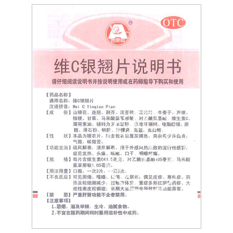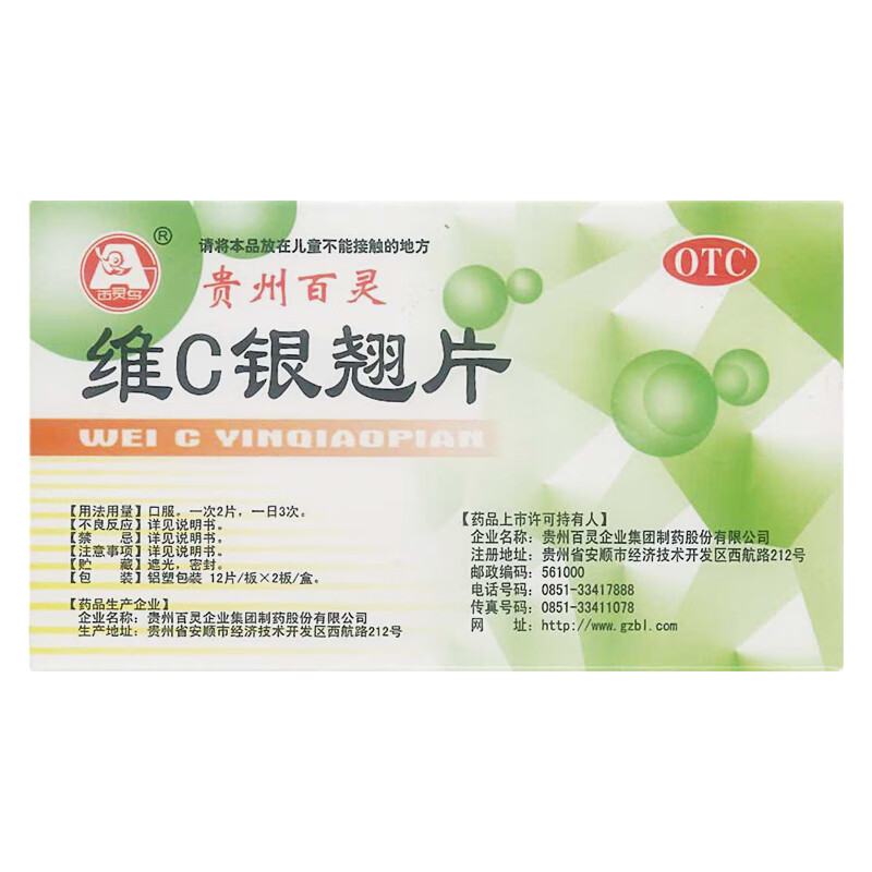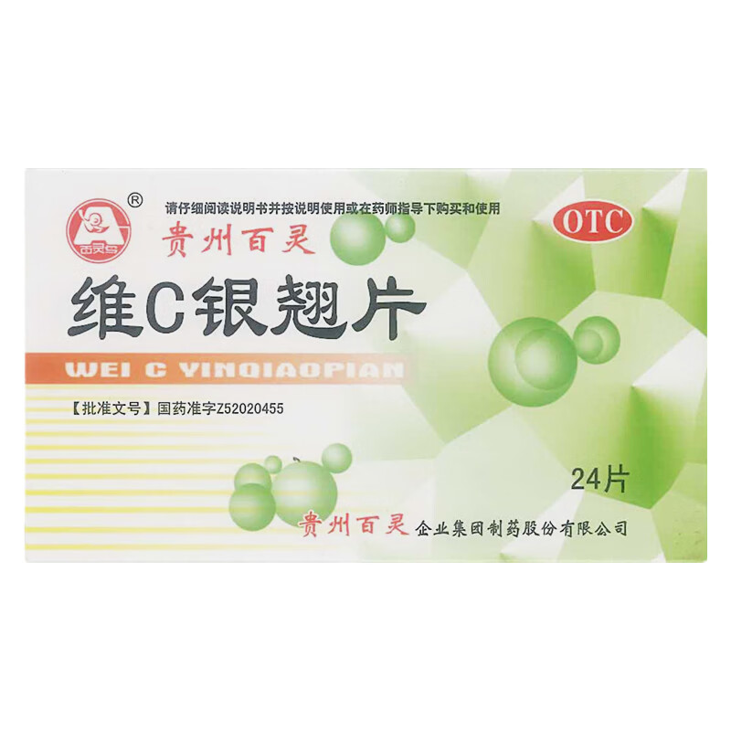百灵鸟 贵州百灵 维C银翘片 24片 感冒咳嗽清热解毒外感风热流行性感冒发热头痛咽喉疼痛
