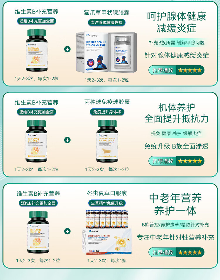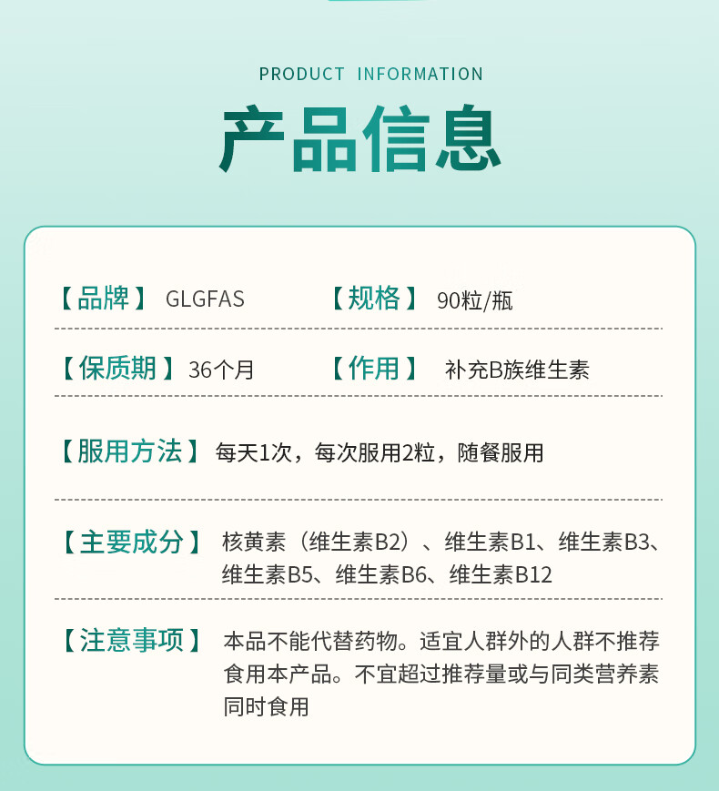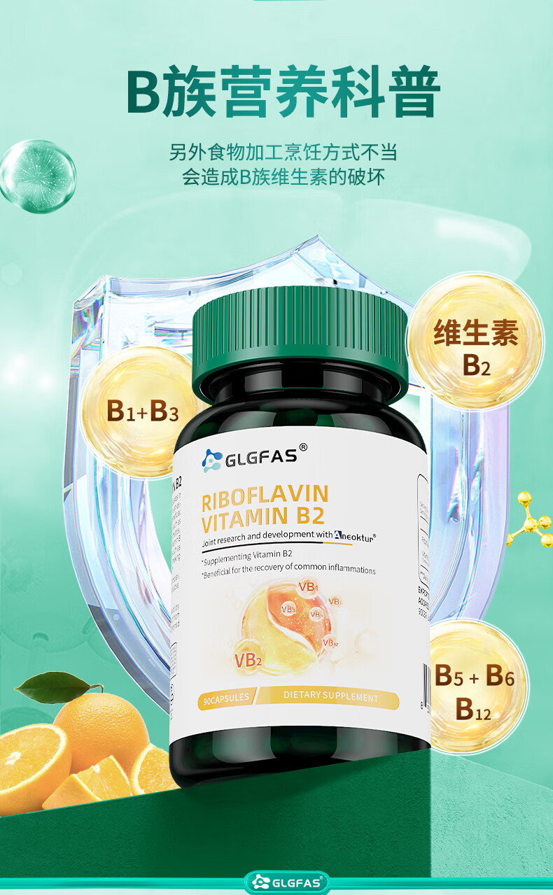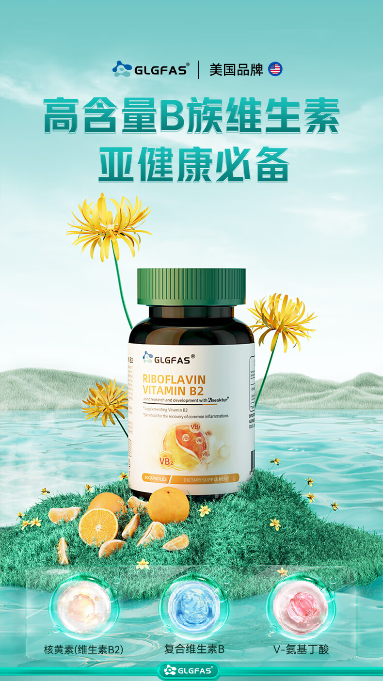 GLGFAS 美国进口高含量复合维生素B2族胶囊口腔溃熬夜疡加班促进代谢1瓶