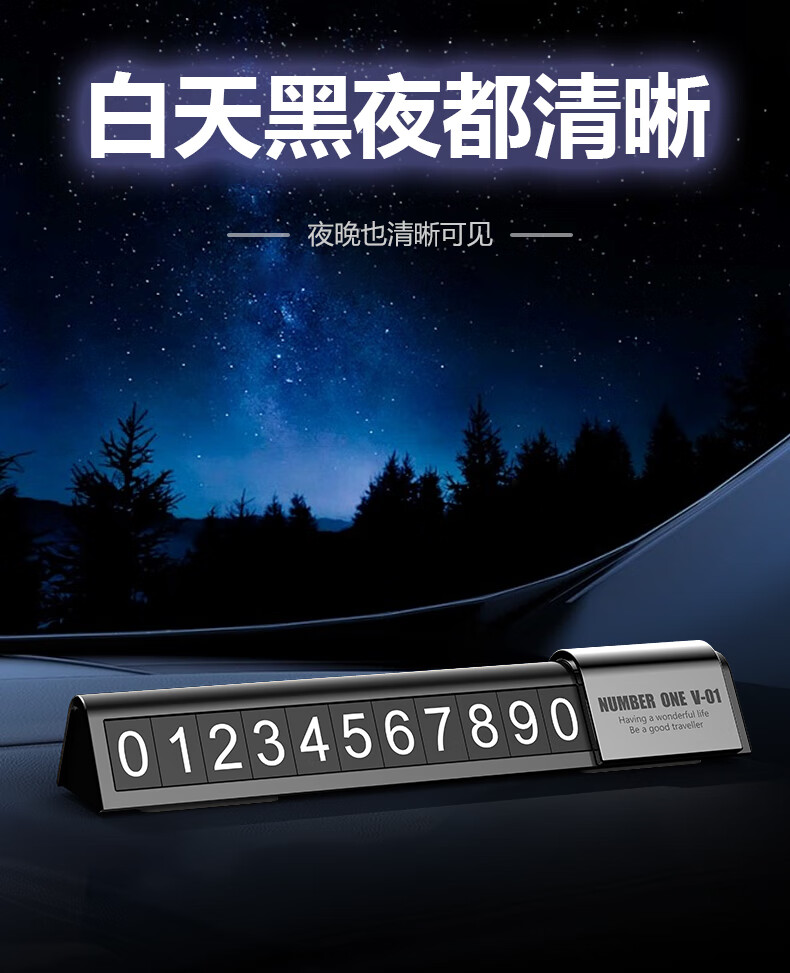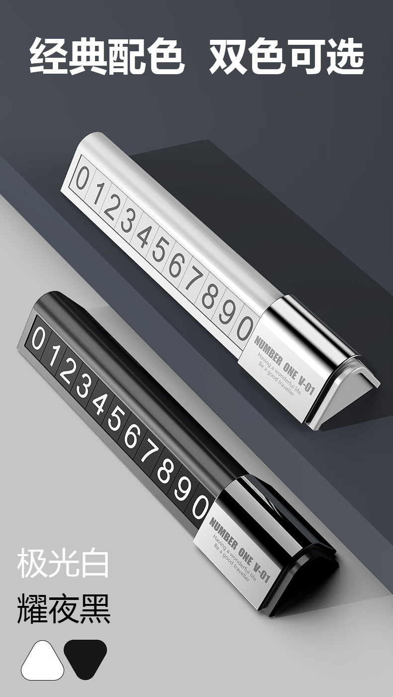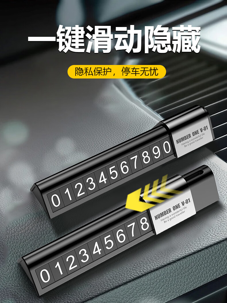 呵小乐汽车临时停车牌挪车手机电话号码牌移车牌隐藏式简约V01新版黑色