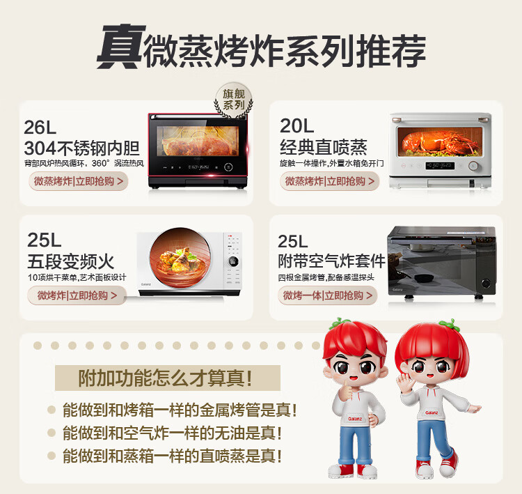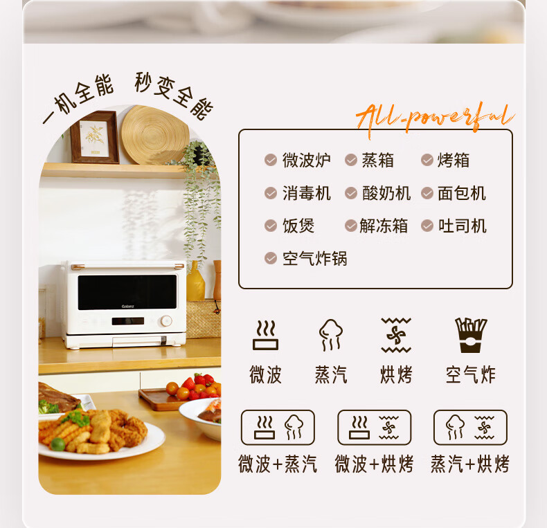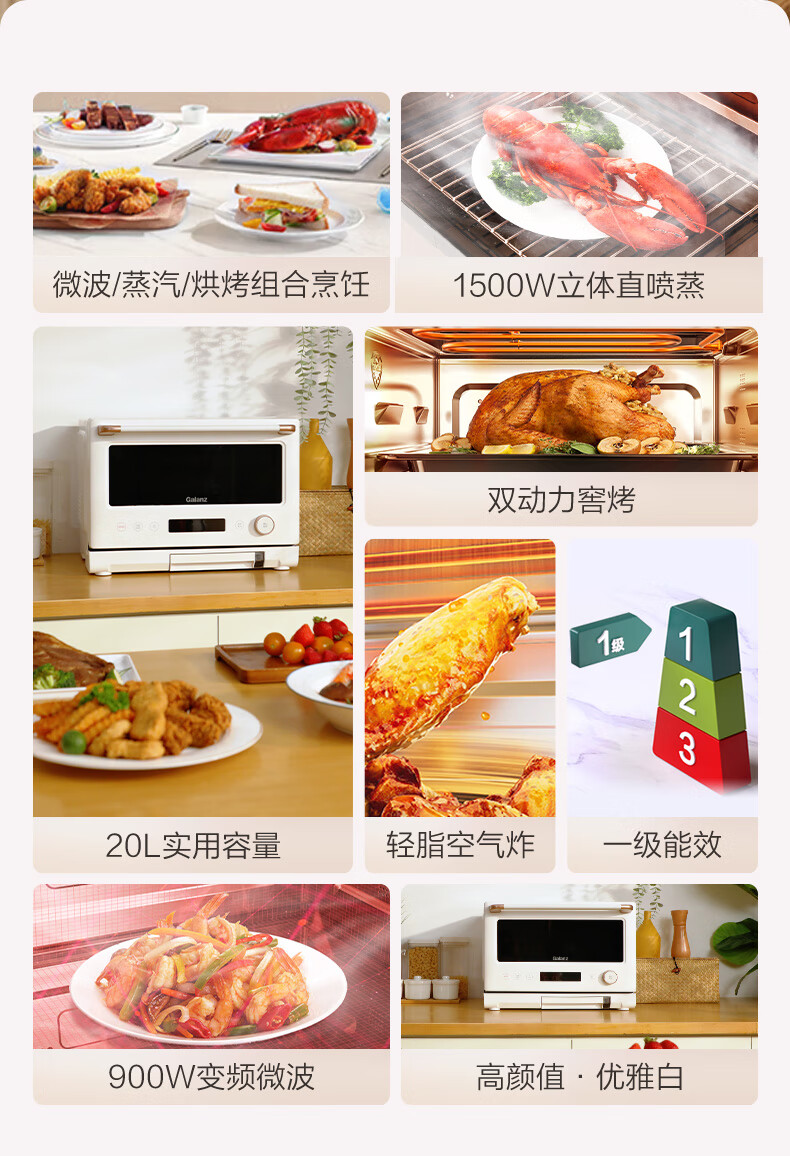 格兰仕(Galanz)微蒸烤炸四合一20L微波炉一级能效家用烤箱微蒸烤三合一RW(W0)白宝箱系列