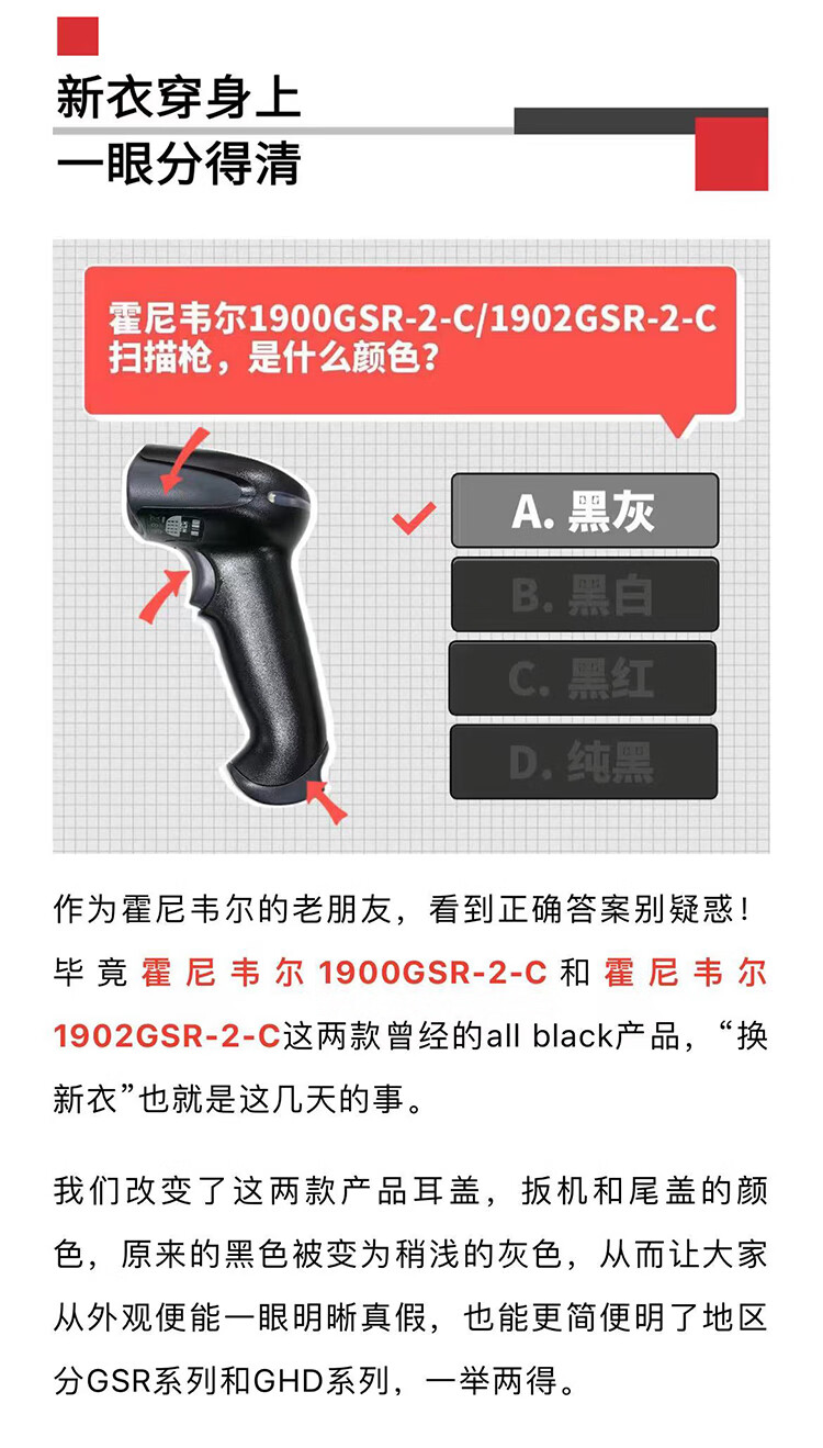 霍尼韦尔(Honeywell)有线扫码枪 扫码枪 条形码 二维码工业扫描枪 商超仓储物流条码扫描器扫描枪1900GHD