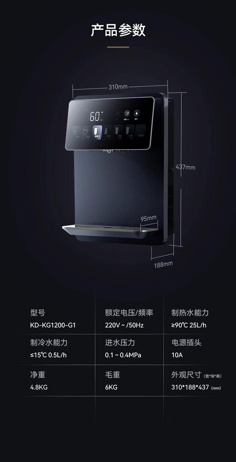 凯度(CASDON)管线机壁挂式冰泉G1Pro家用直饮机餐边柜制冷制热一体饮水机政府补贴