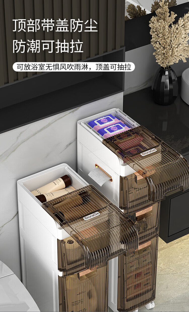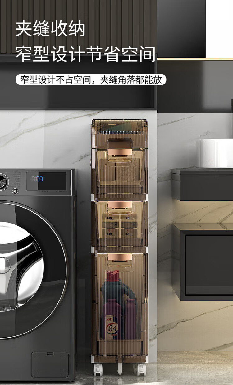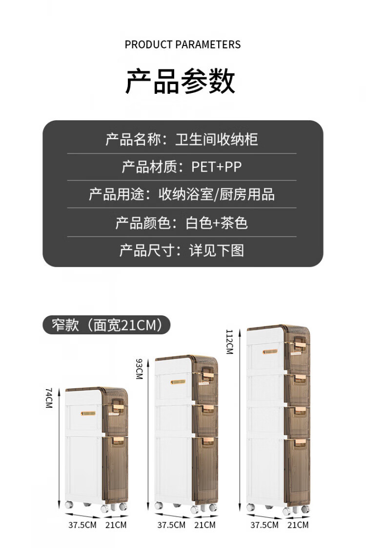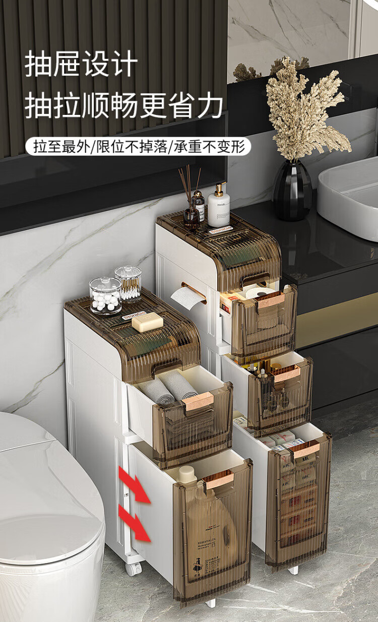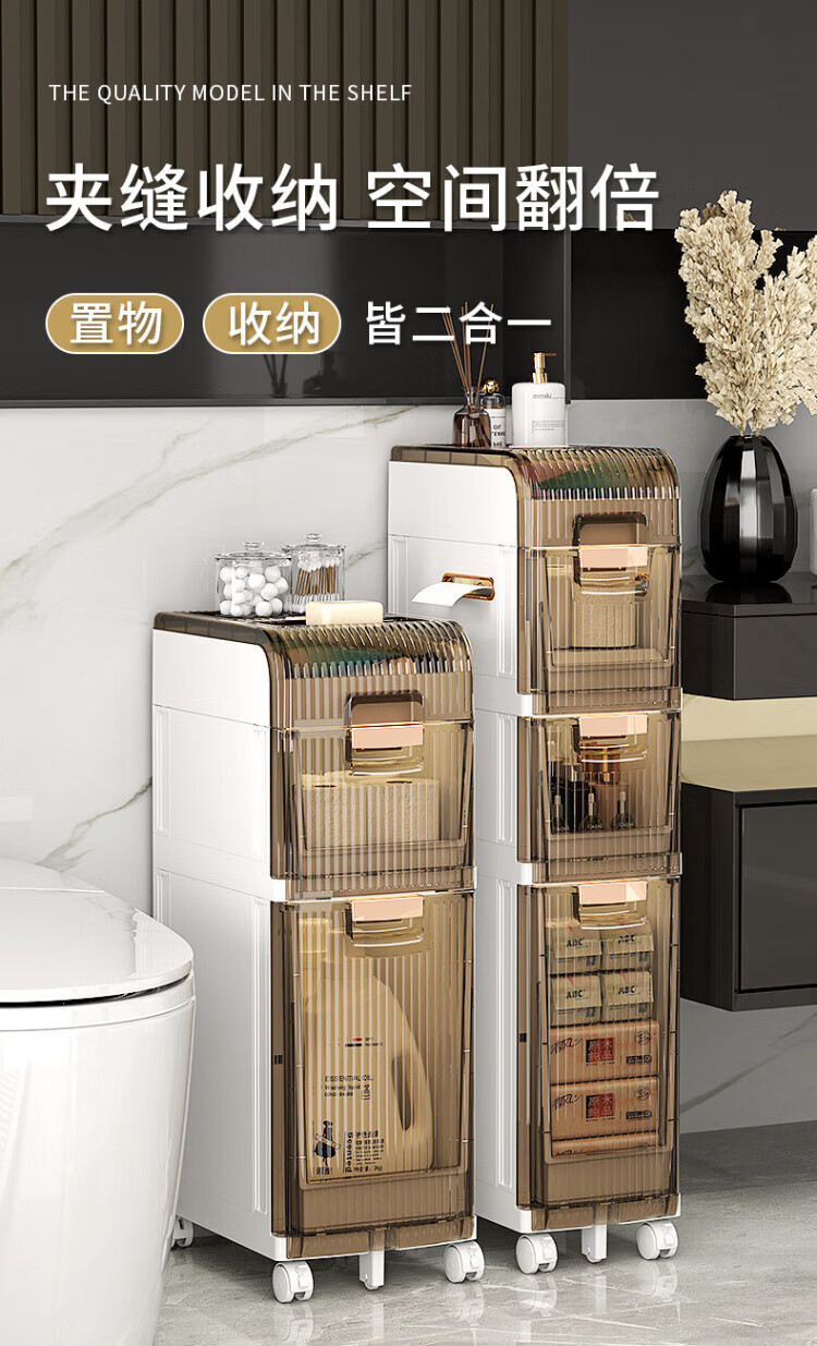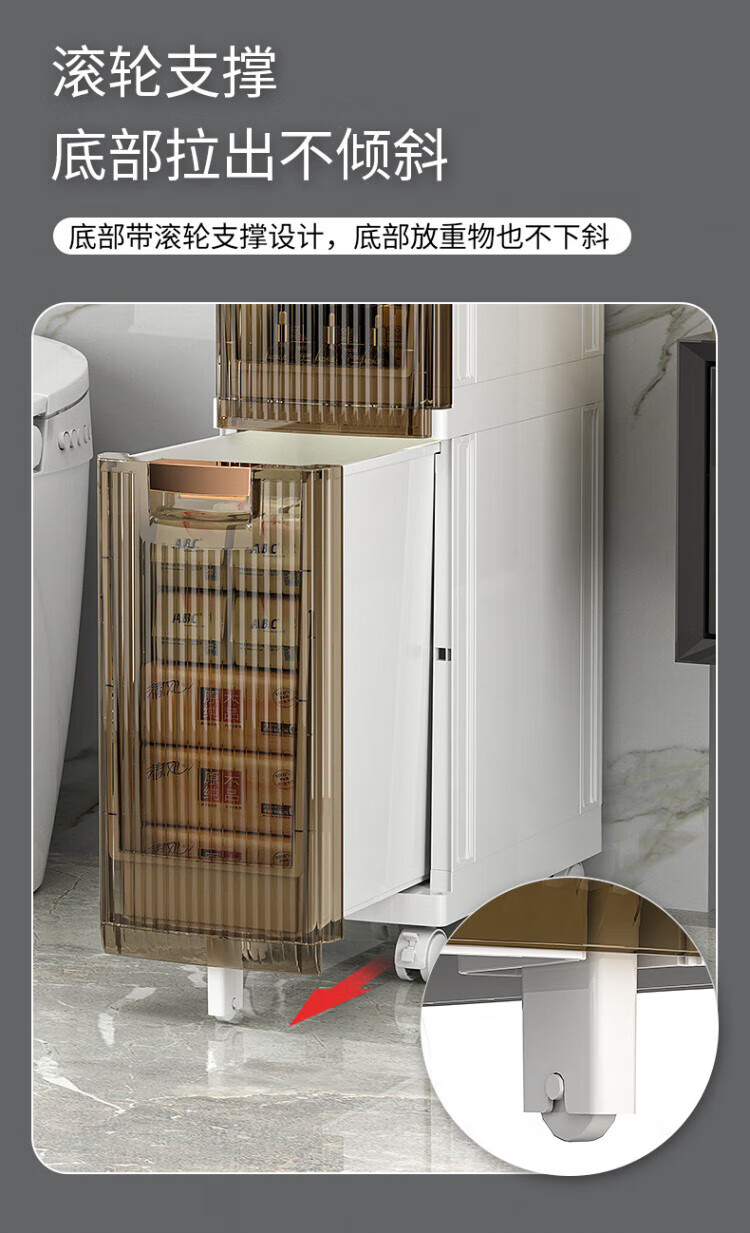 WCZ德国卫生间置物架浴室厕所洗手间马桶夹缝储物收纳柜免打孔落地置 17cm超窄款三层/两侧出纸口