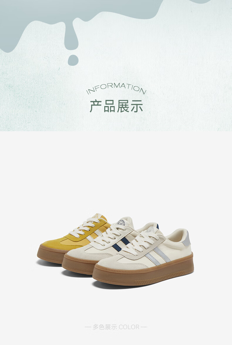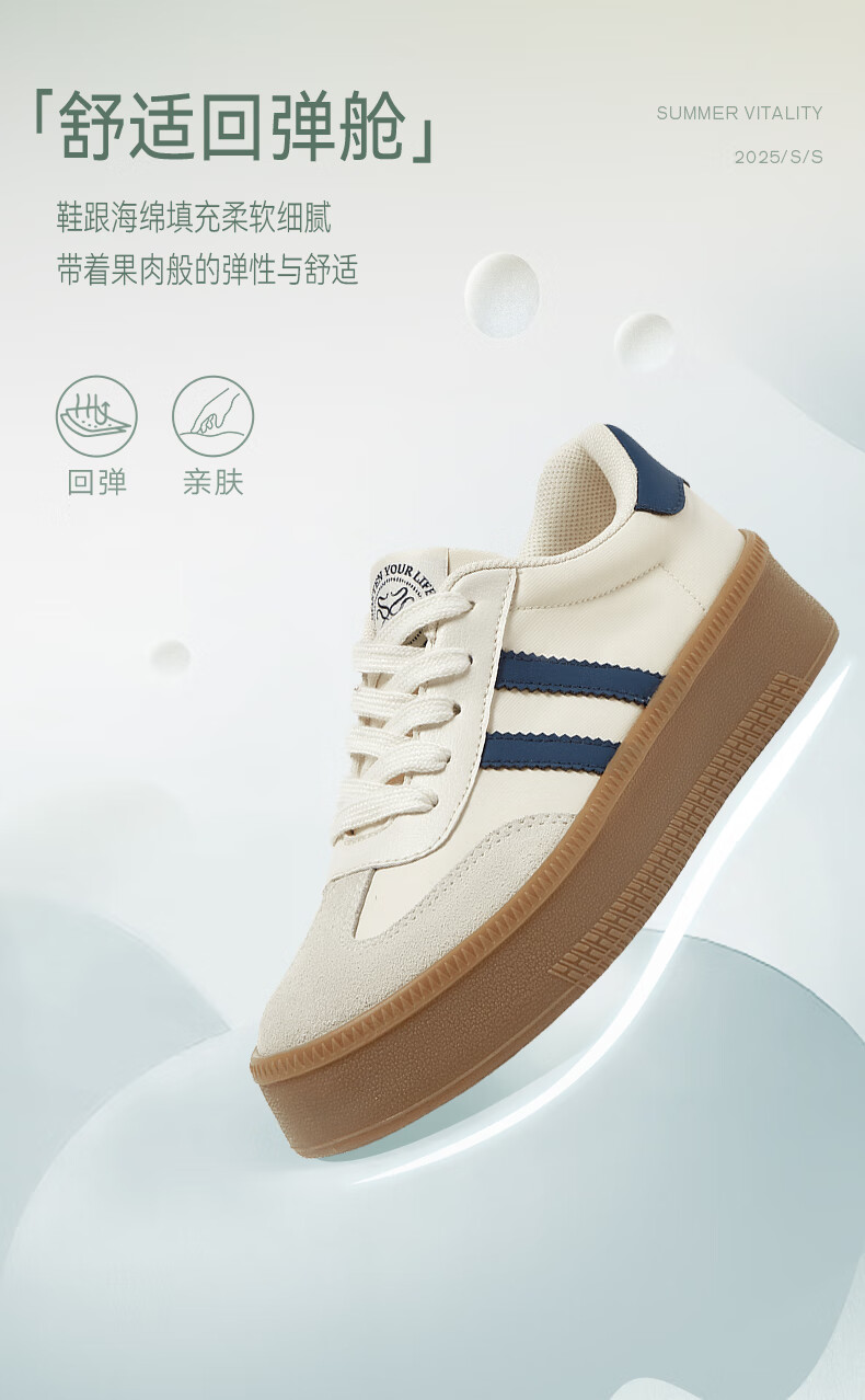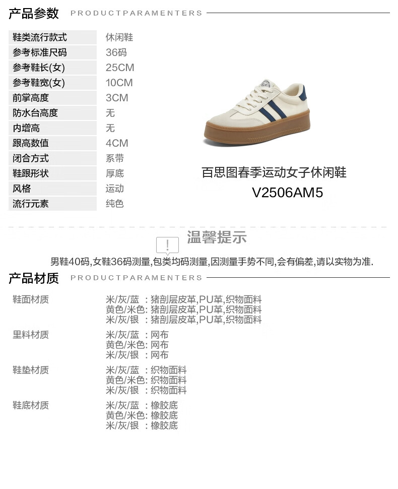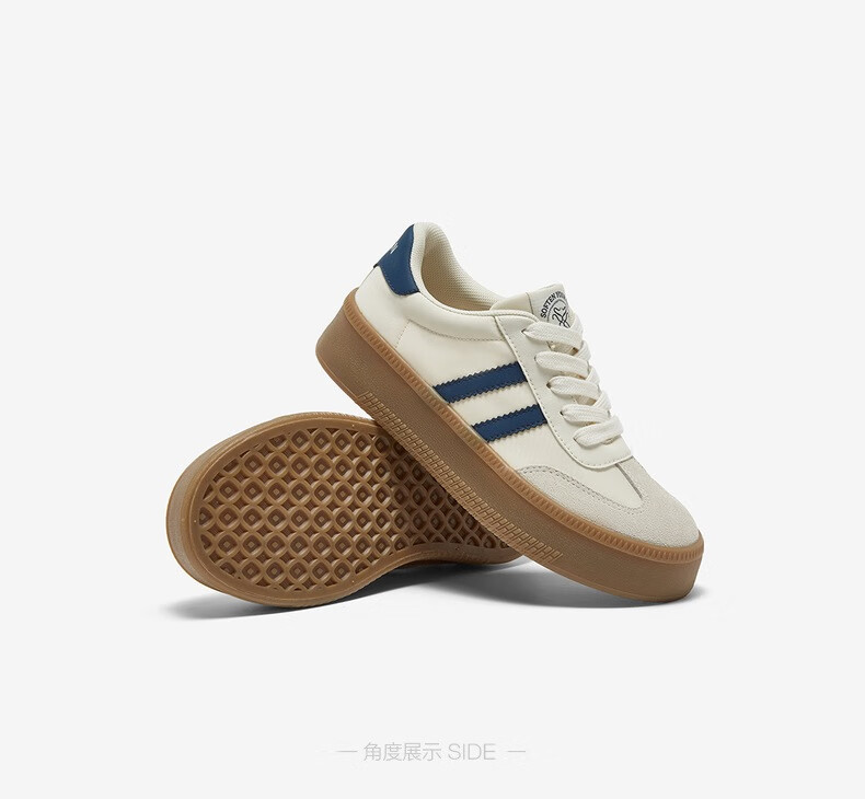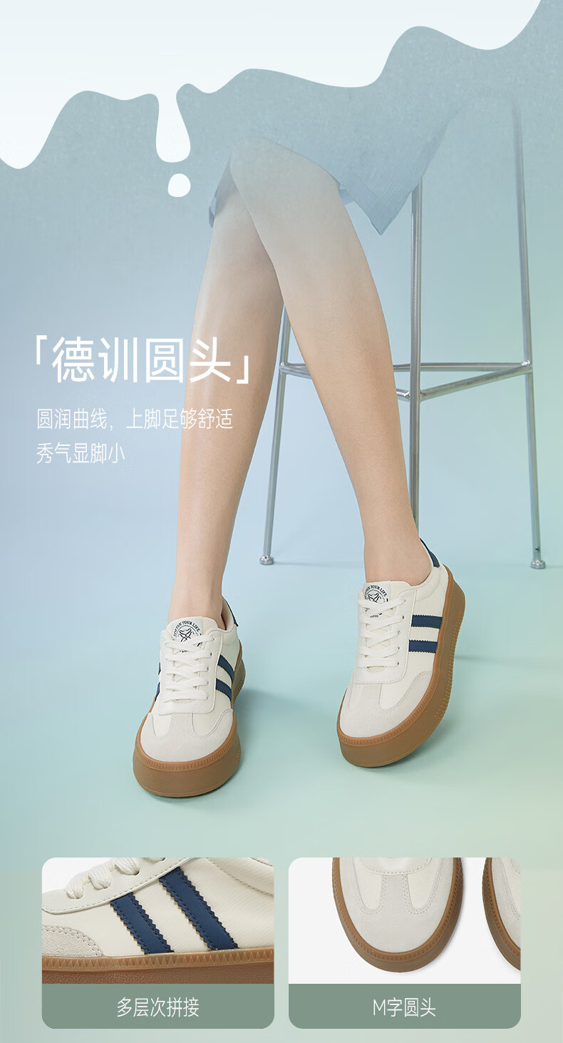 百思图25新款时尚复古户外运动德训鞋厚底女休闲鞋V2506AM5 米/灰/银 39