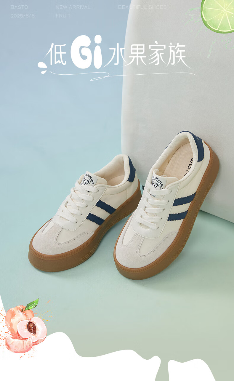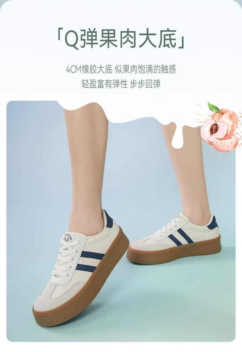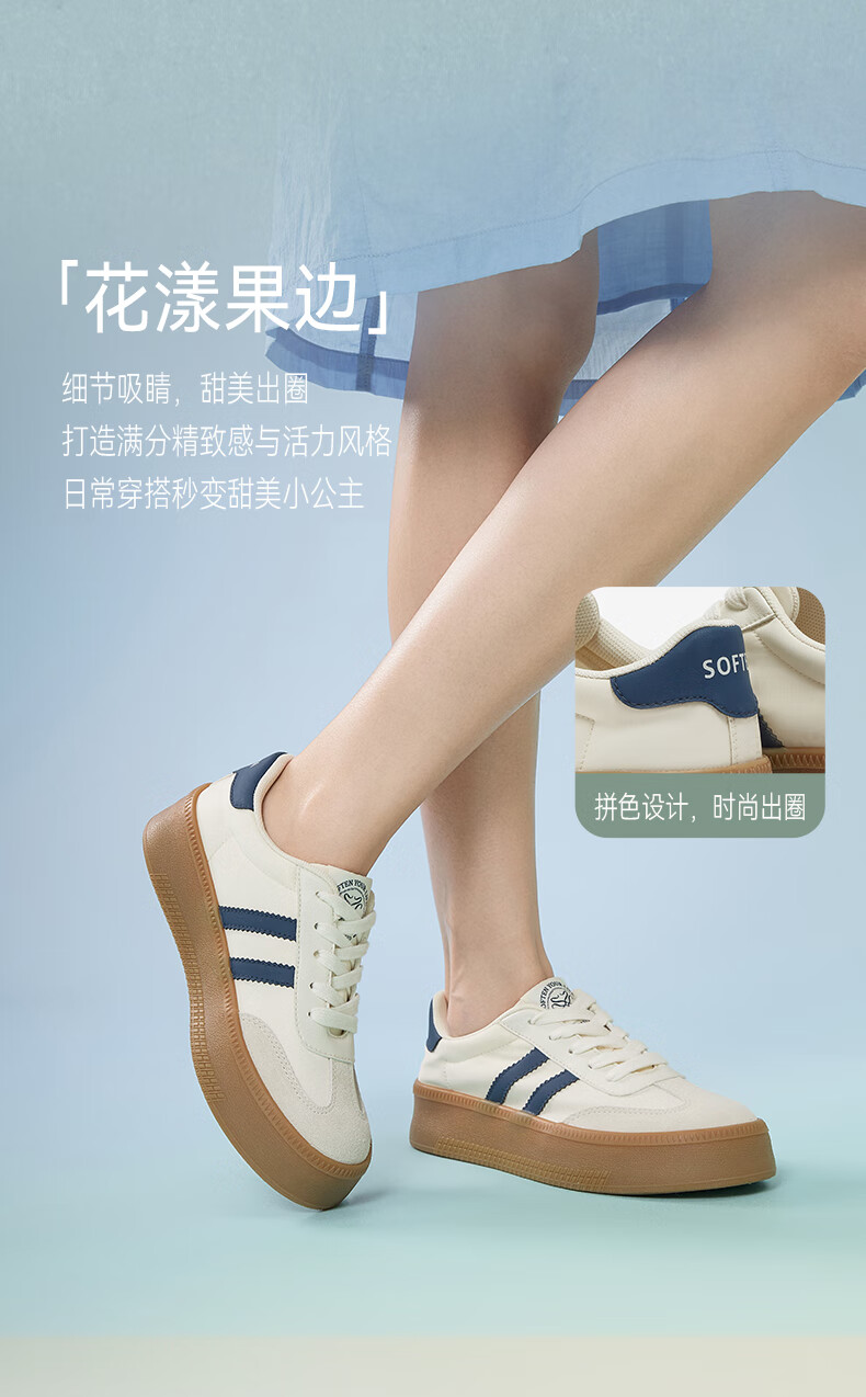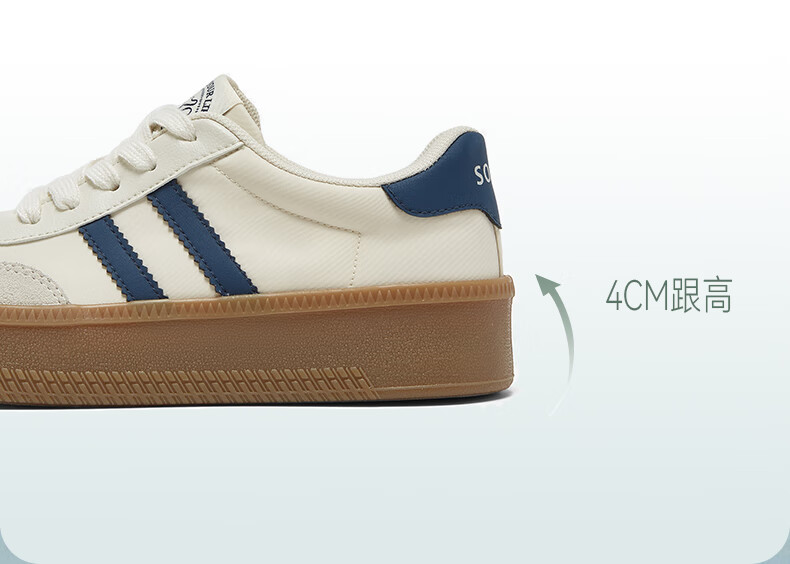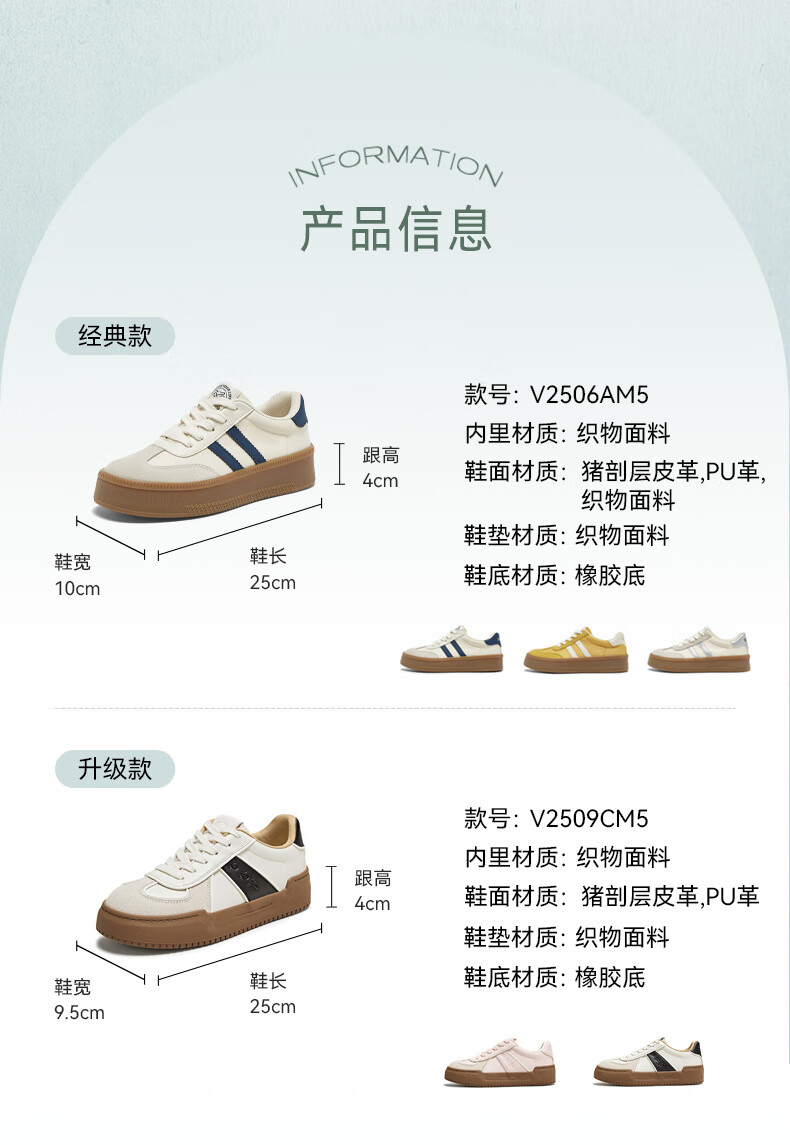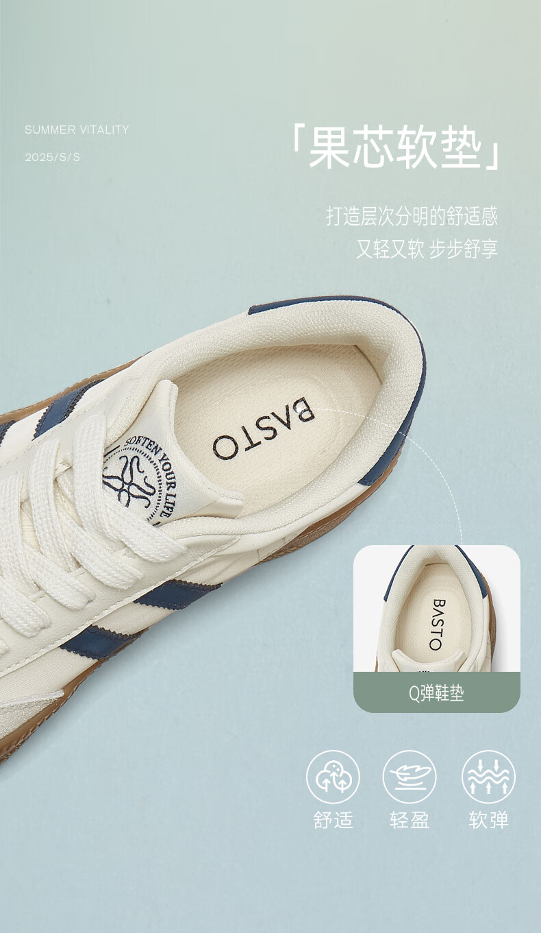 百思图25新款时尚复古户外运动德训鞋厚底女休闲鞋V2506AM5 米/灰/银 39