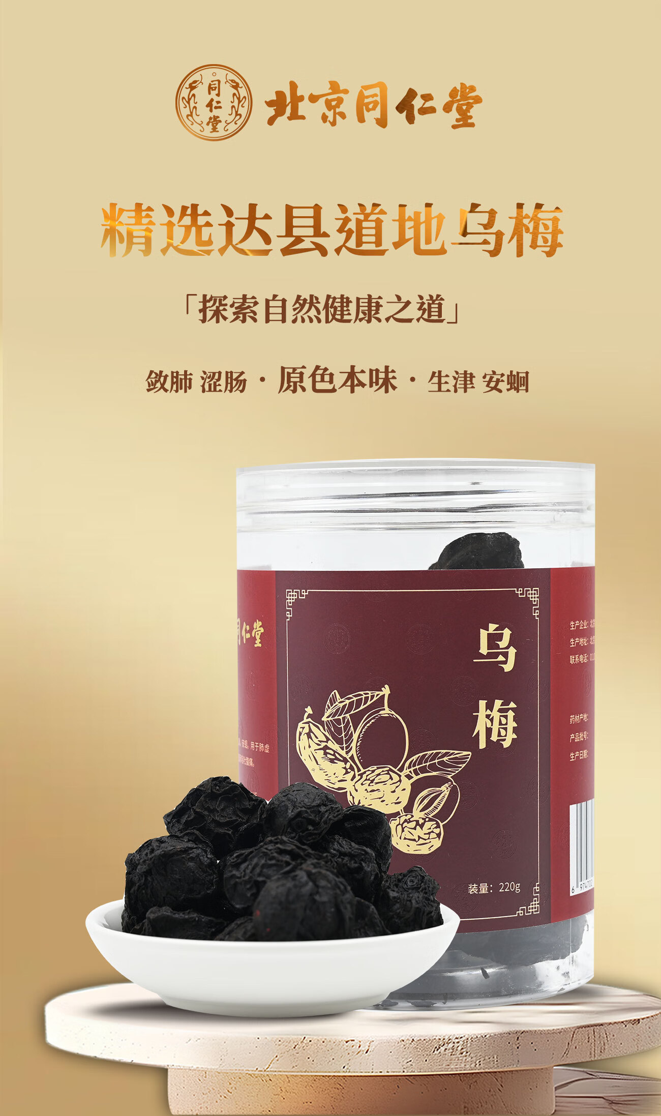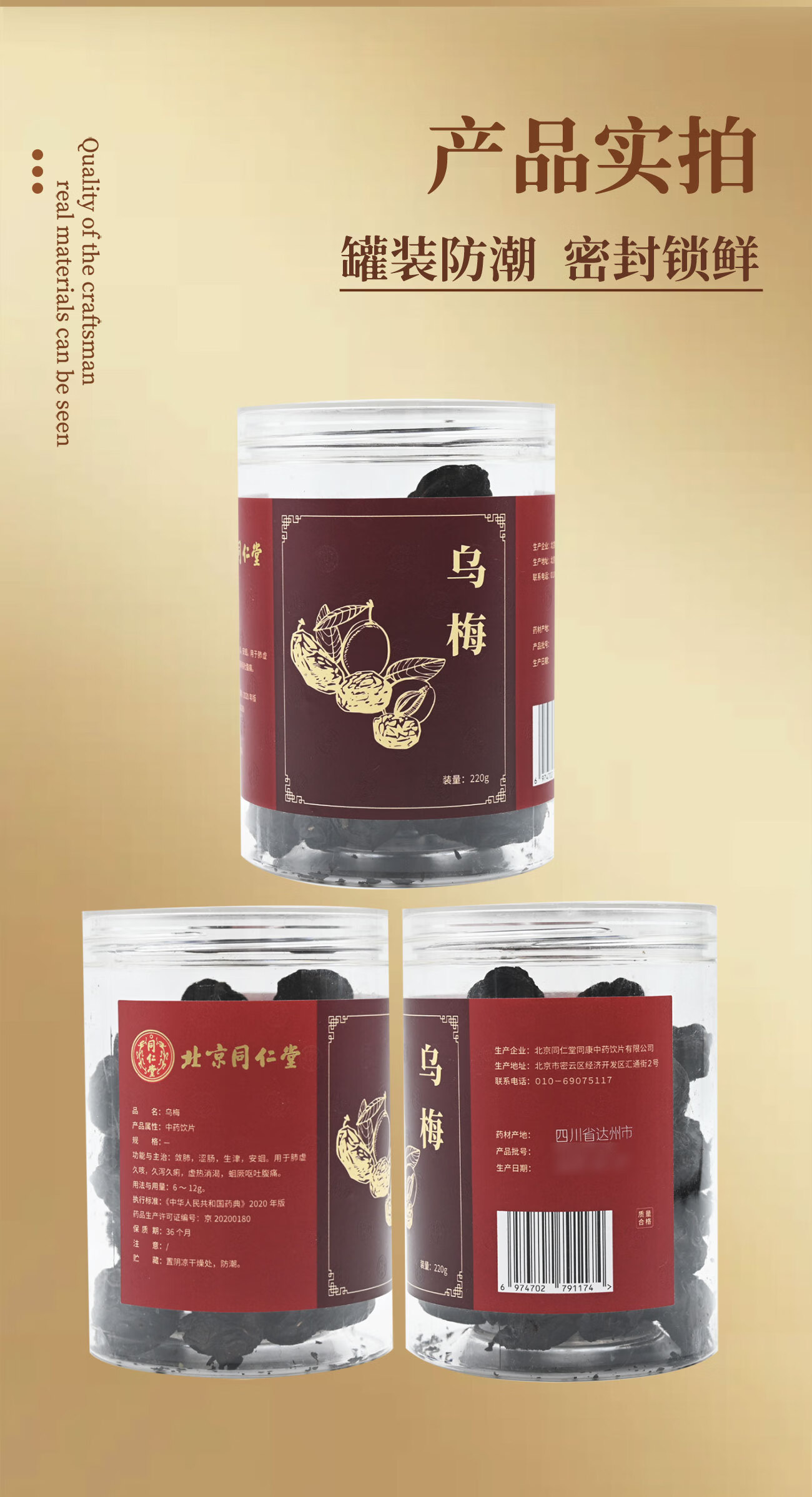 同仁堂(TRT)品牌北京同仁堂乌梅220g 乌梅干乌梅茶酸梅汤原料泡水养生茶无添加无熏硫乌梅中药材中药饮片级