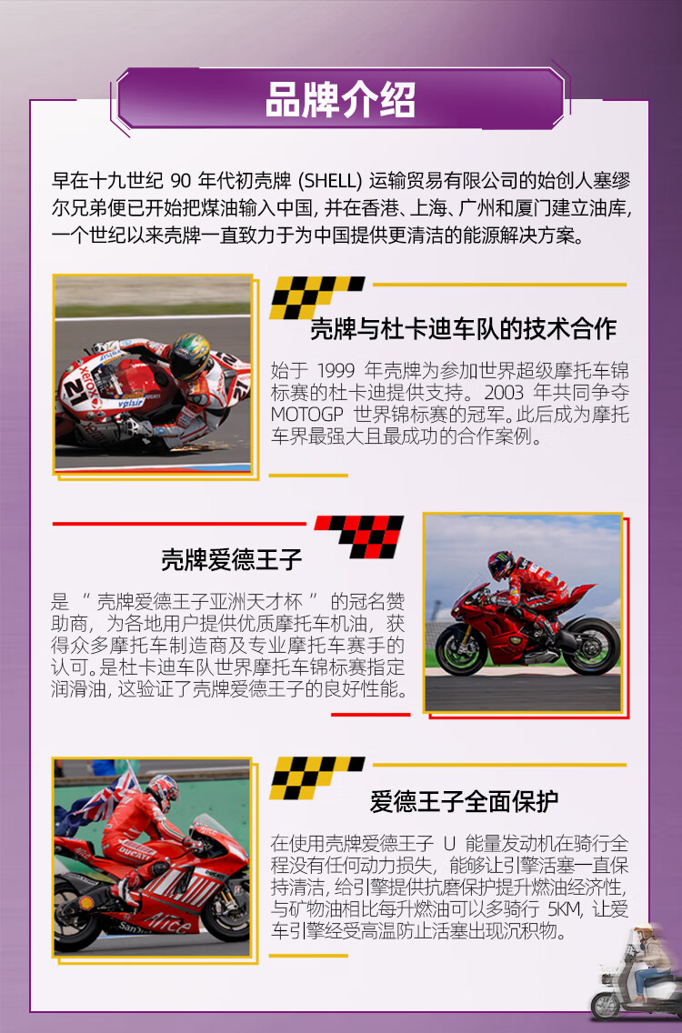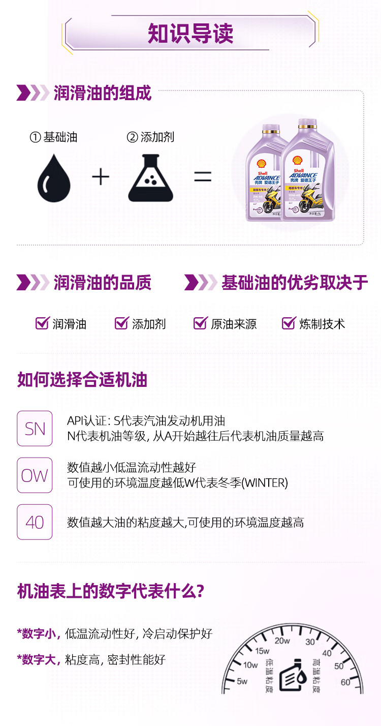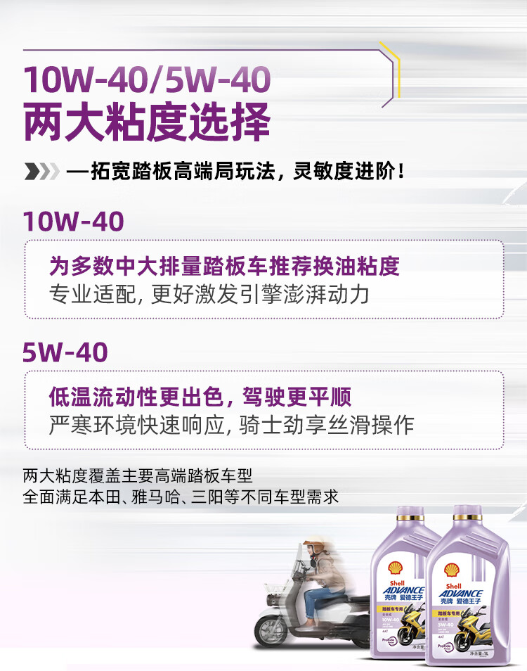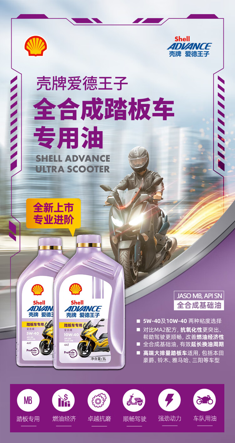爱德王子壳牌踏板摩托车机油全合成润滑油10w-40 SN级 1L 全合成踏板车油