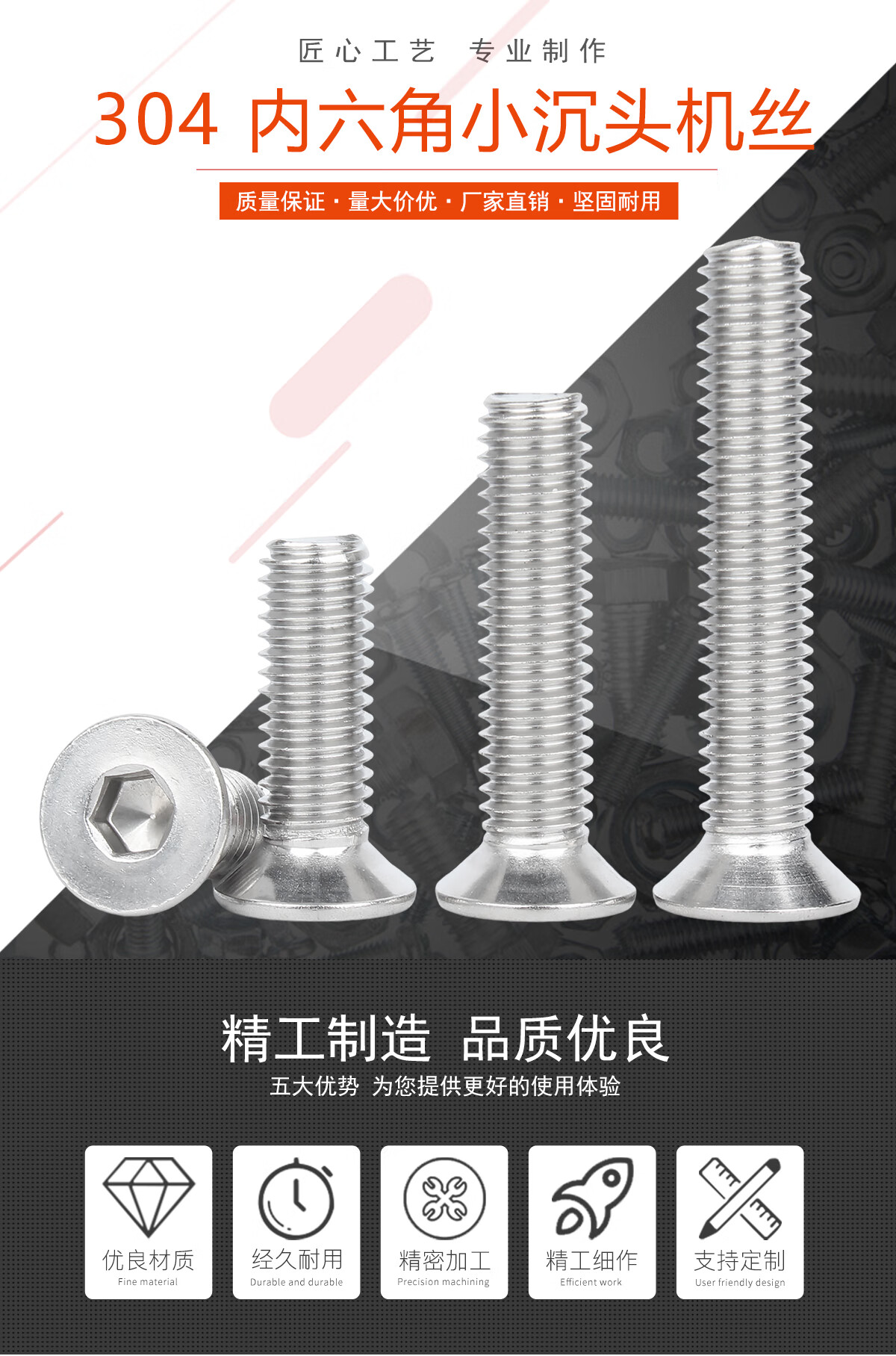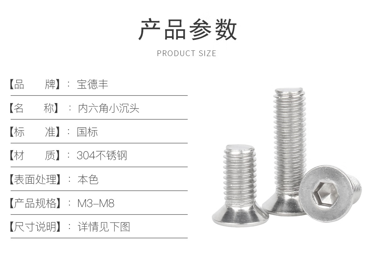 宝德丰304不锈钢小沉头内六角螺丝超薄平头螺栓小头径平杯螺钉M3M4M5M6 M3x5头径5(200只)