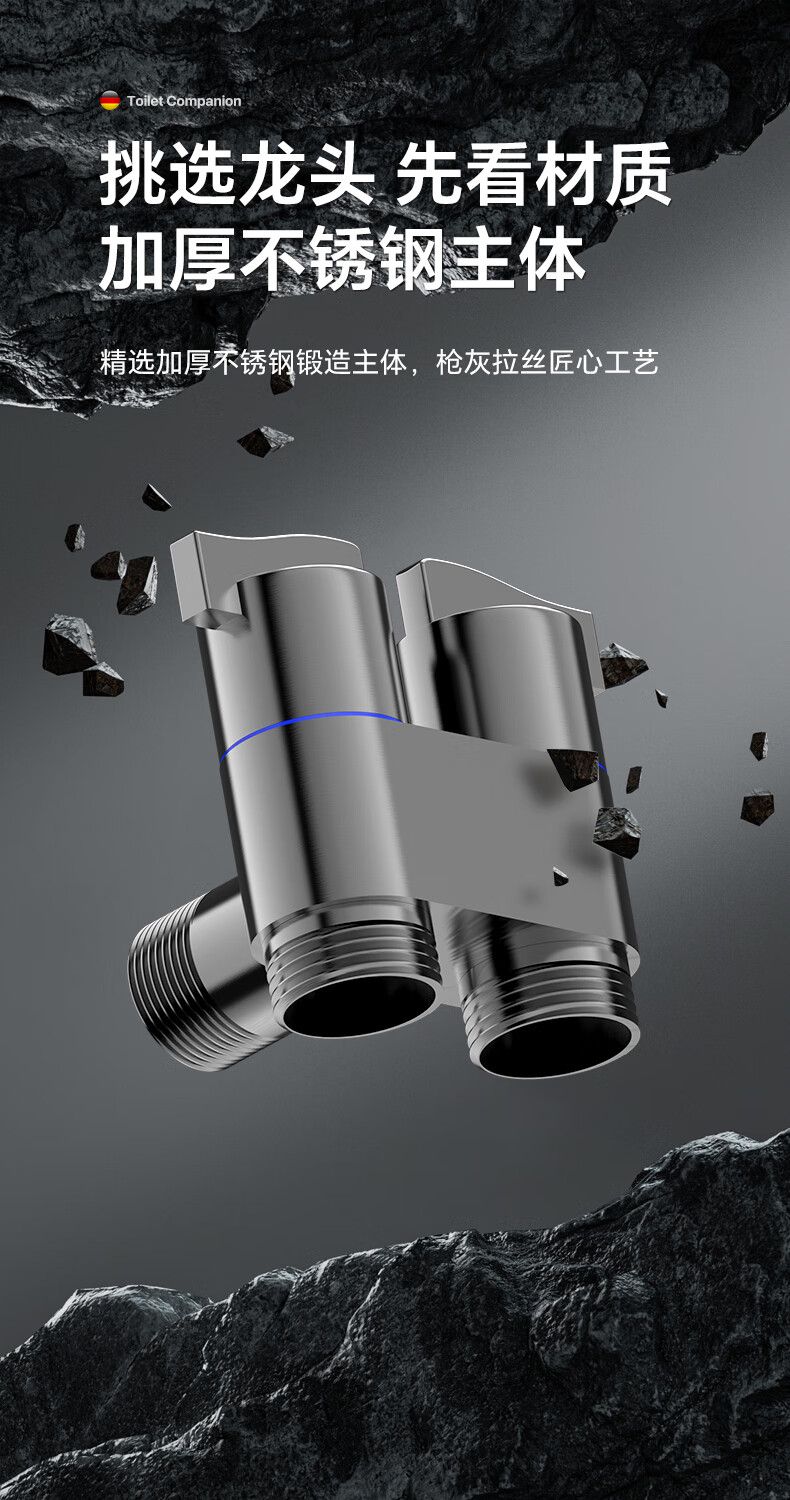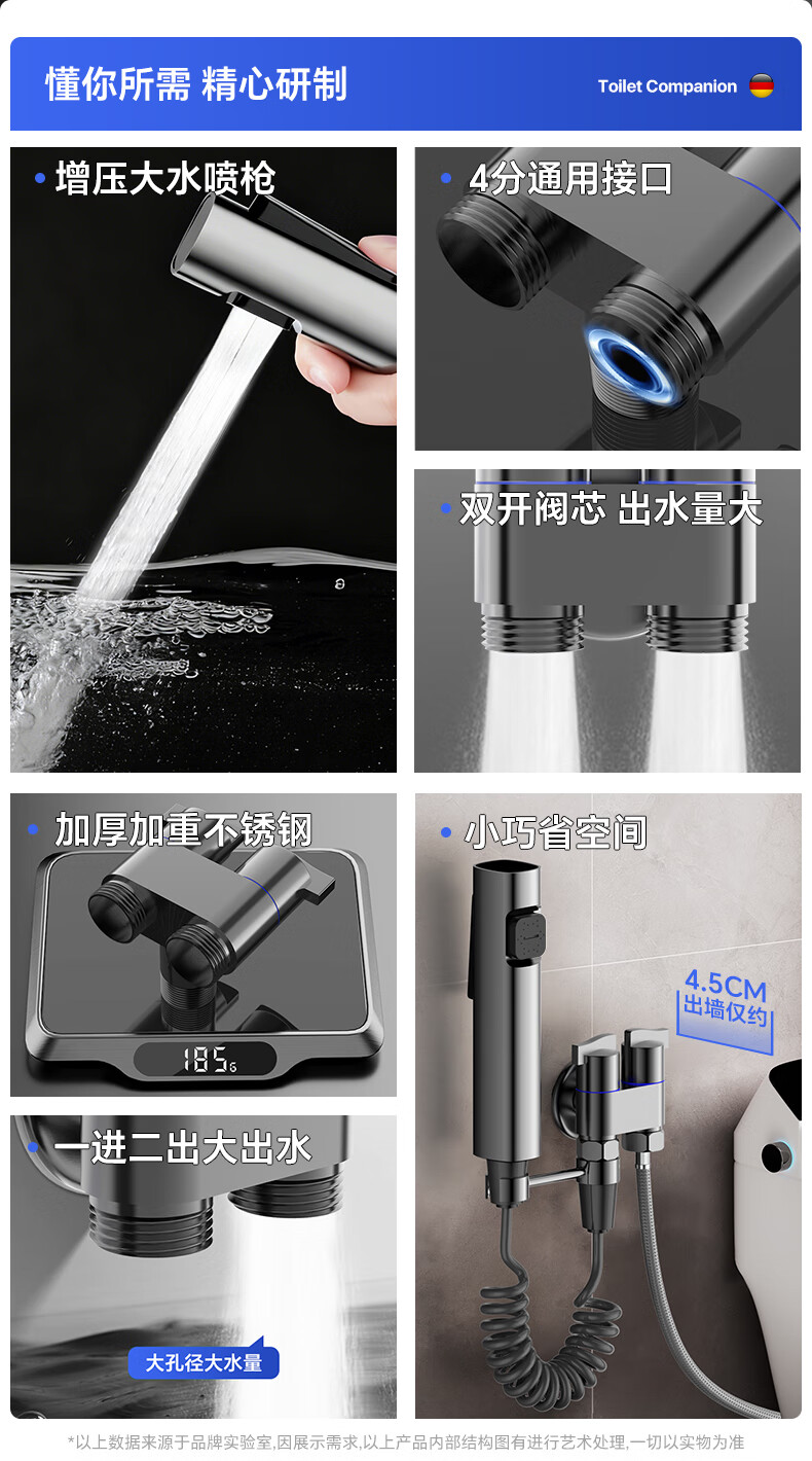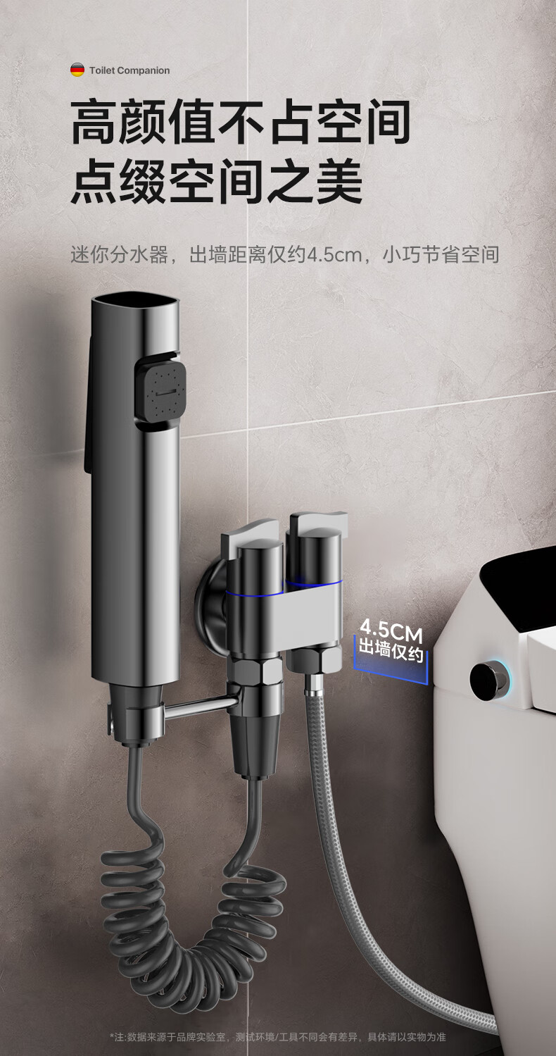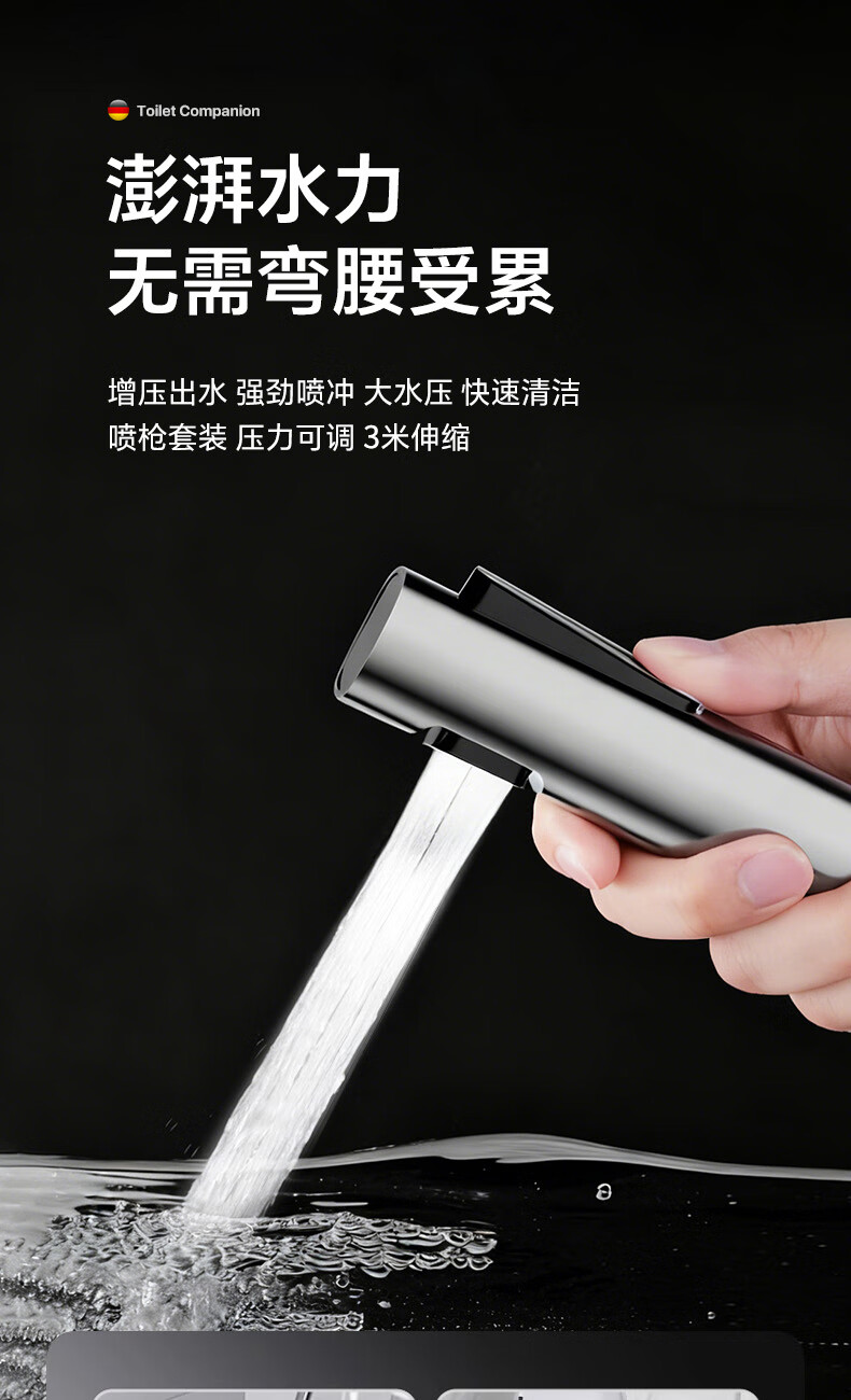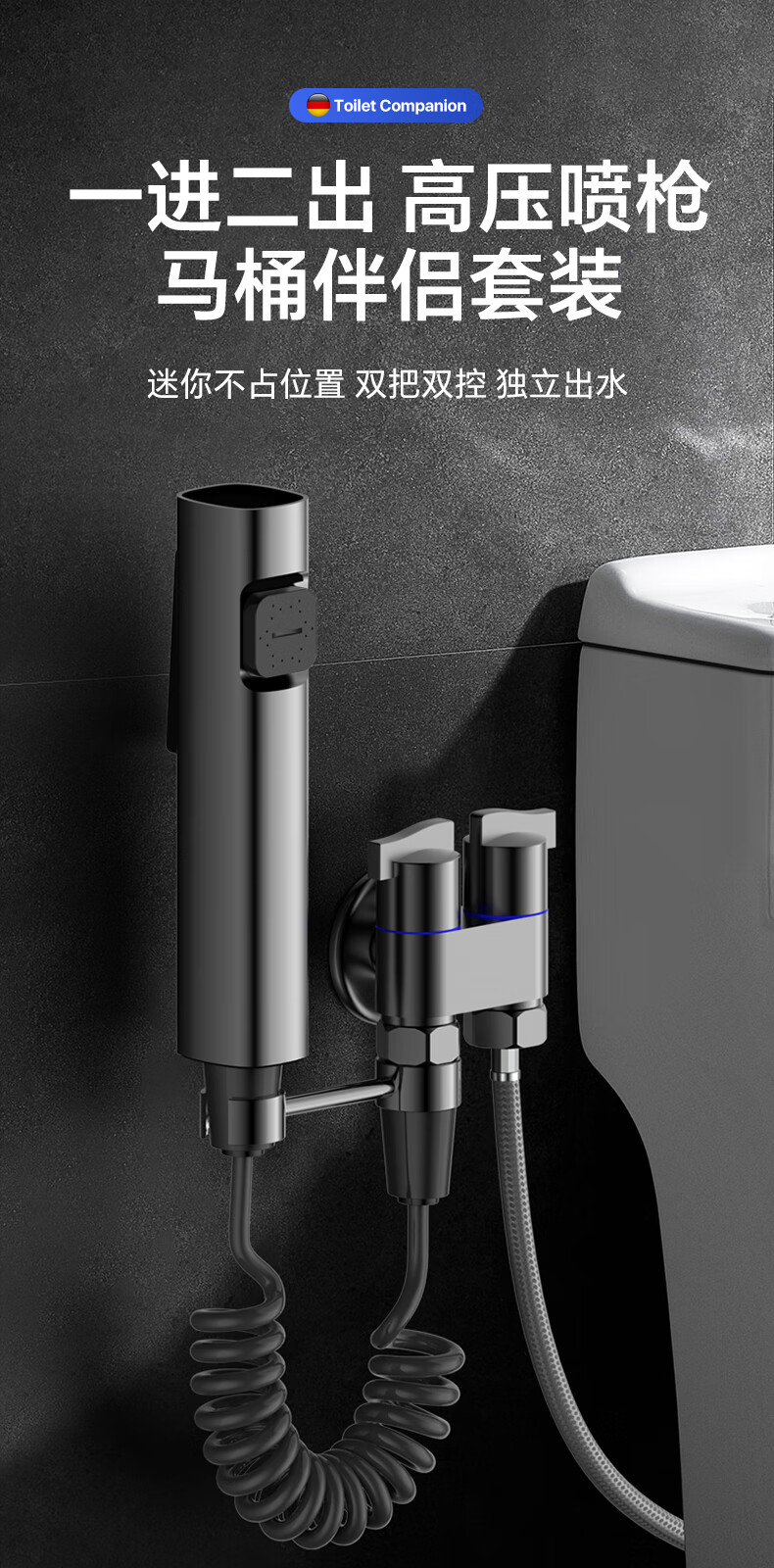 CUNKOY【德国】马桶喷水喷枪马桶伴侣一进二出角阀卫生间冲洗高压喷枪 3米高压马桶喷枪套装【枪灰】 强劲增压冲力丨独立出水开关