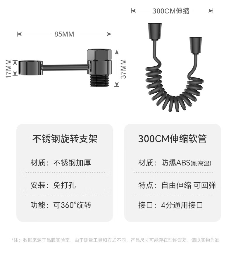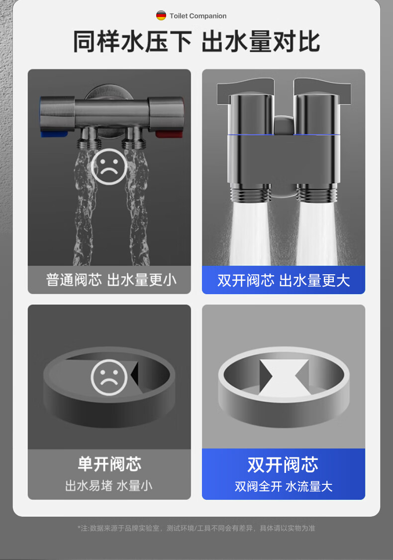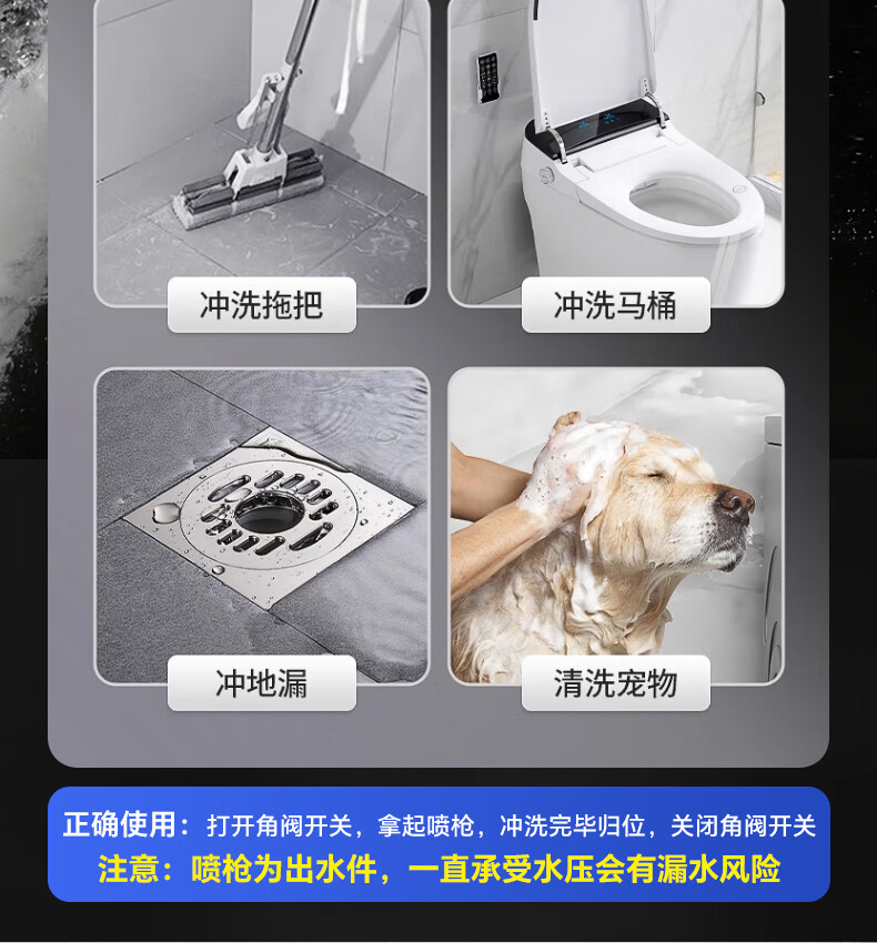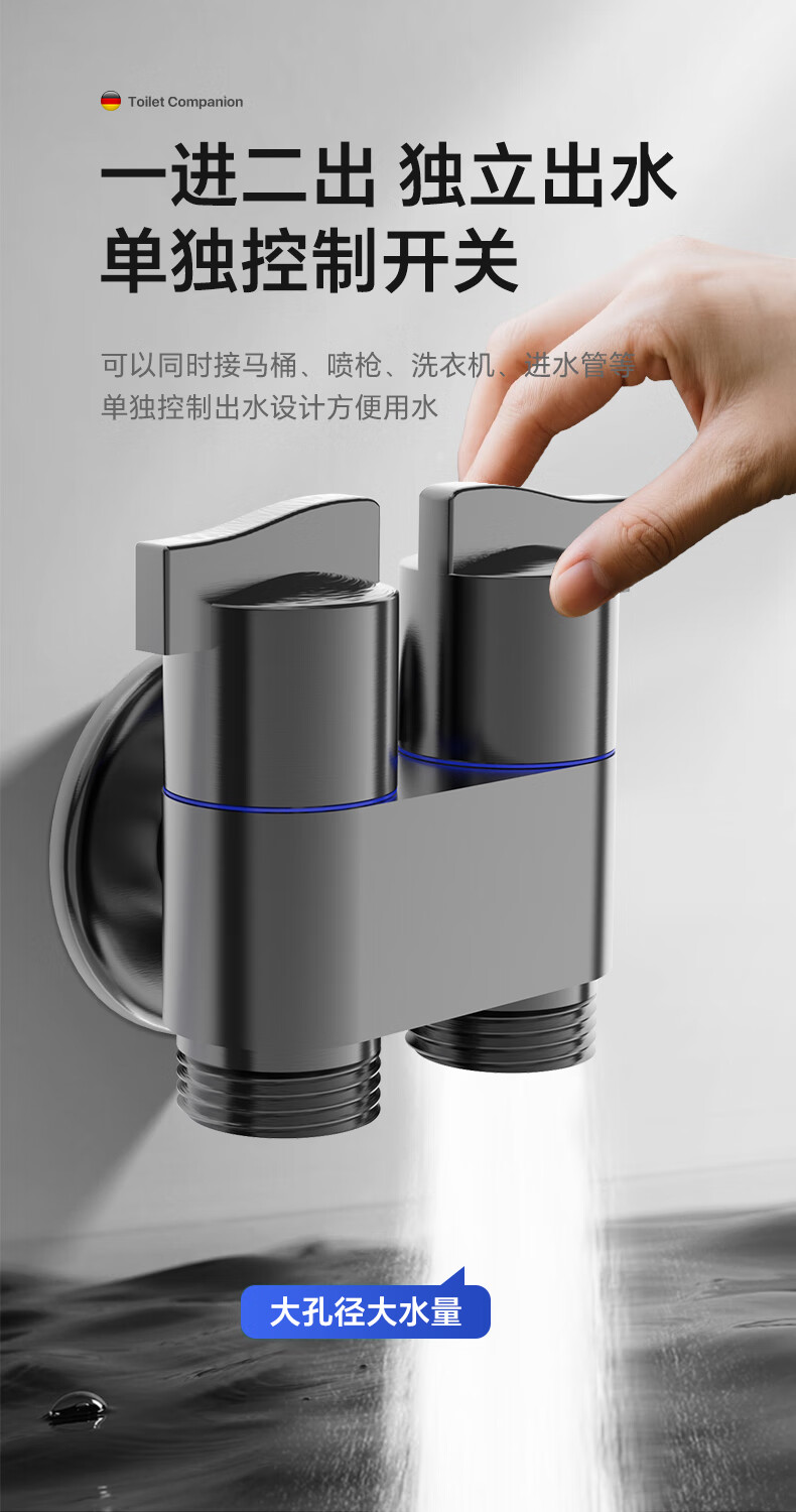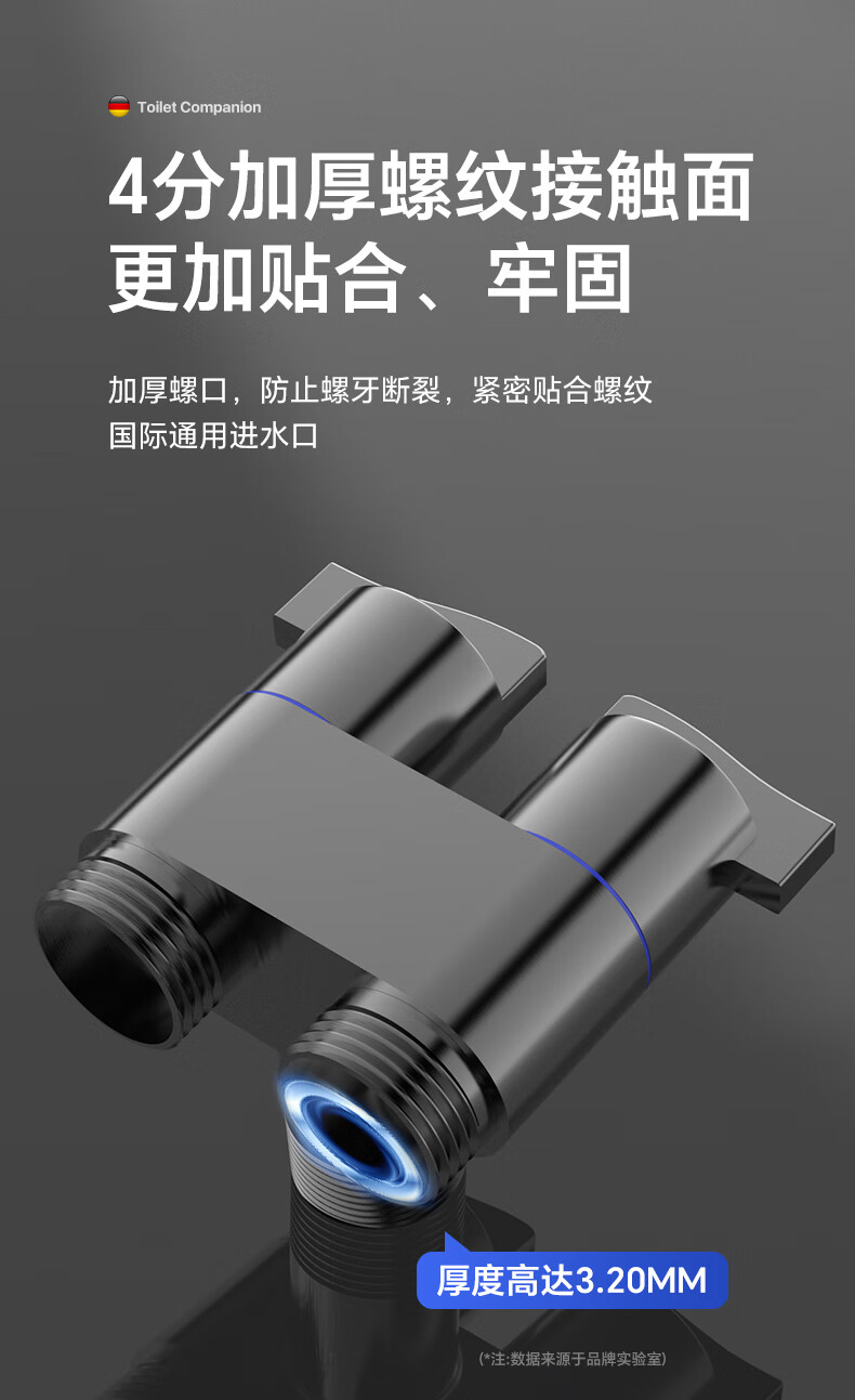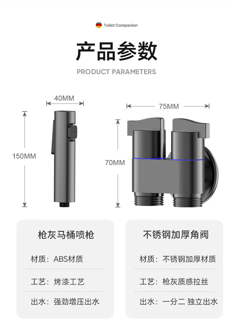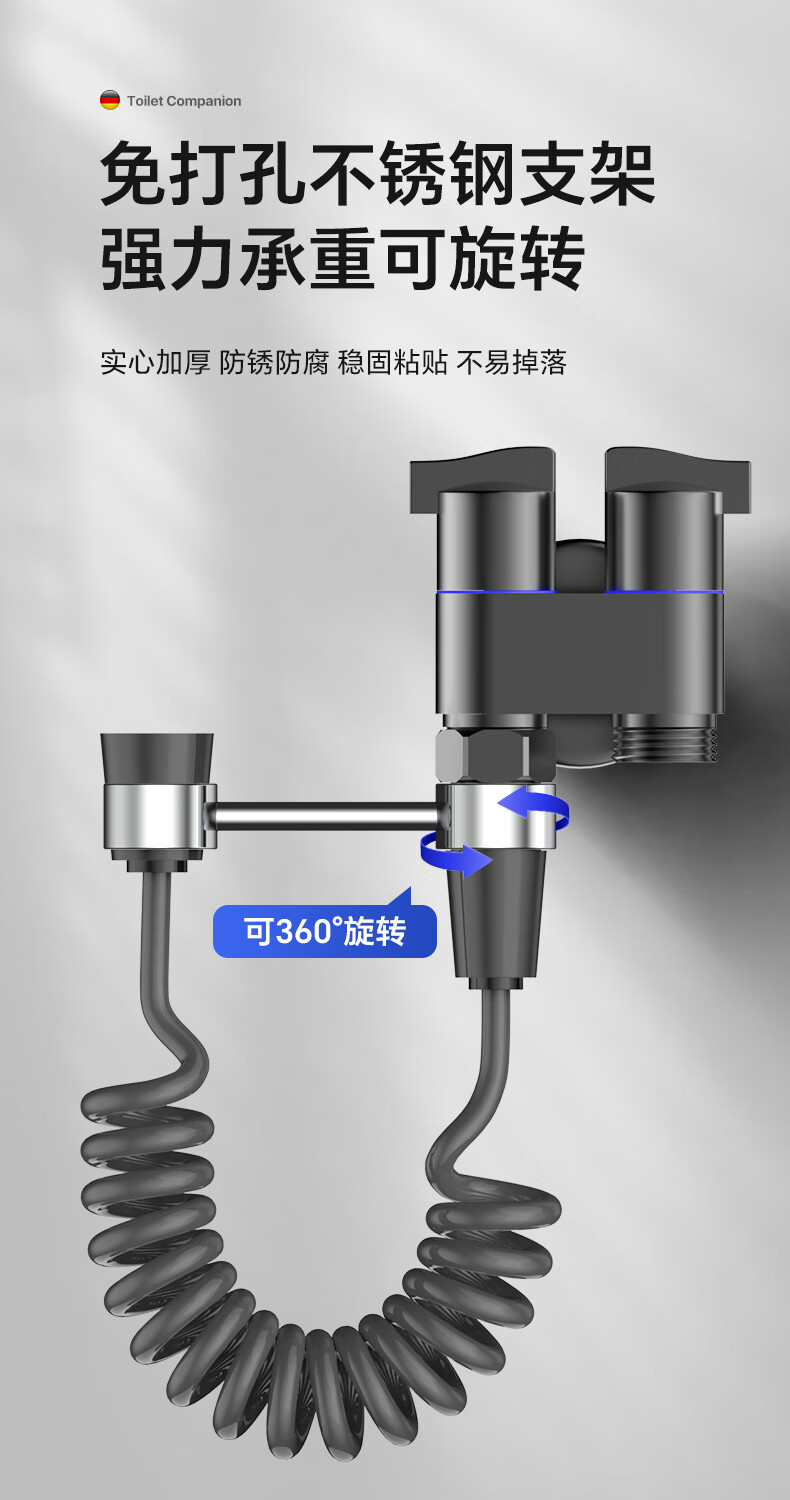 CUNKOY【德国】马桶喷水喷枪马桶伴侣一进二出角阀卫生间冲洗高压喷枪 3米高压马桶喷枪套装【枪灰】 强劲增压冲力丨独立出水开关
