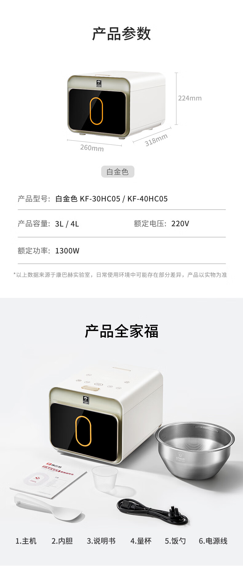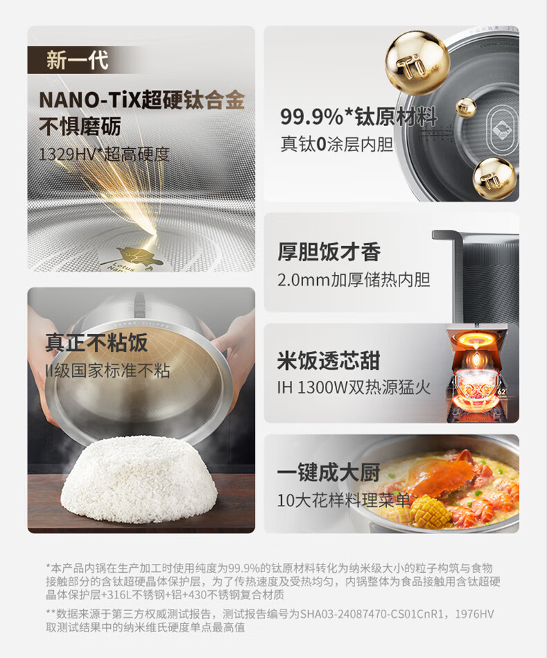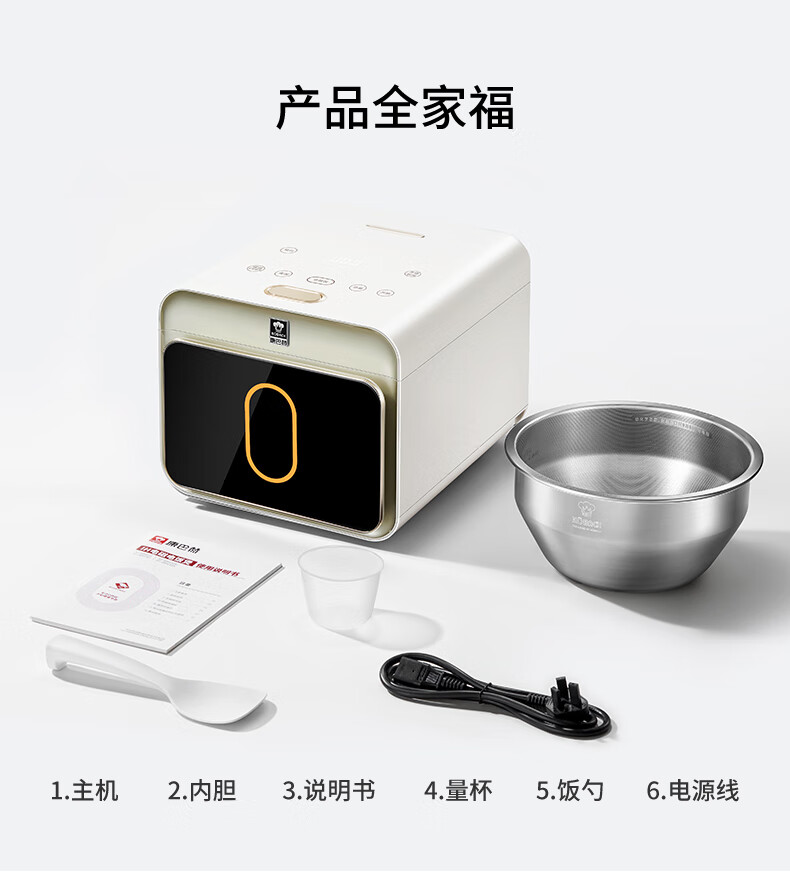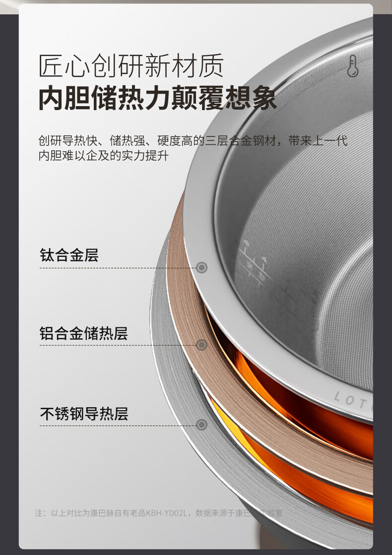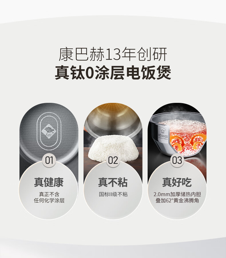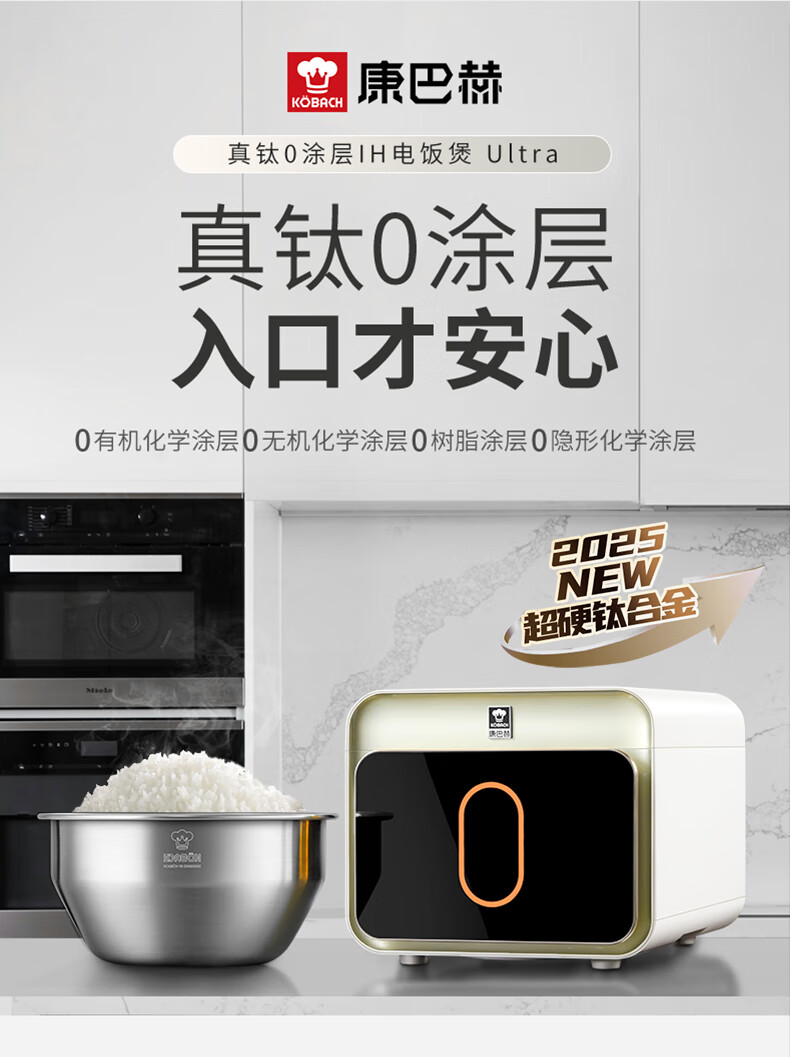 康巴赫纯钛内胆电饭煲0涂层IH电磁加热智能电饭锅多功能家用2-8人大容量不粘锅大火力Ultra版蒸锅套装 Ultra白色 3L +304不锈钢蒸锅