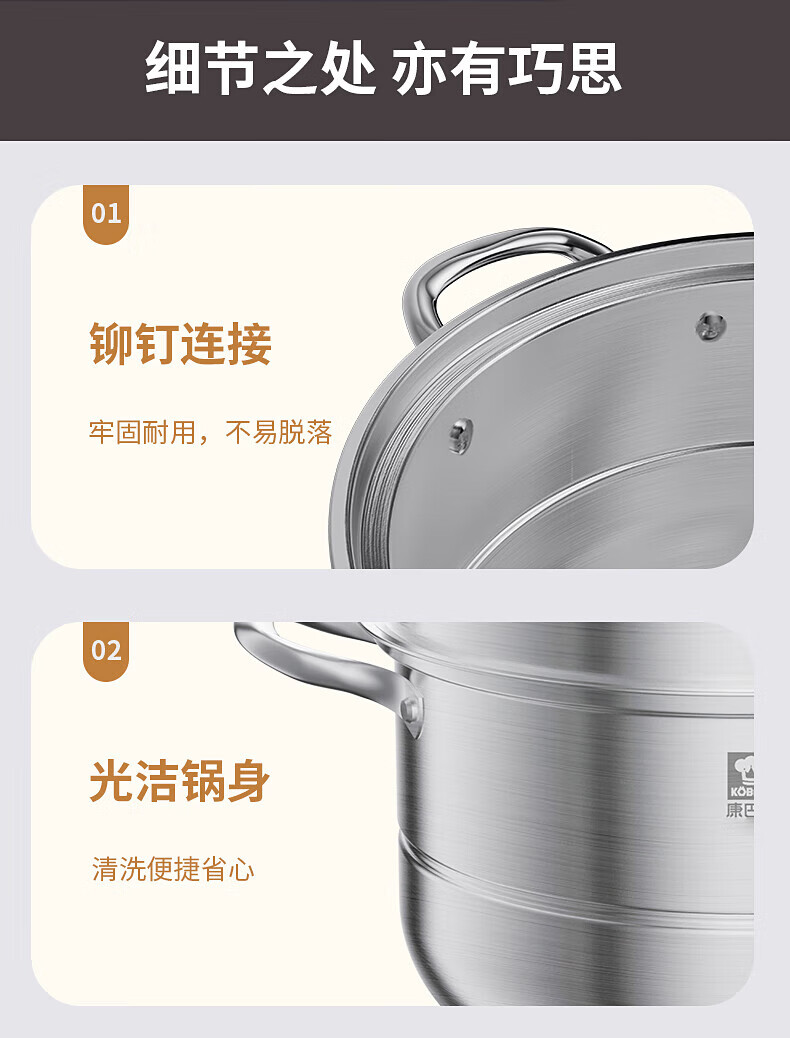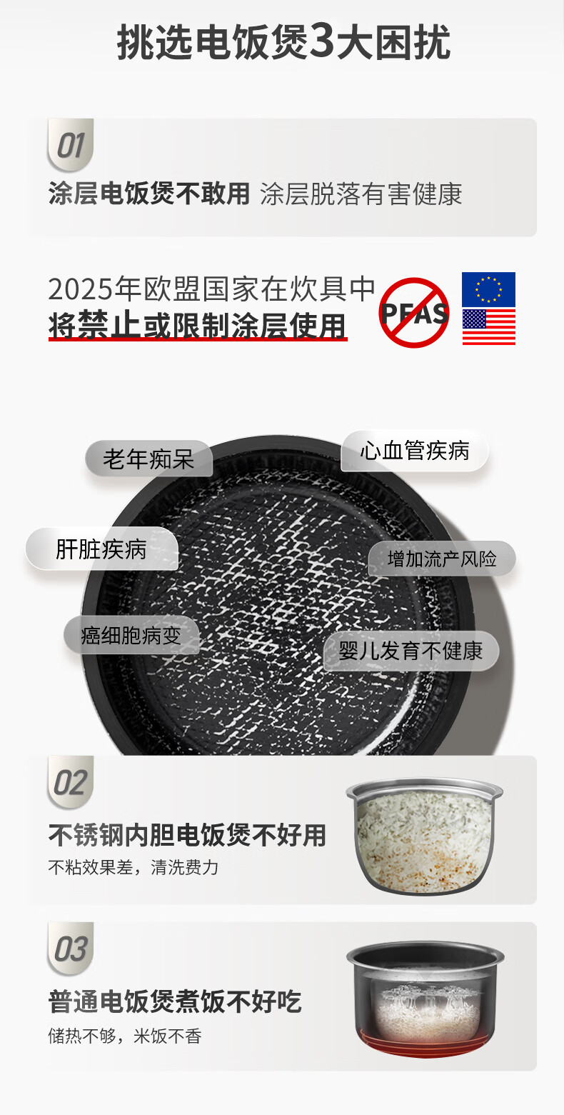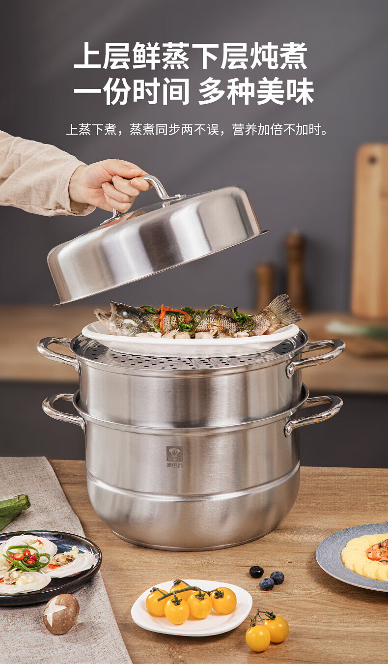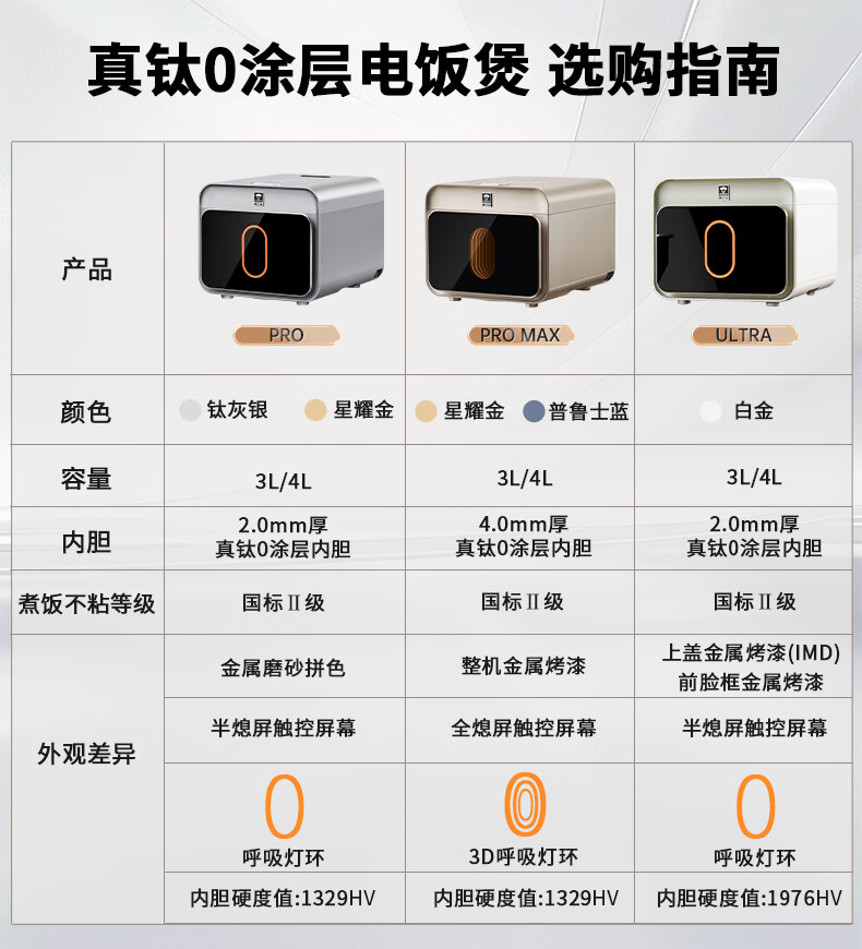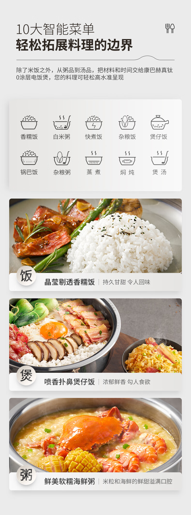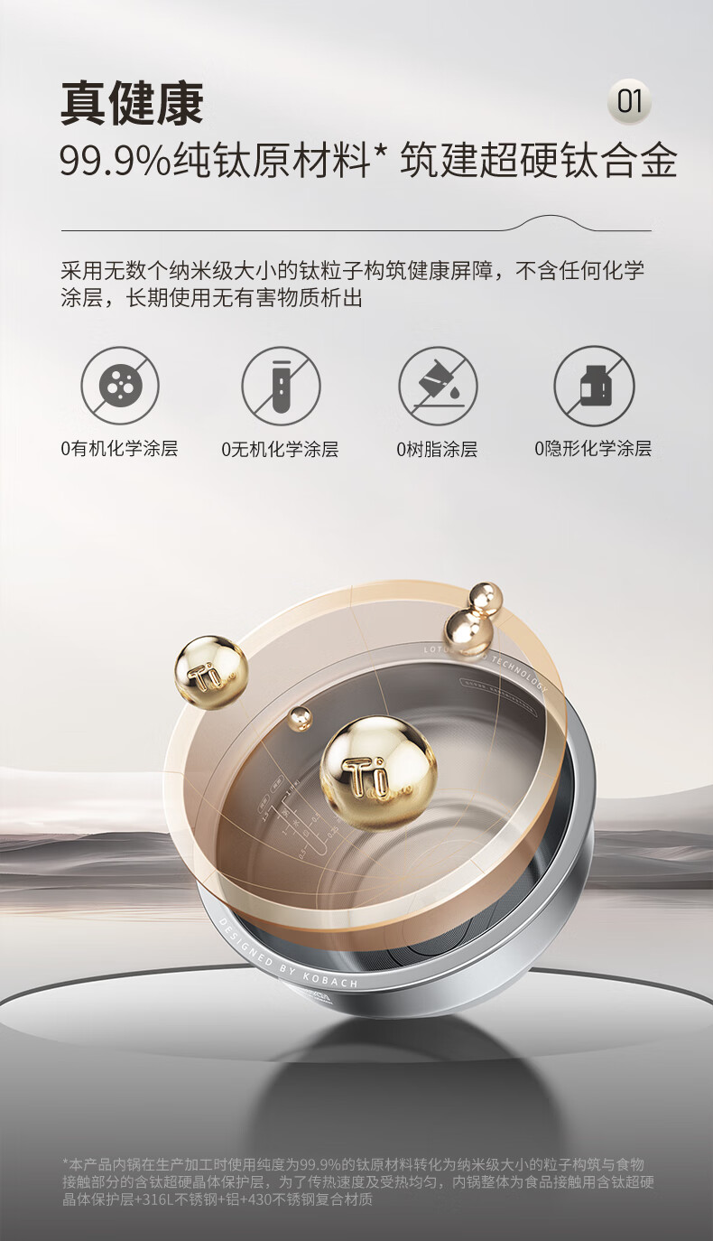 康巴赫纯钛内胆电饭煲0涂层IH电磁加热智能电饭锅多功能家用2-8人大容量不粘锅大火力Ultra版蒸锅套装 Ultra白色 3L +304不锈钢蒸锅