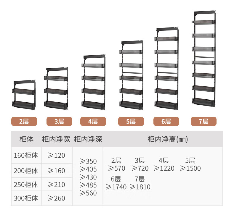 固特新升级高柜窄柜厨房冰箱夹缝侧边拉篮可调节抽屉式收纳零食置物架 350柜深-玻璃款160柜 2层
