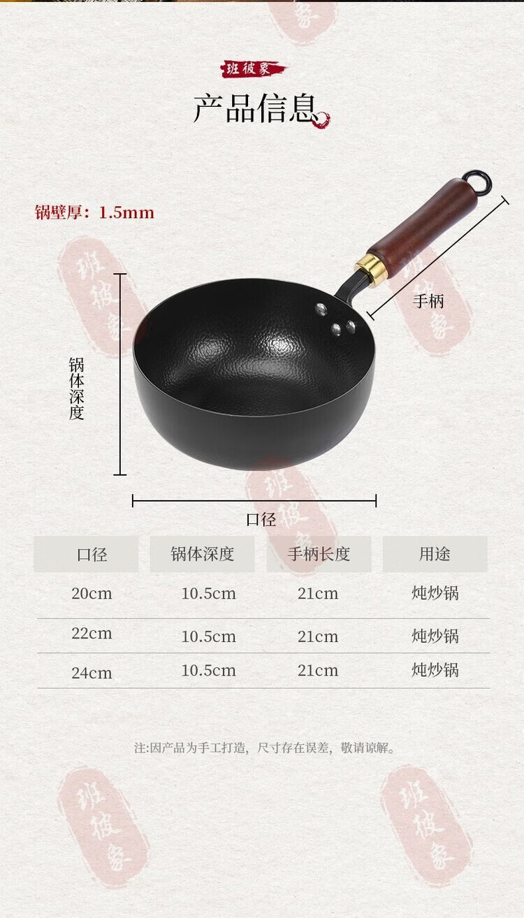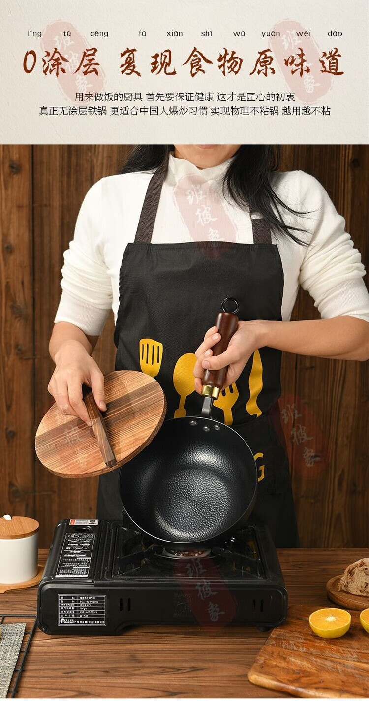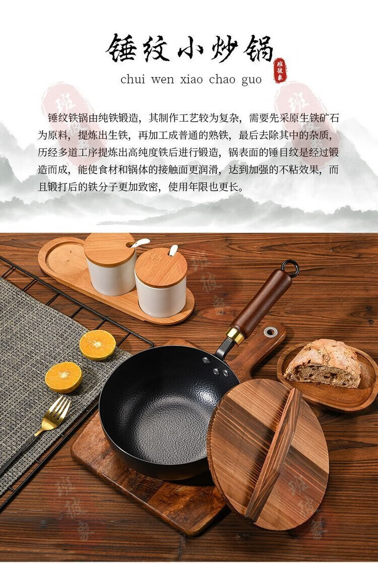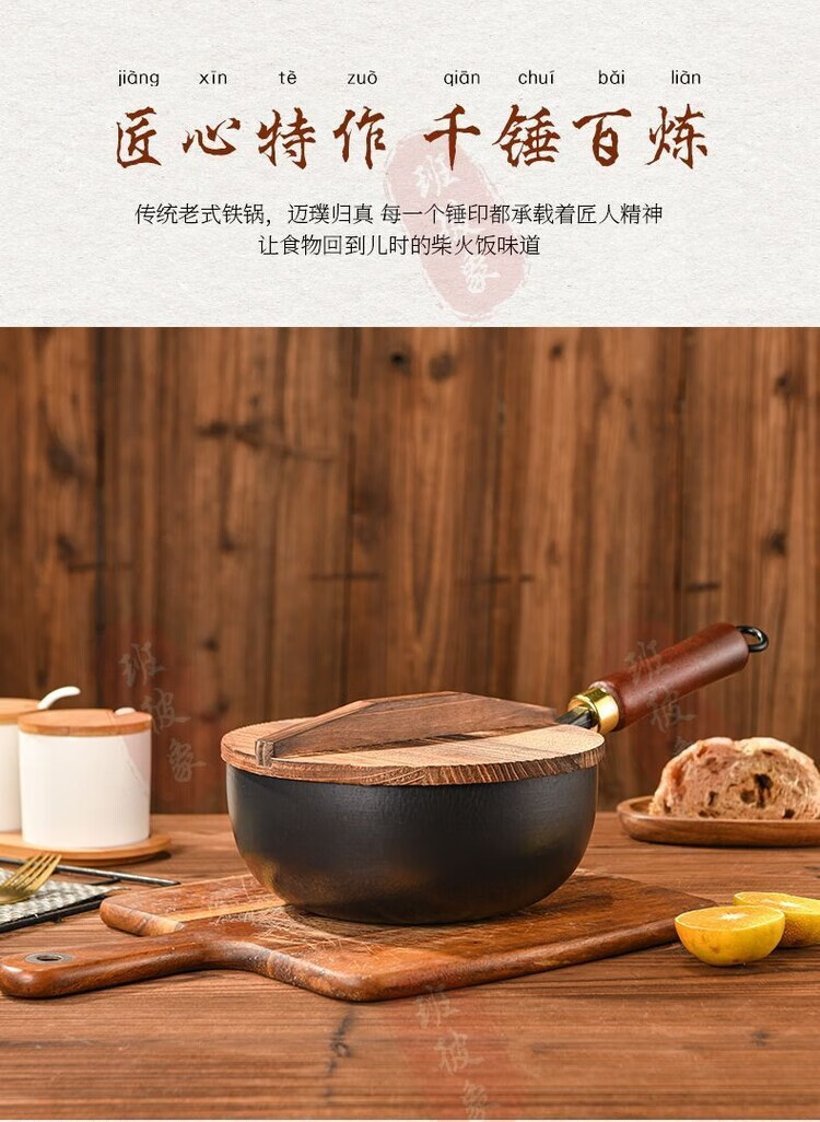 简漾章丘老式小铁锅平底炒锅煎锅无涂层不粘锅电磁炉燃气灶通用已开锅 22cm【推荐1人用】