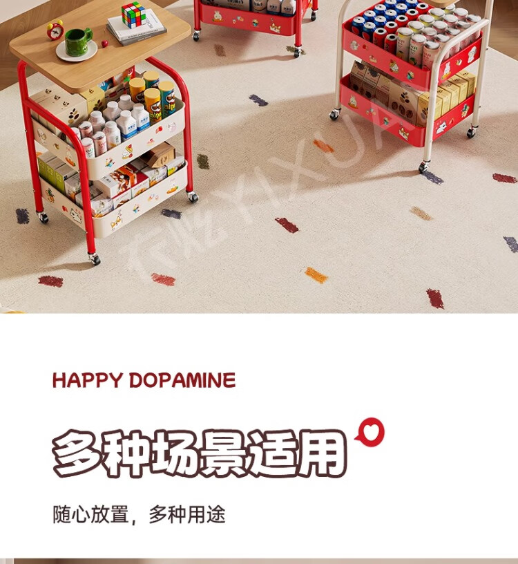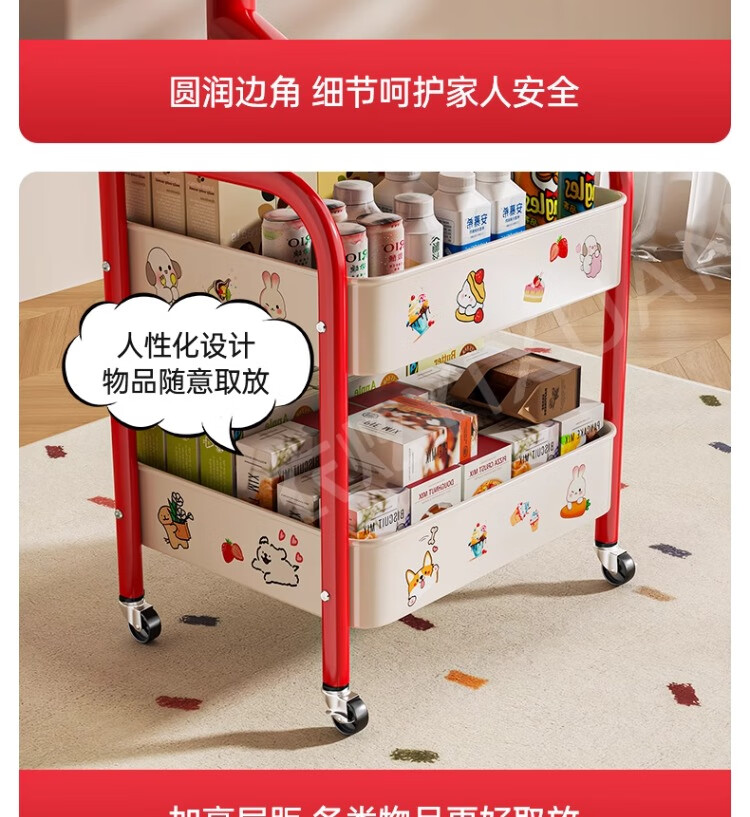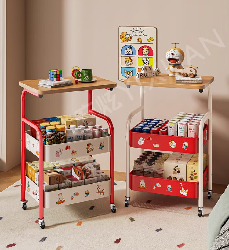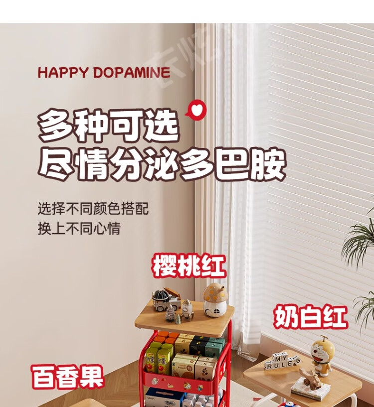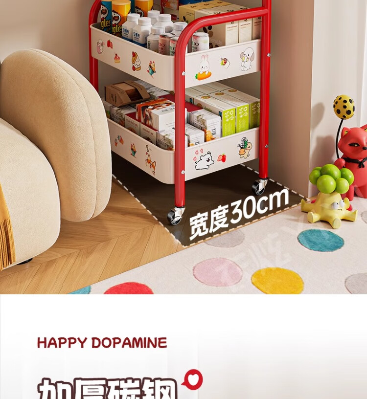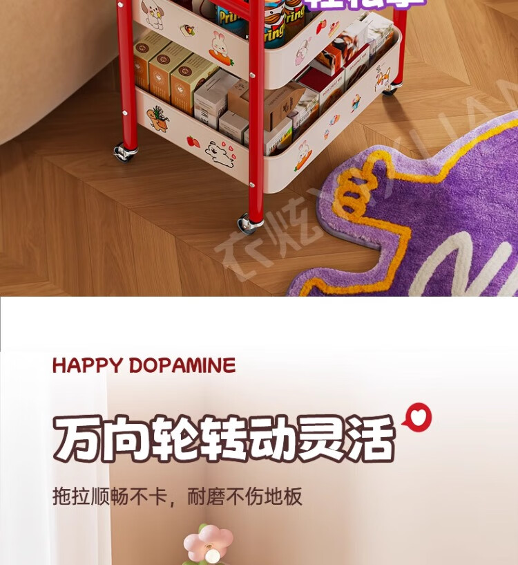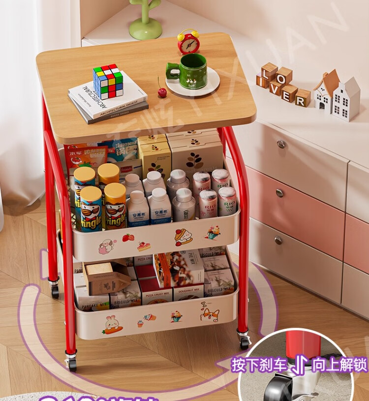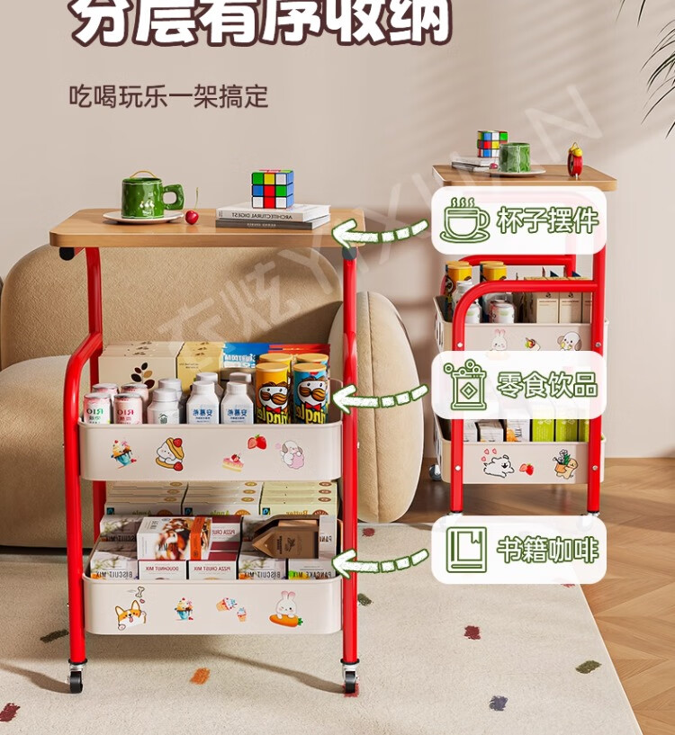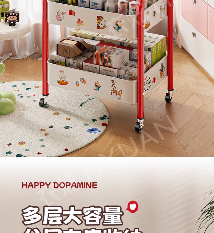 衣炫多巴胺小推车置物架可移动客厅沙发边几卧室床头柜边零食收纳架子 特厚3层-百香果-送DIY贴纸
