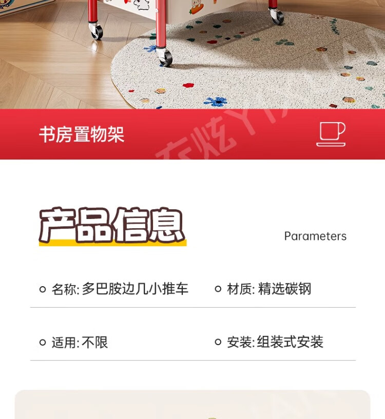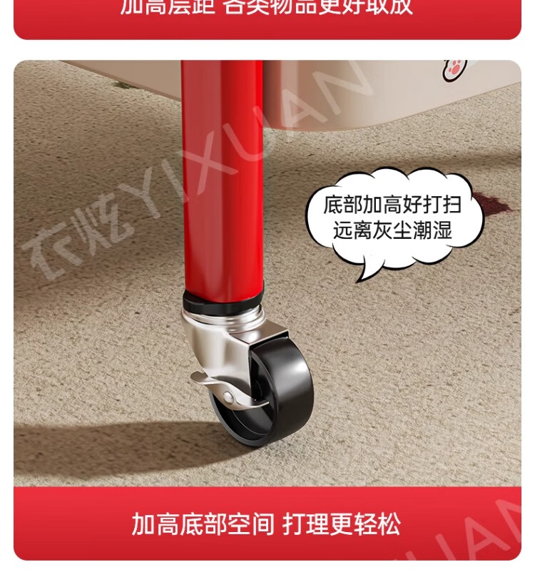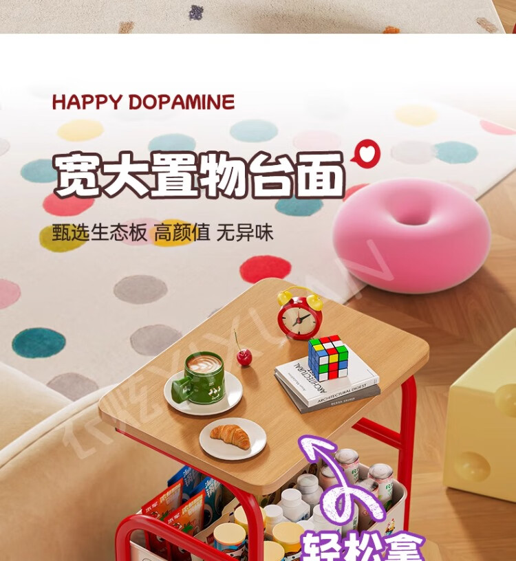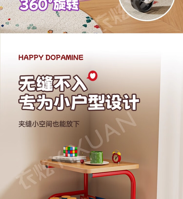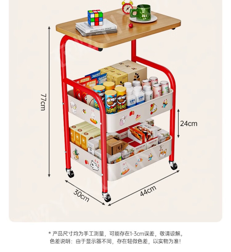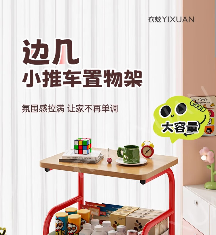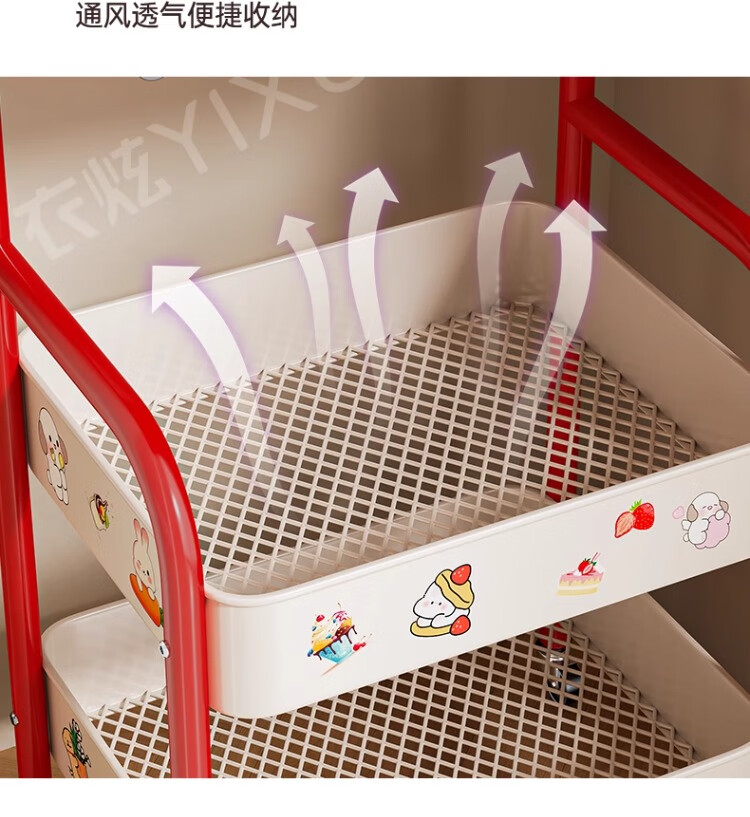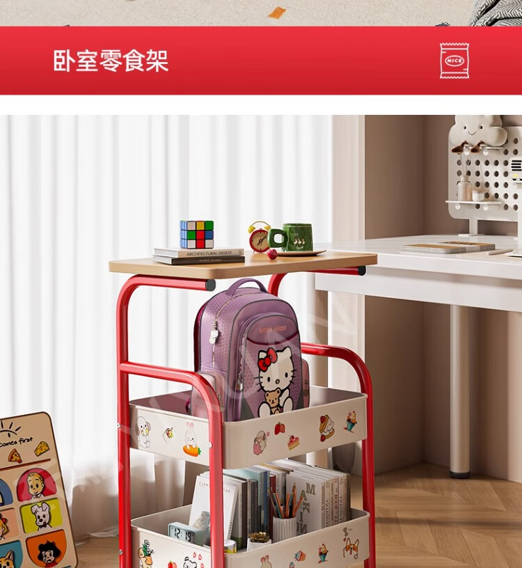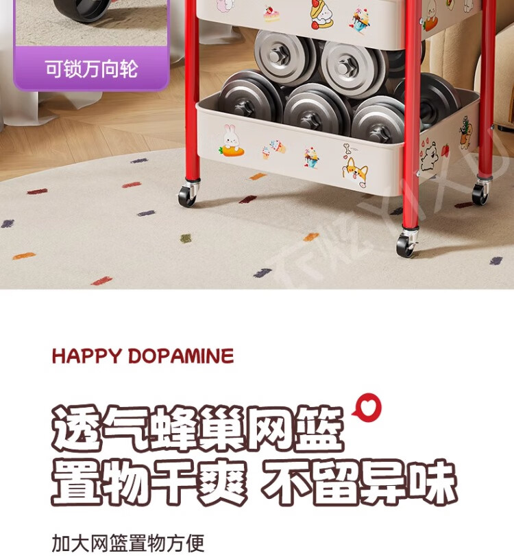 衣炫多巴胺小推车置物架可移动客厅沙发边几卧室床头柜边零食收纳架子 特厚3层-百香果-送DIY贴纸