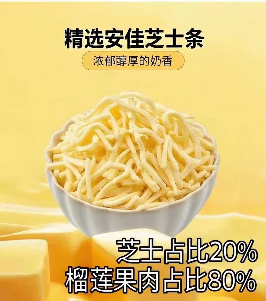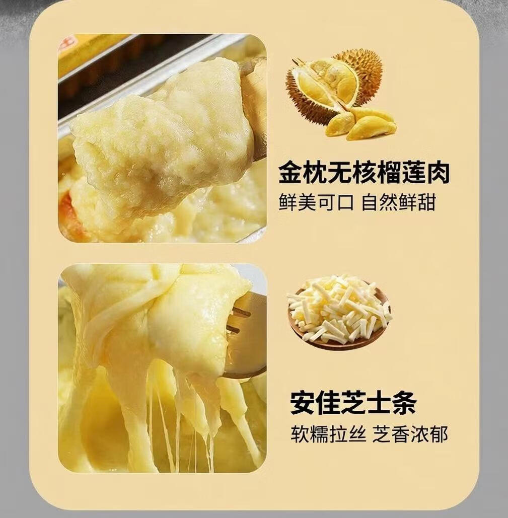 港城金老板泰国冷冻金枕榴莲肉 芝士小金条榴莲果肉 芝士烤榴莲无核 无核芝士榴莲100g*10盒